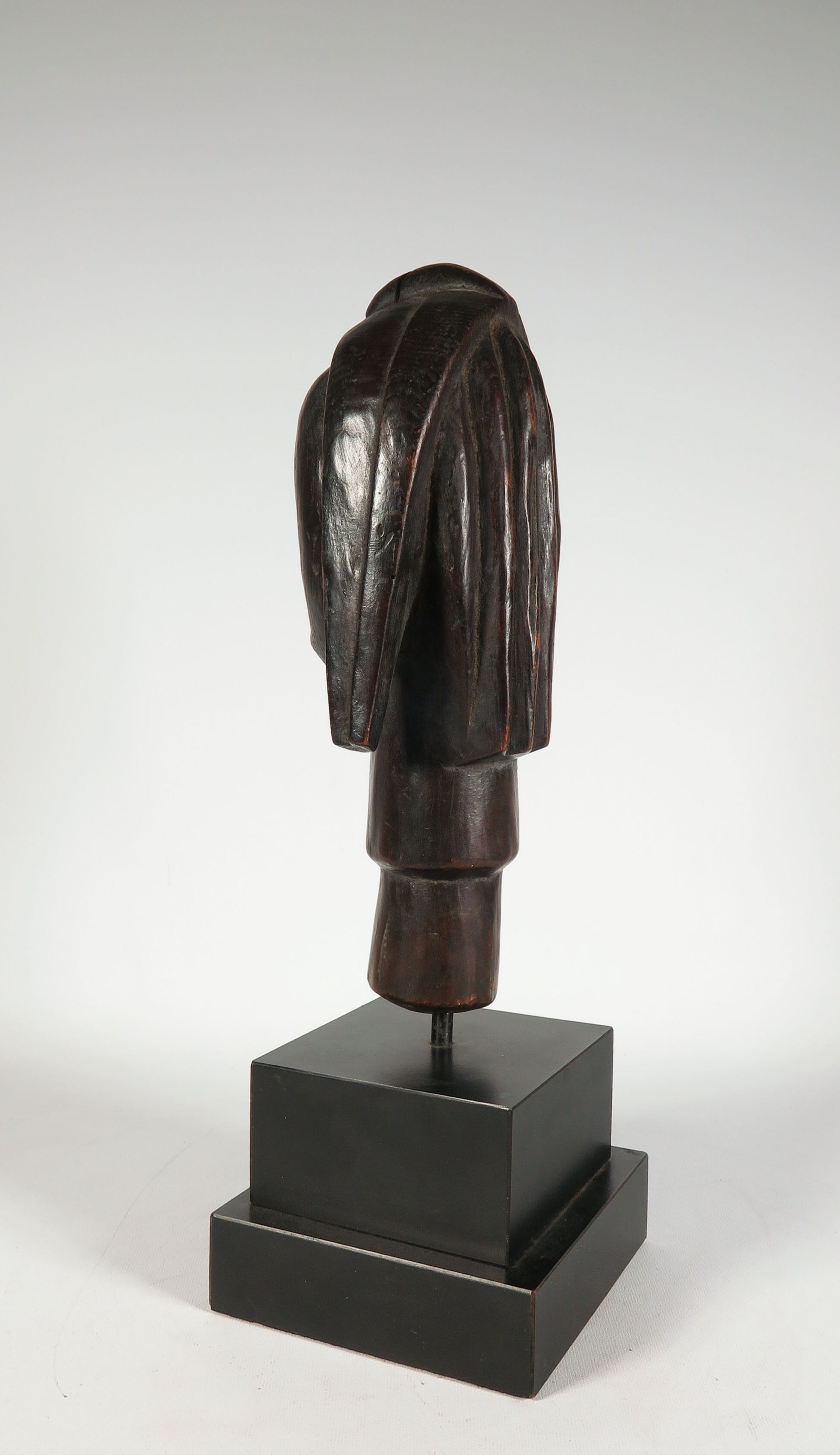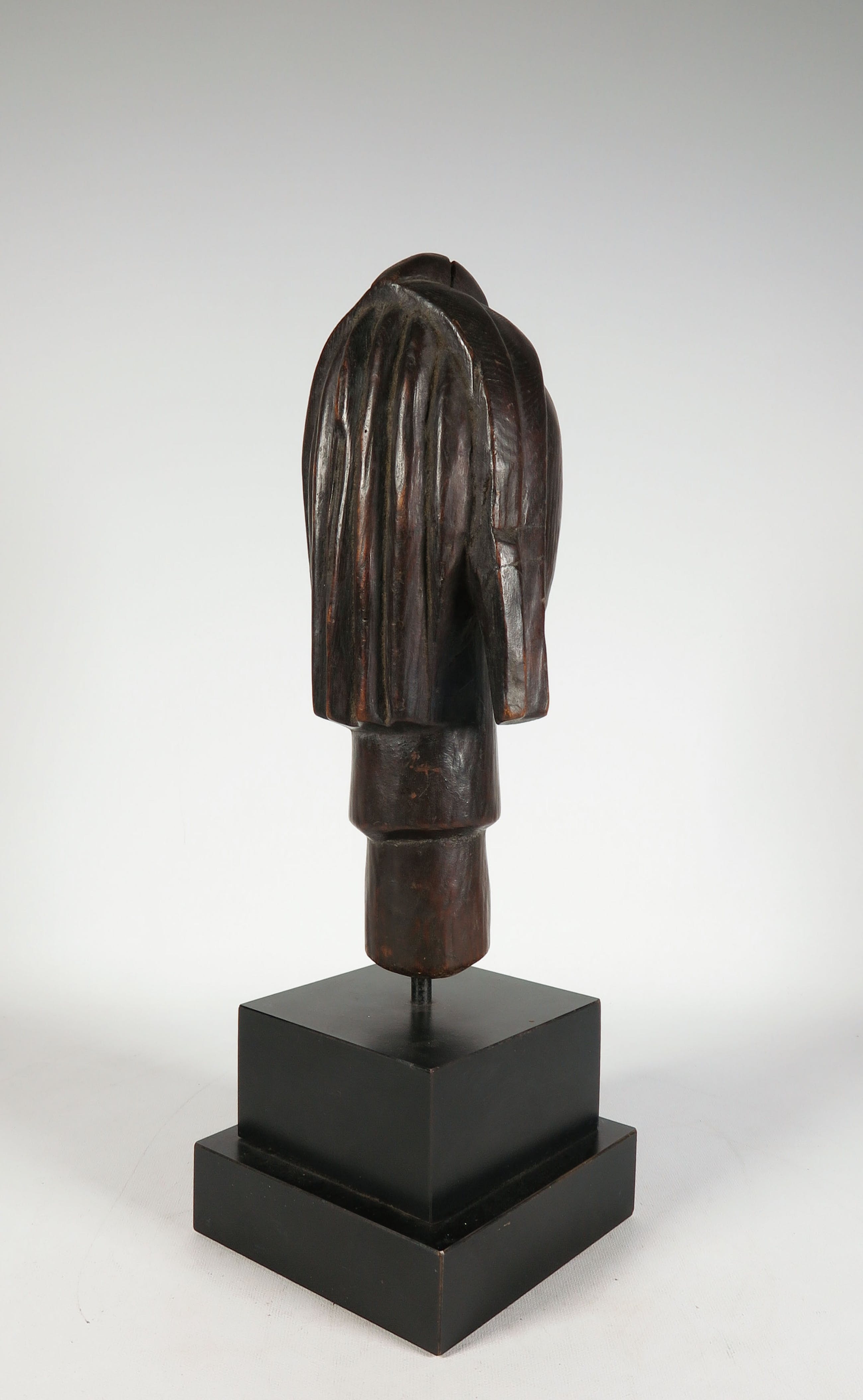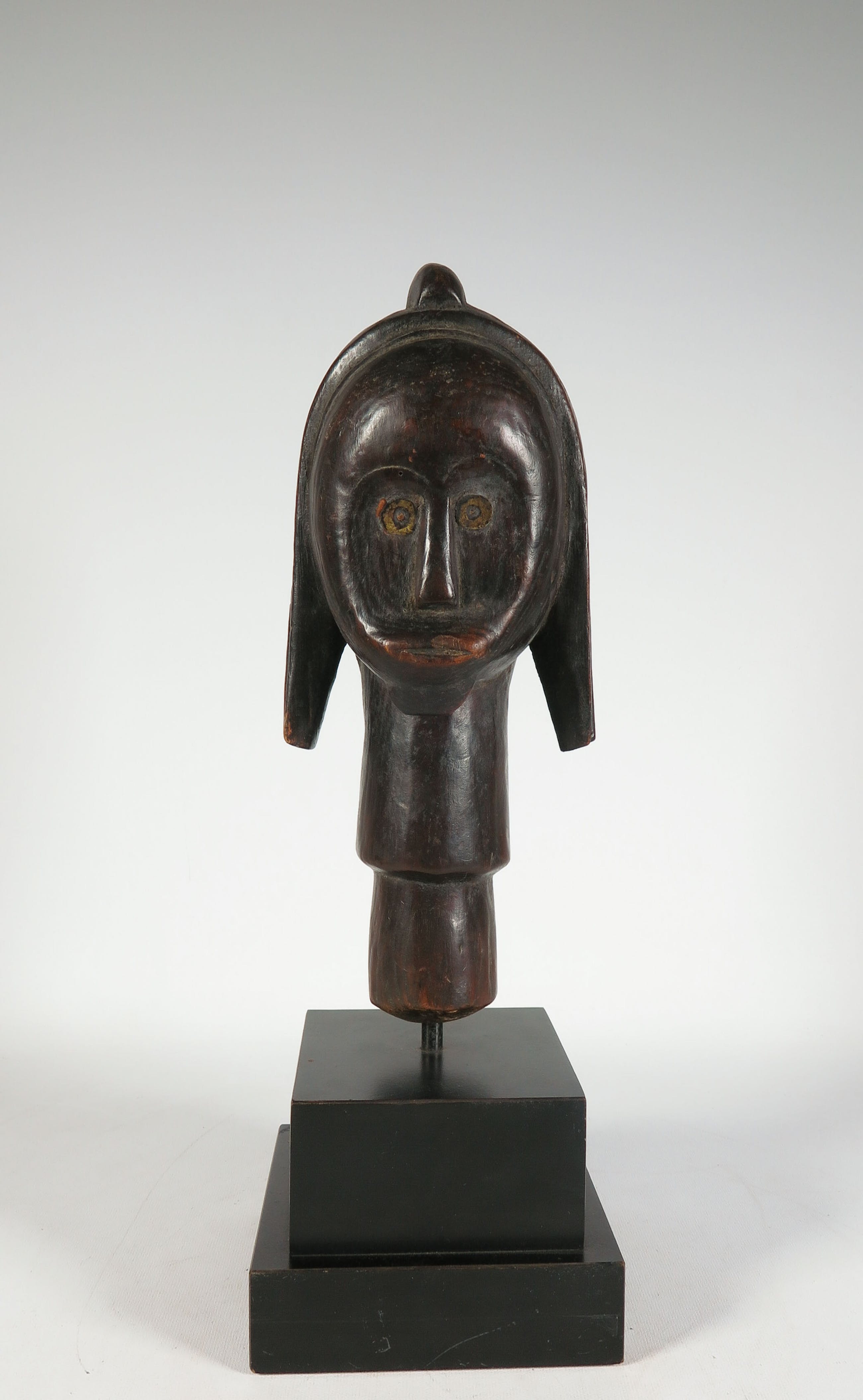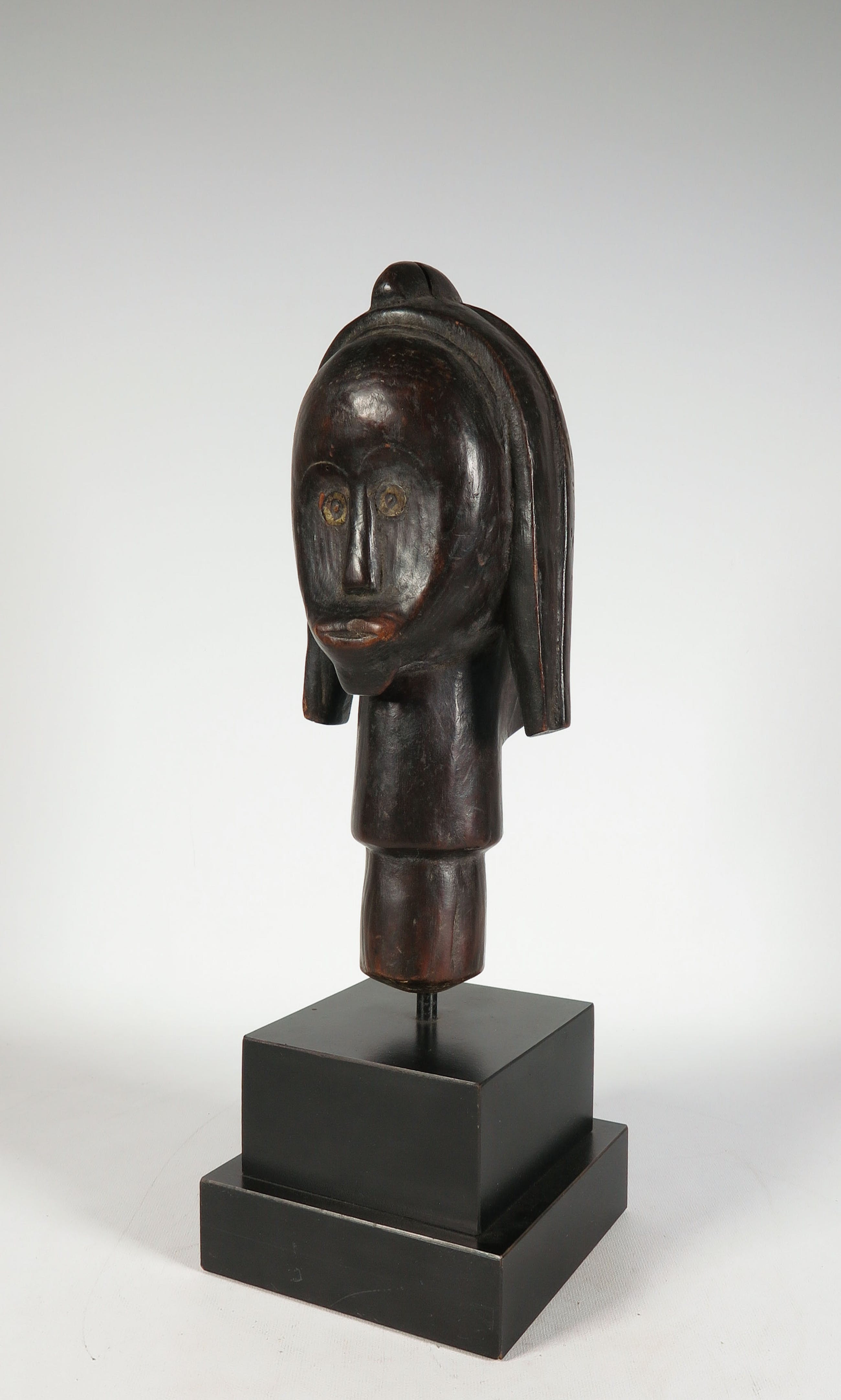Houten gestoken Fang (stam) hoofd met koperen/messing ogen. Herkomst: Gabon.