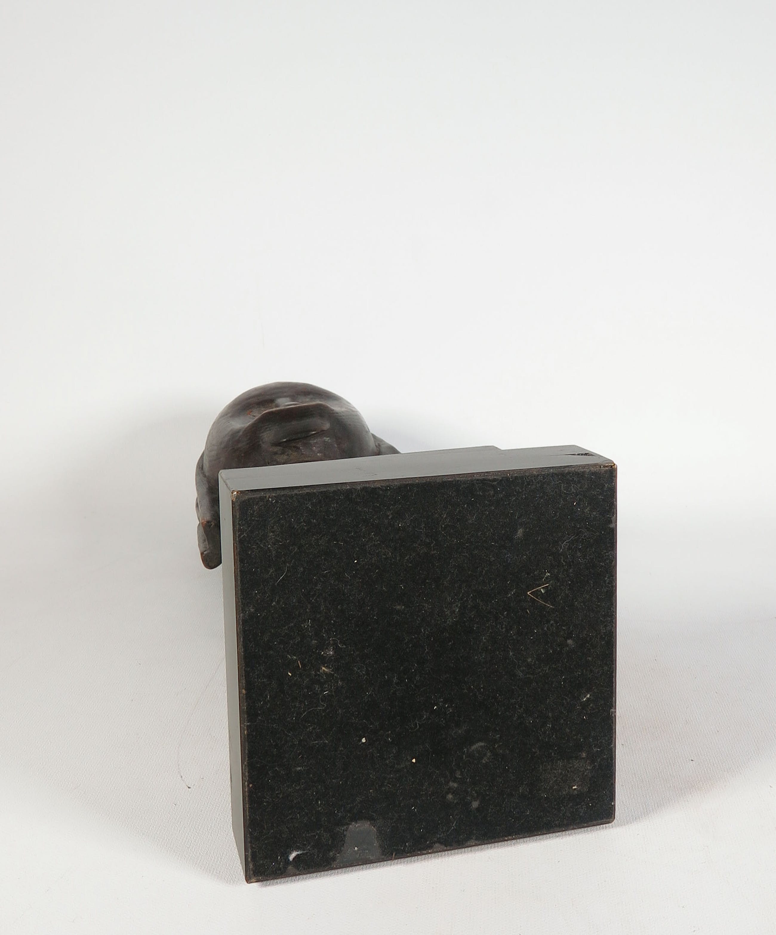 Enkele beschadigingen aan de sokkel. Bovenop het hoofd loopt een (oude) barst. | |||
