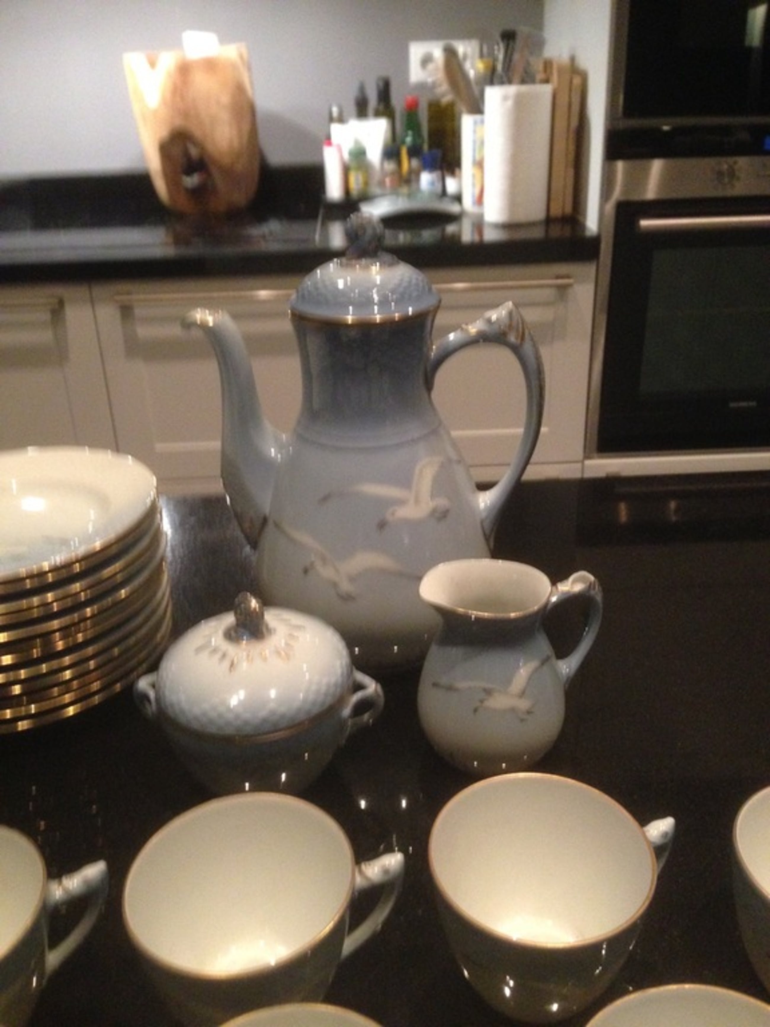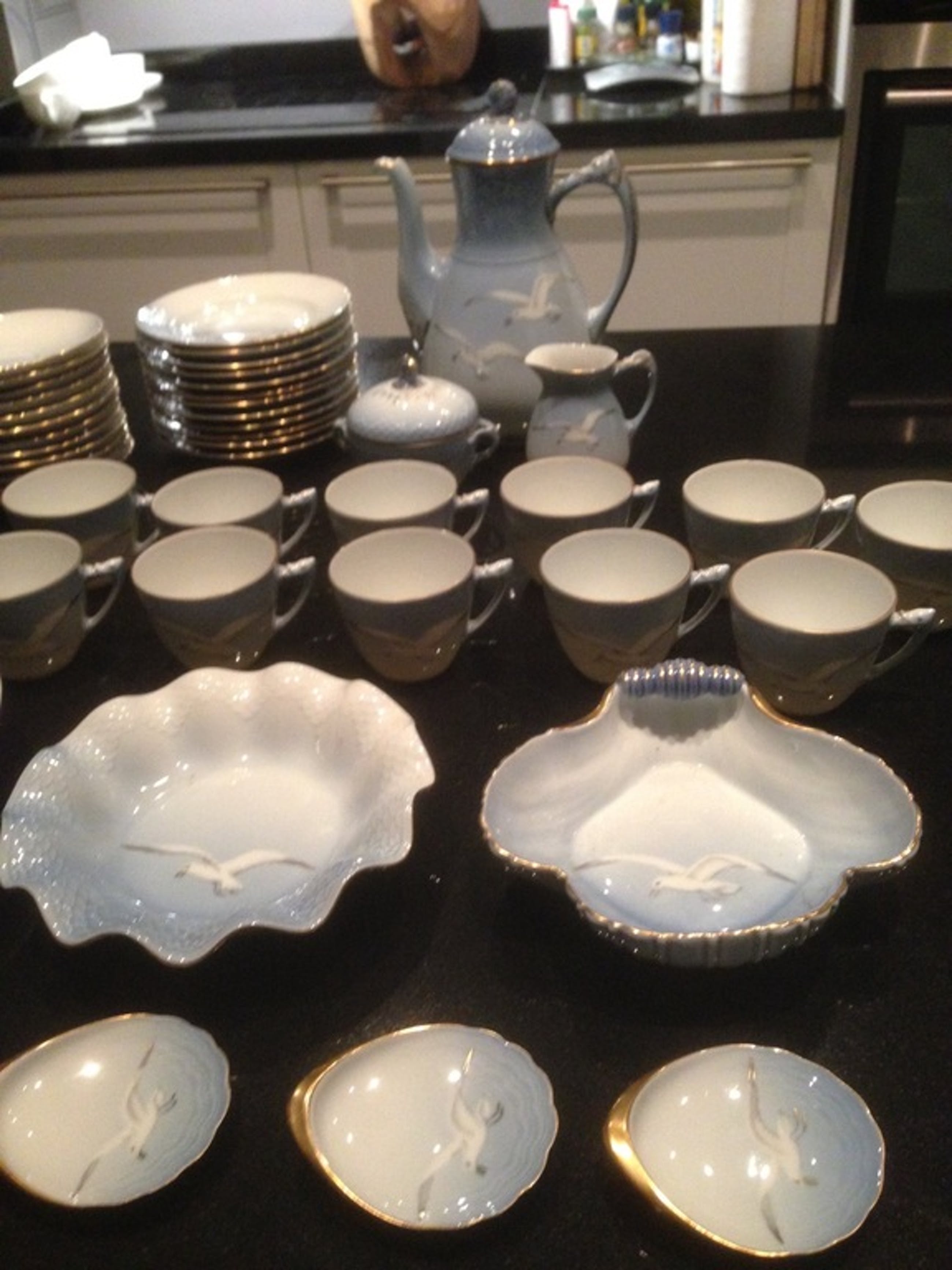 Prachtig 12 delig Deens koffieservies van Bing&Grøndahl, Seagull.