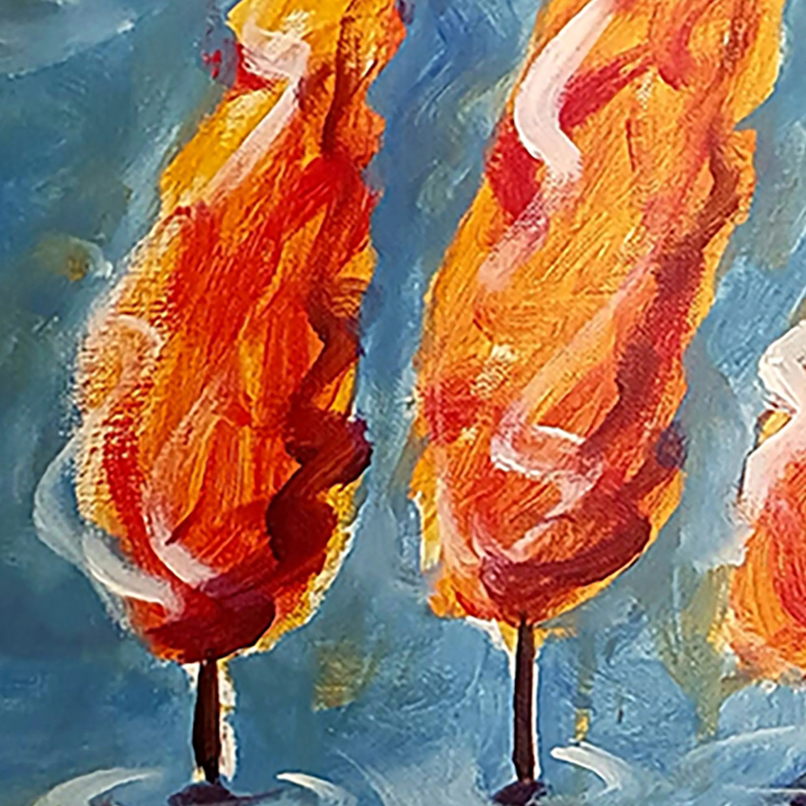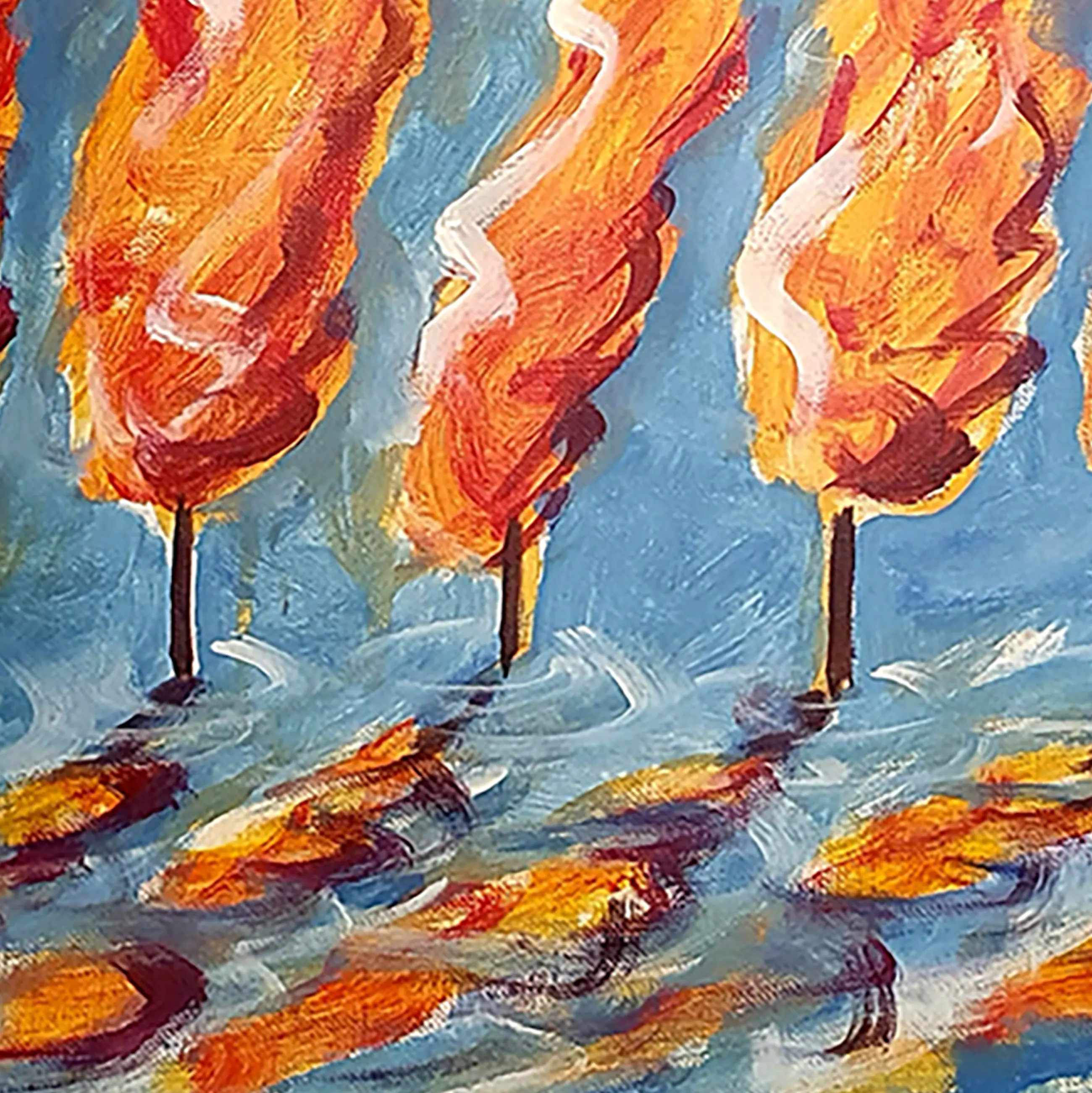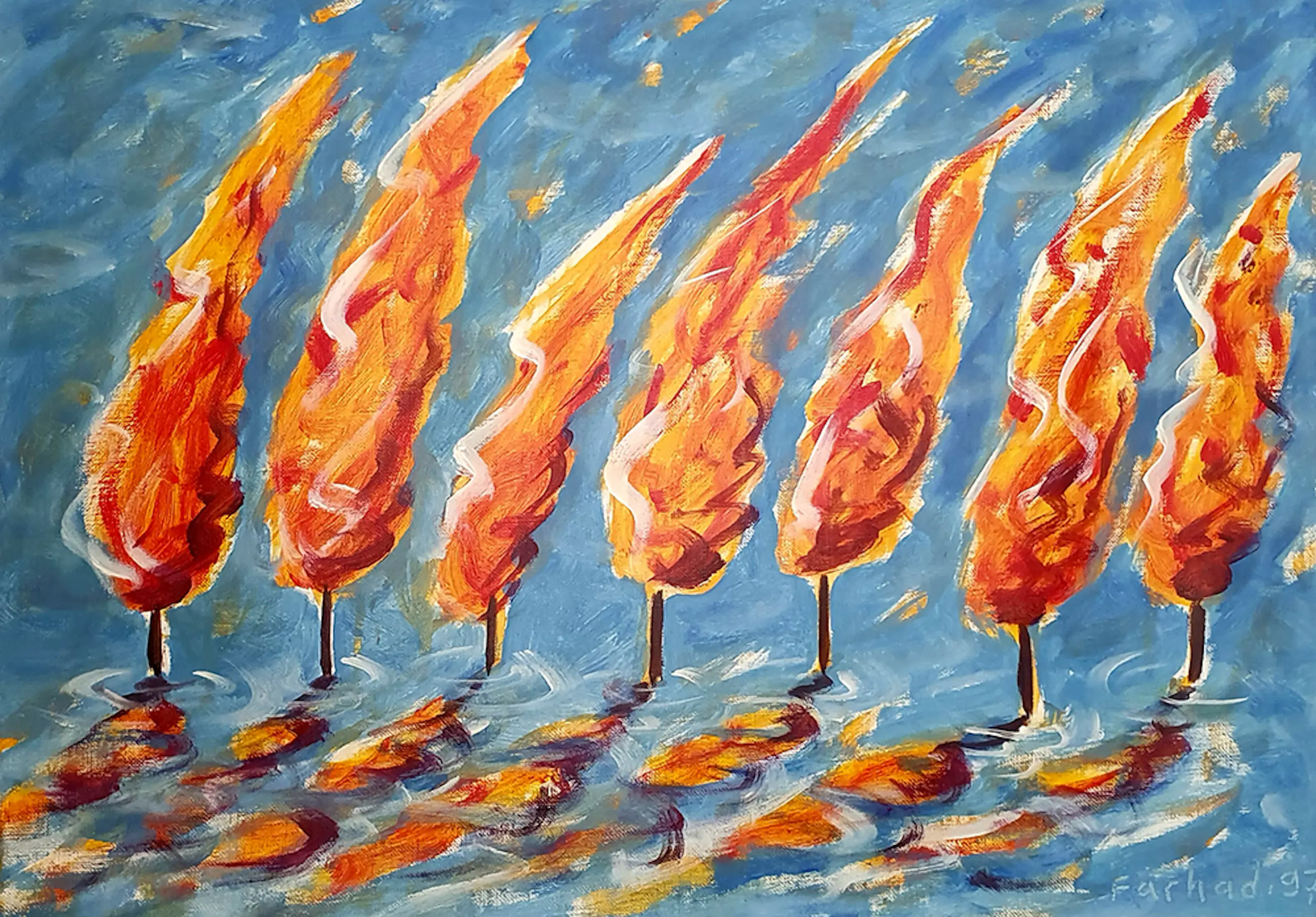 7 bomen in vlammen. Het refereert naar een gedicht van Perzische mystiek Rumi over waarheid
