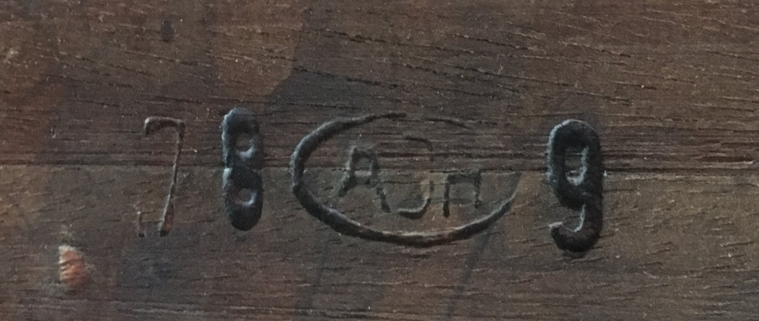 Op dit schilderij zijn ooit drie minieme wittige verfspatjes (muurverf?) terecht gekomen. Het verwijderen laat ik graag aan de volgende eigenaar over. Het schilderij is al generaties in onze familie.