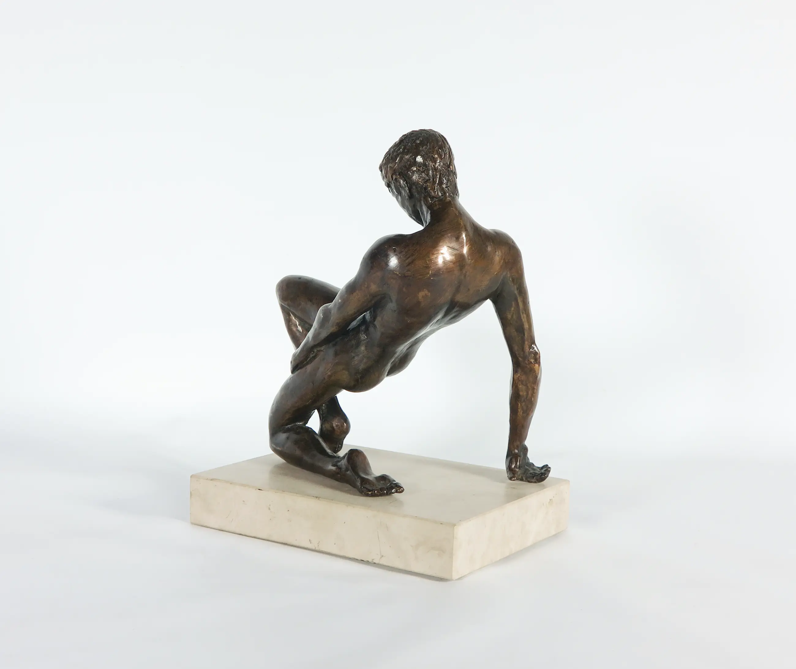 Het betreft een bronzen beeld op een stenen sokkel, deze zitten los van elkaar. Felix signeerde dit werk op de voet van Achilles.