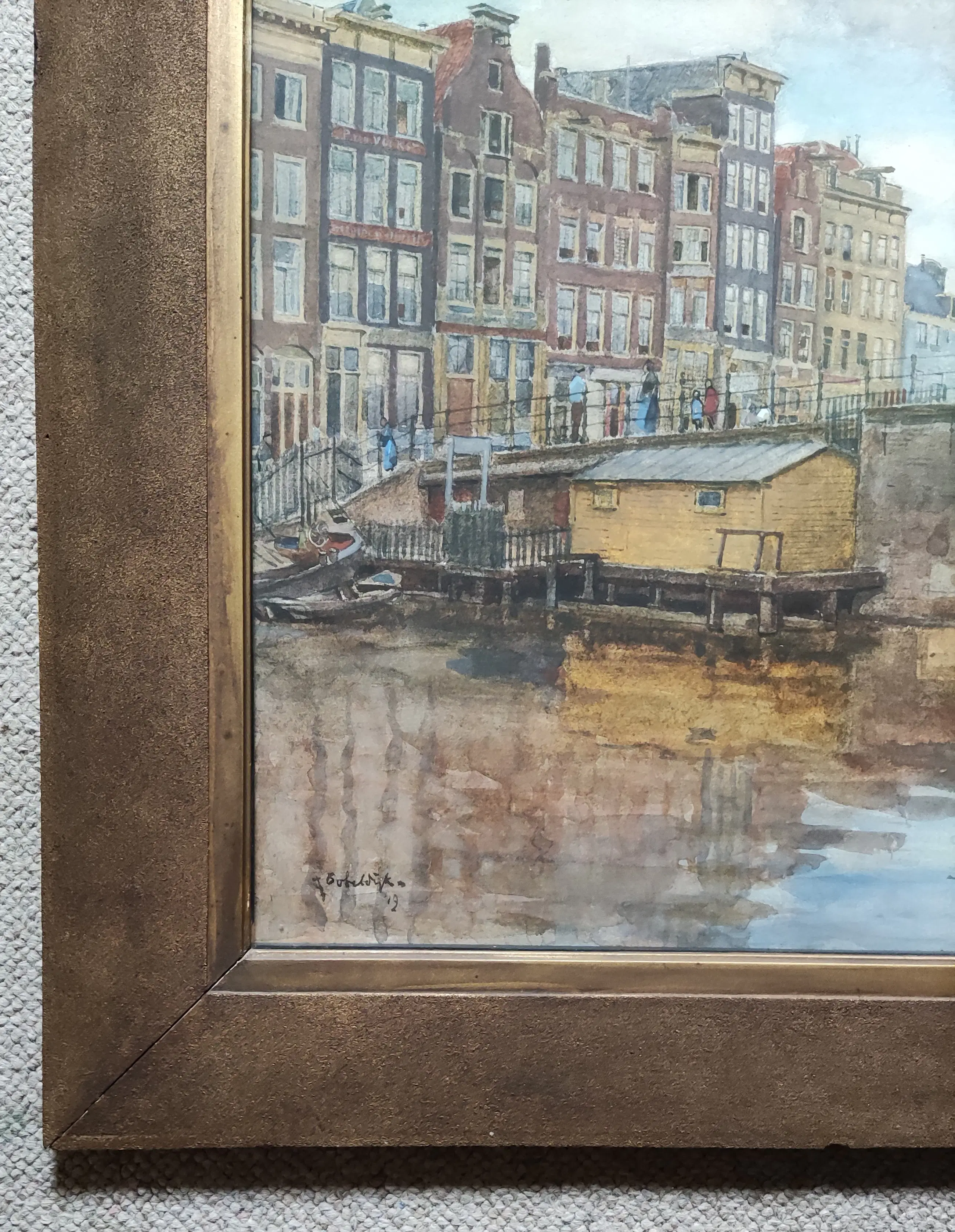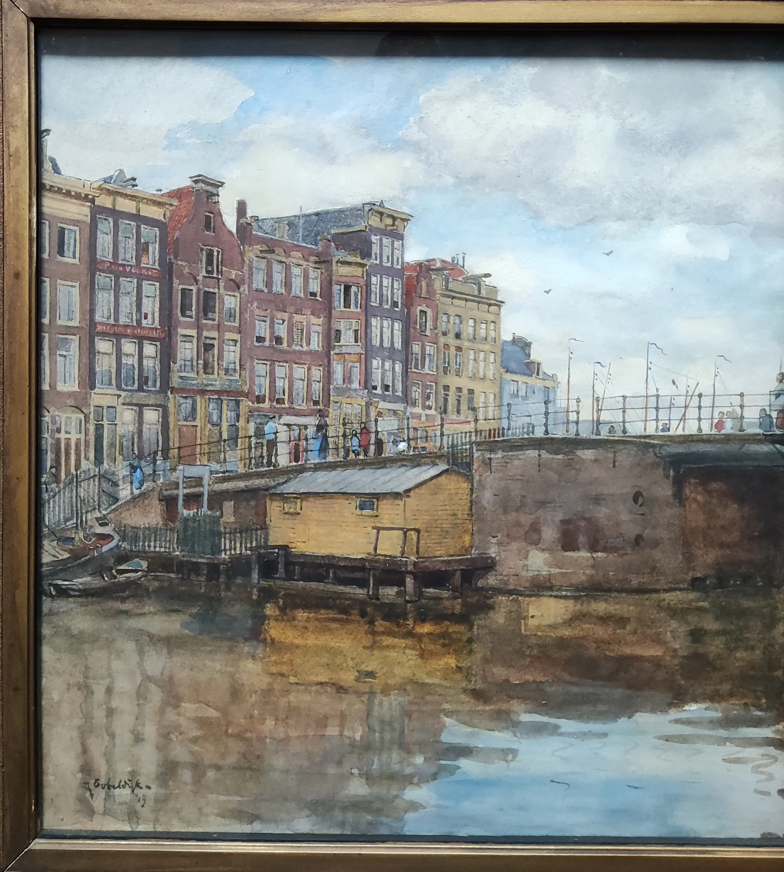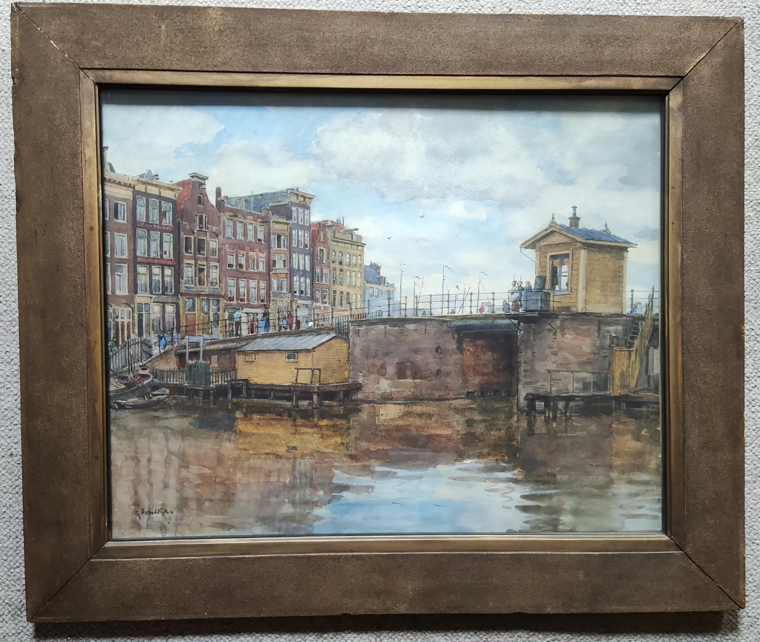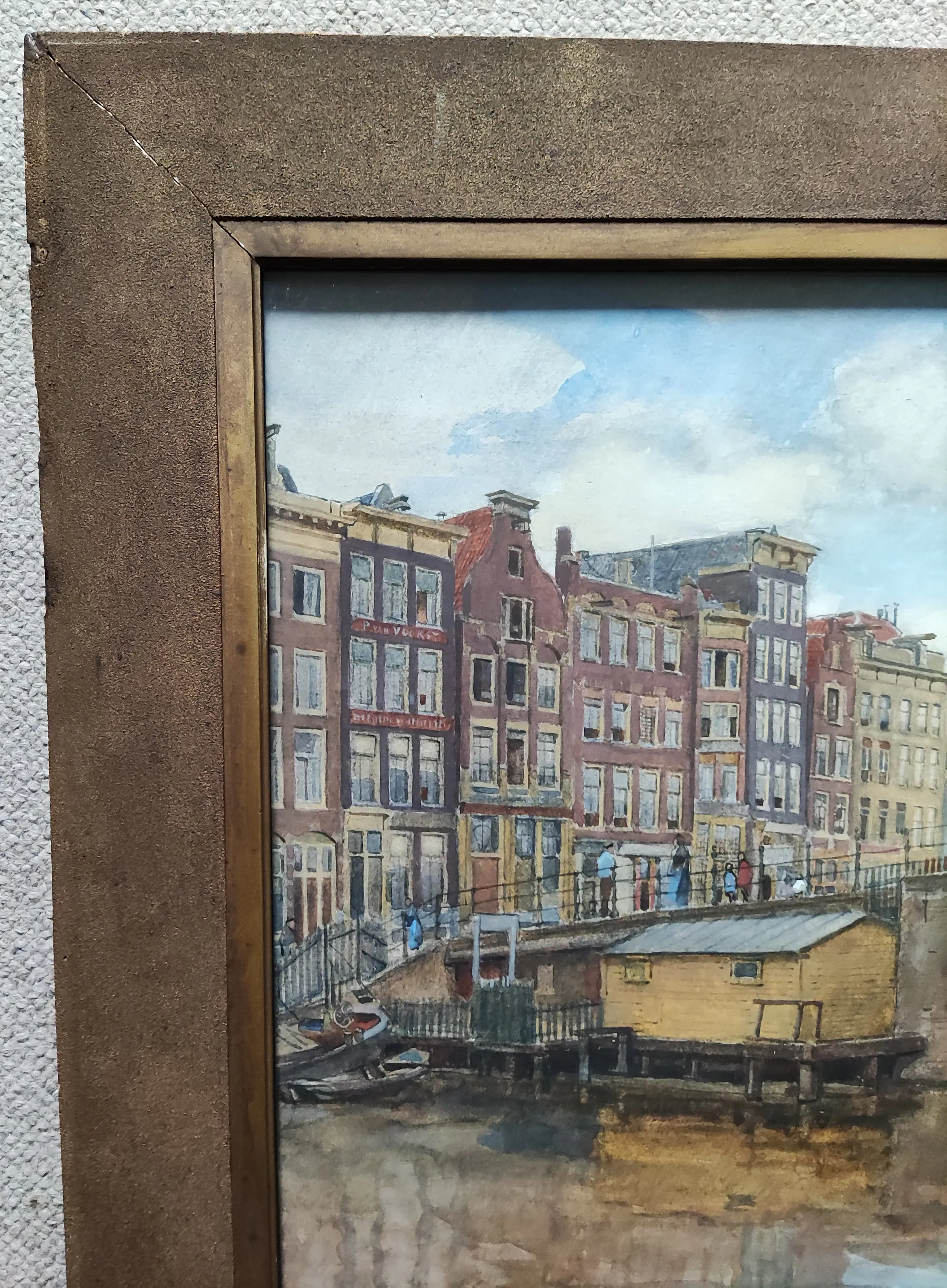 Zeer fraaie aquarel met een zicht op de Kraansluis te Amsterdam.