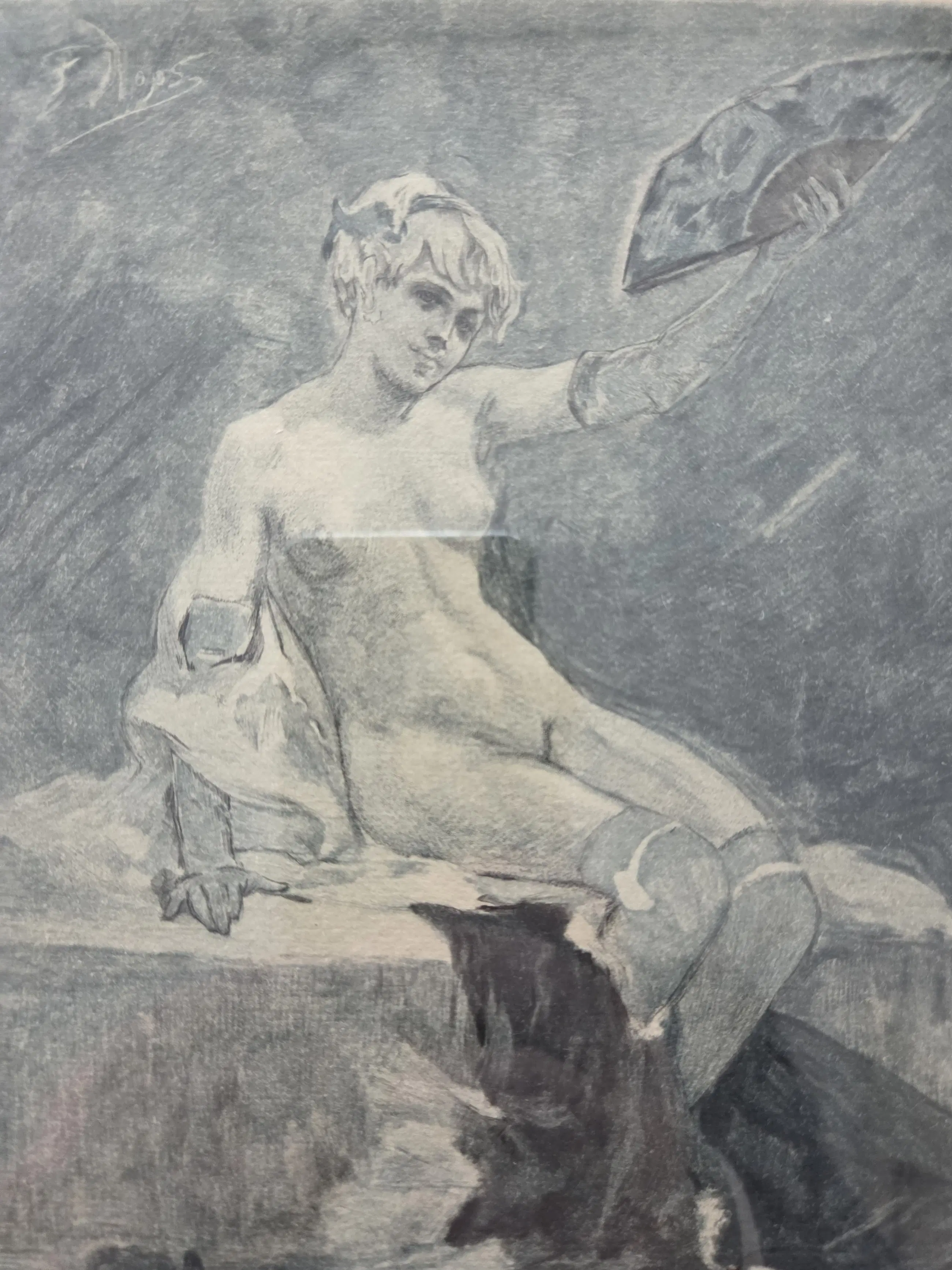 Mooie heliogravure. Voorzijde boek. Uitgave H. Floury. Parijs. Drukgesigneerd linksboven. Uniek object. Mooi passe partout en nette lijst. Goede staat. Zie foto's voor eigen oordeel kwaliteit.
