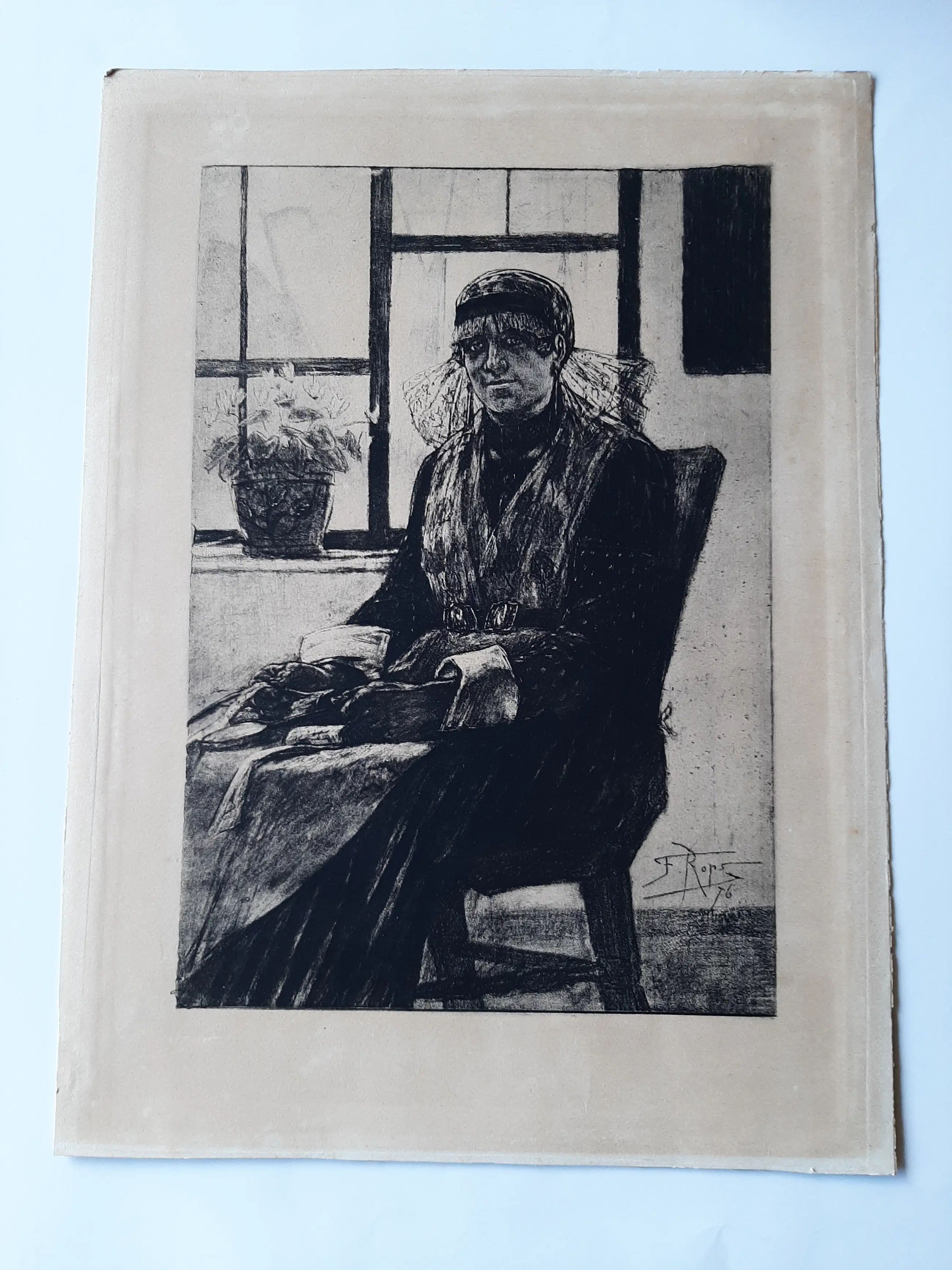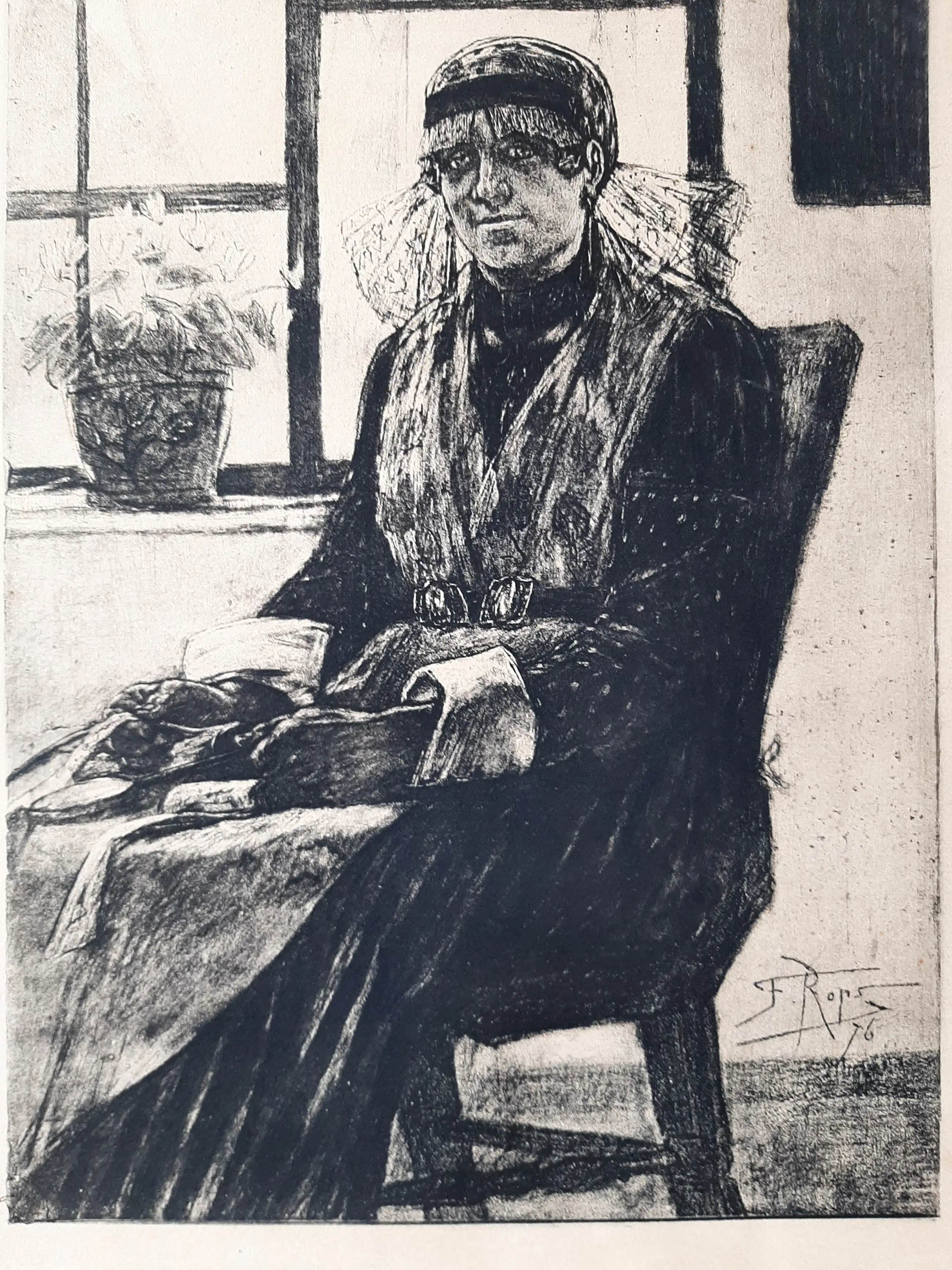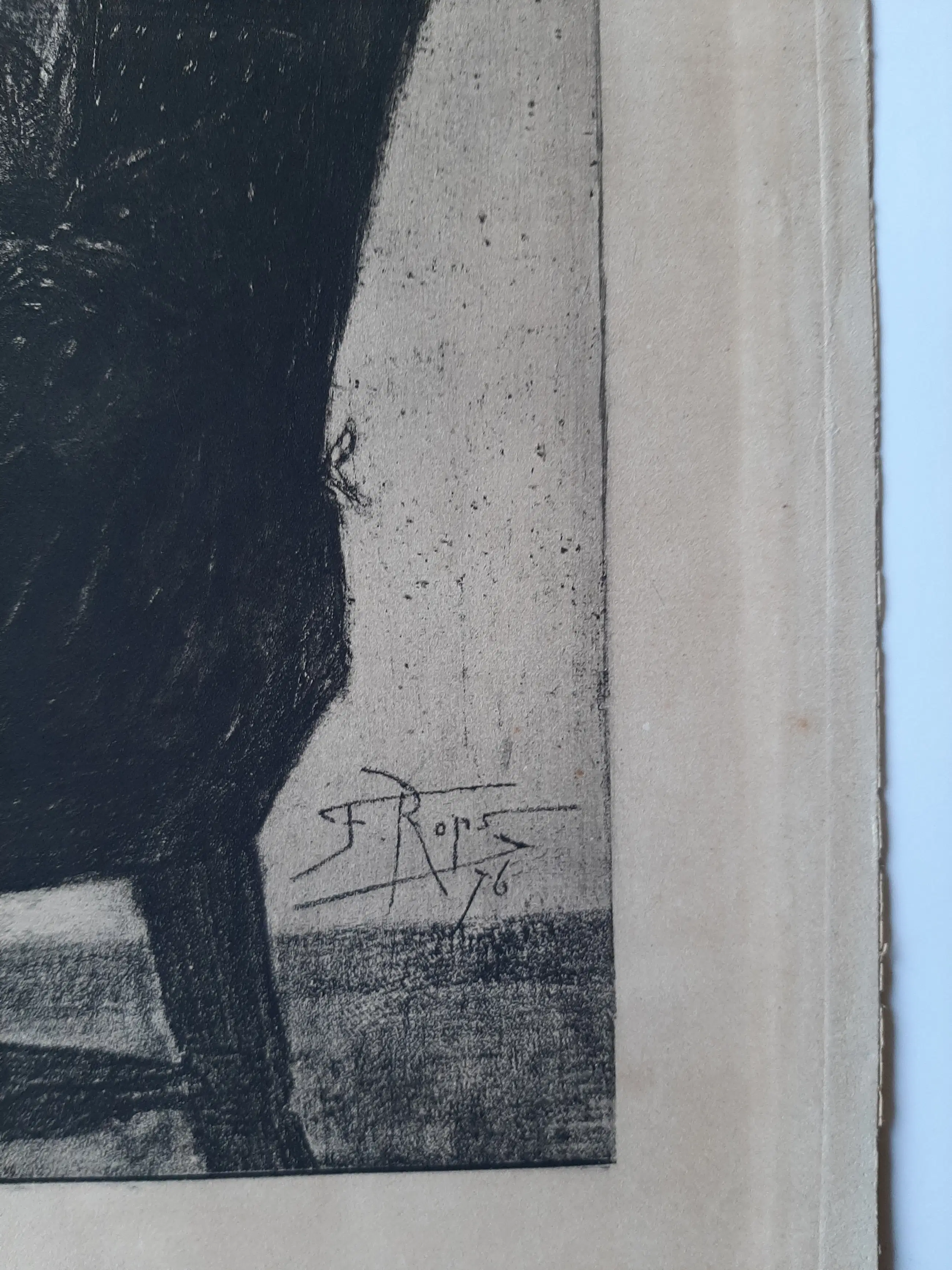 Veel van Rops' etsen zijn erotisch of pornografisch van toon en verbeelden een denkbeeldige onderwereld of onderwerpen van sociale decadentie. Ondanks zijn eigenaardigheden was Rops een prentmaker met een briljante techniek en originele inhoud, wiens gebruik van drogenaald ((het direct op de plaat etsen ) markeert hem als een van de meesters van het medium. Hij was ook een van de eerste moderne etsers die het verwaarloosde medium van dezachte grondlaag , waarbij de etsgrond wordt gesmolten en gemengd met talk, waardoor het effect ontstaat van met een zacht potlood of krijt getekende lijnen.