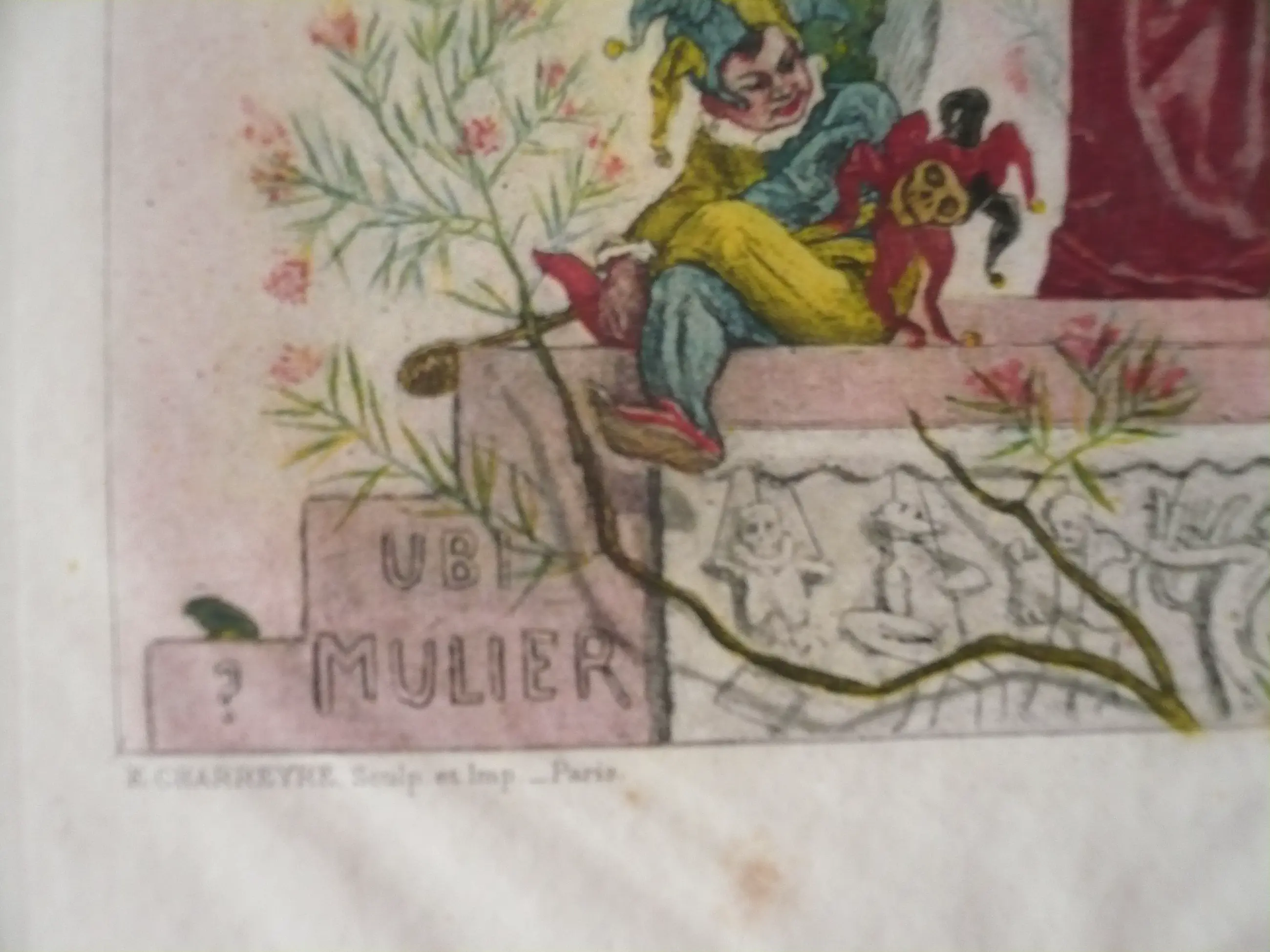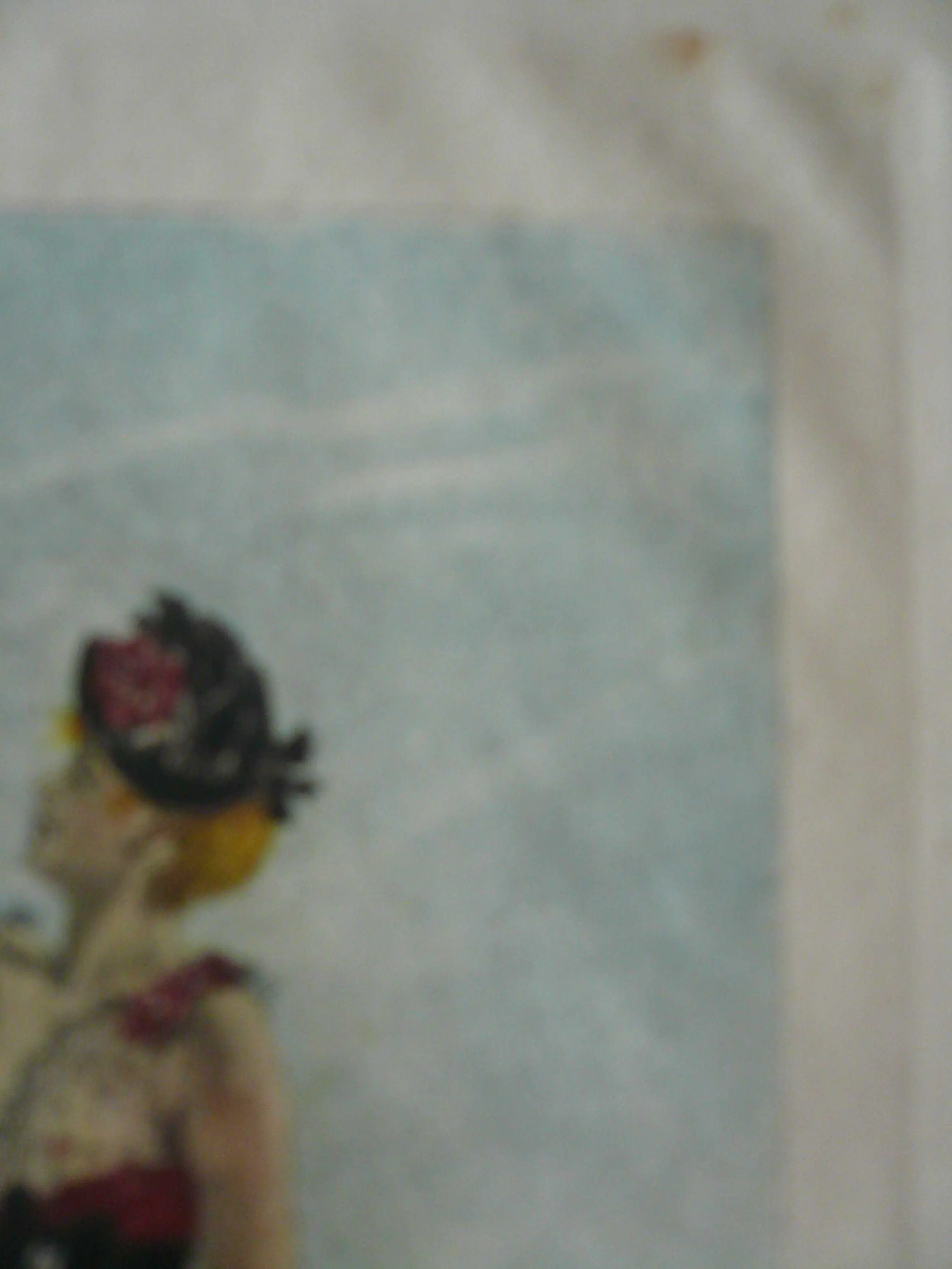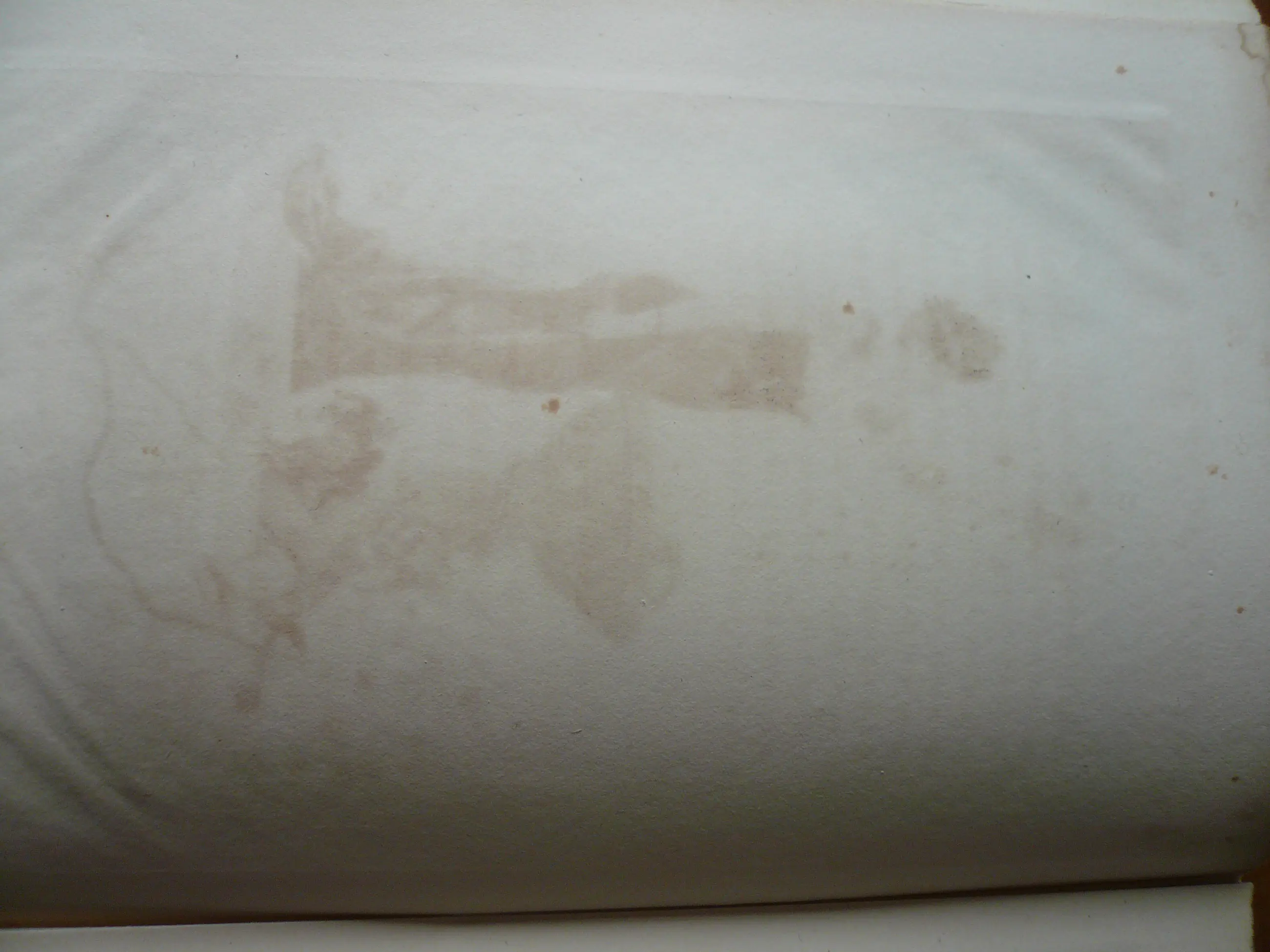 Een paar kleine roestvlekjes buiten de plaat en kleine vochtvlekjes onderaan het blad; zie de foto's