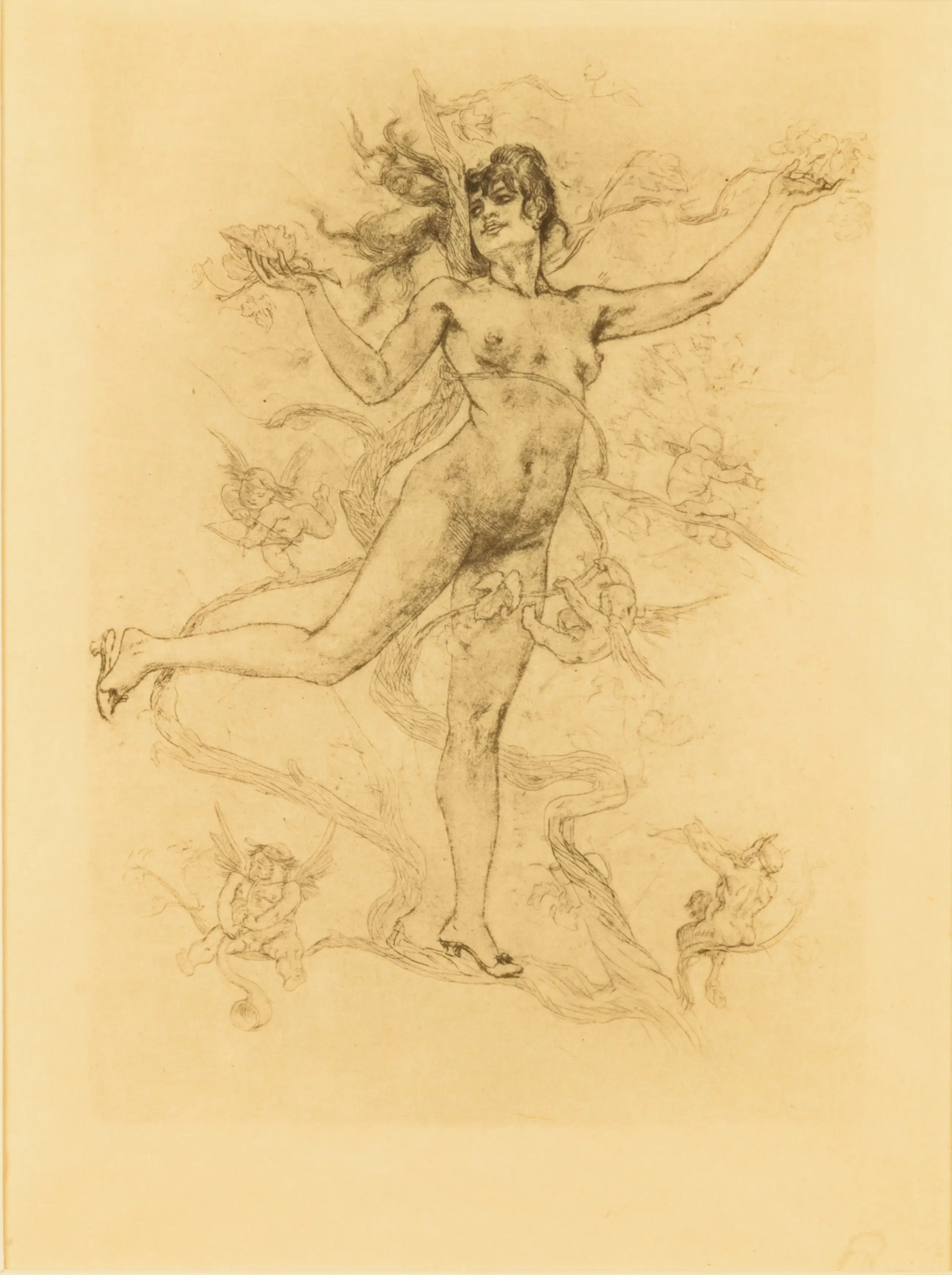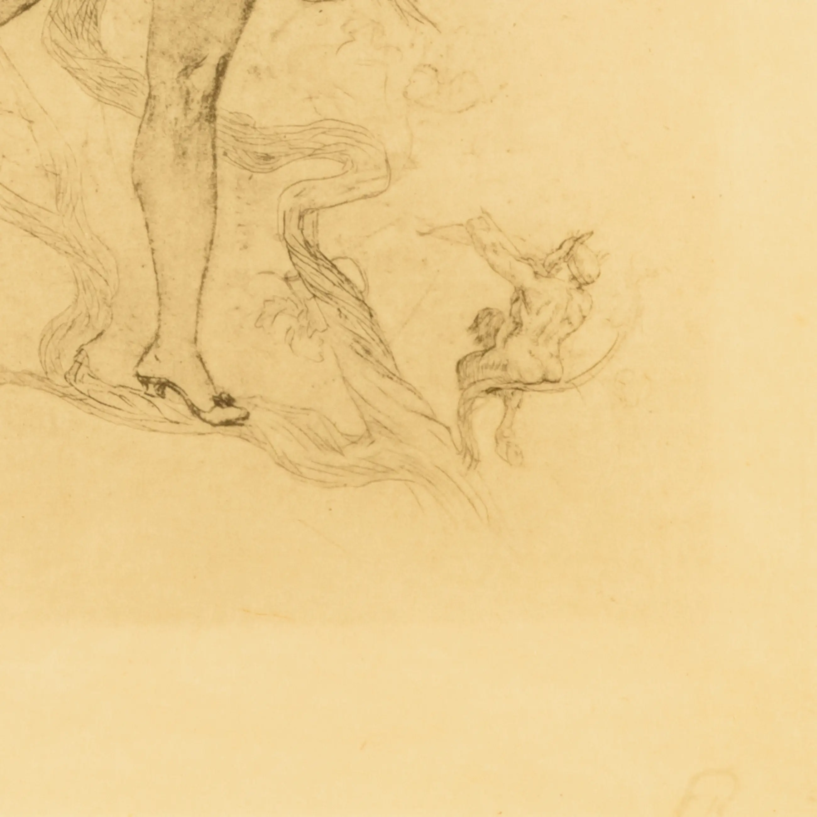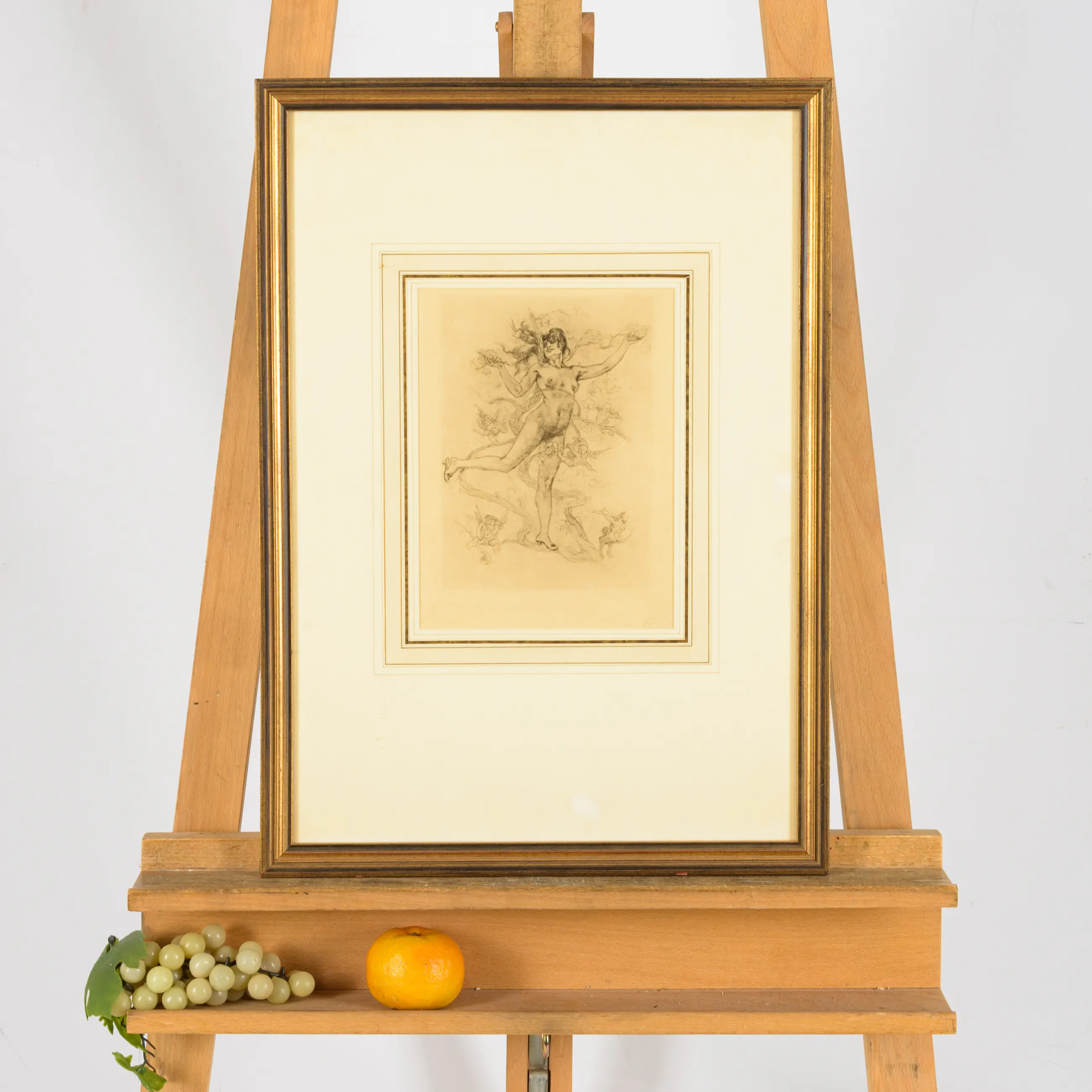 Felicien Rops - Mythologische tekening van een naakte vrouw die gracieus danst
