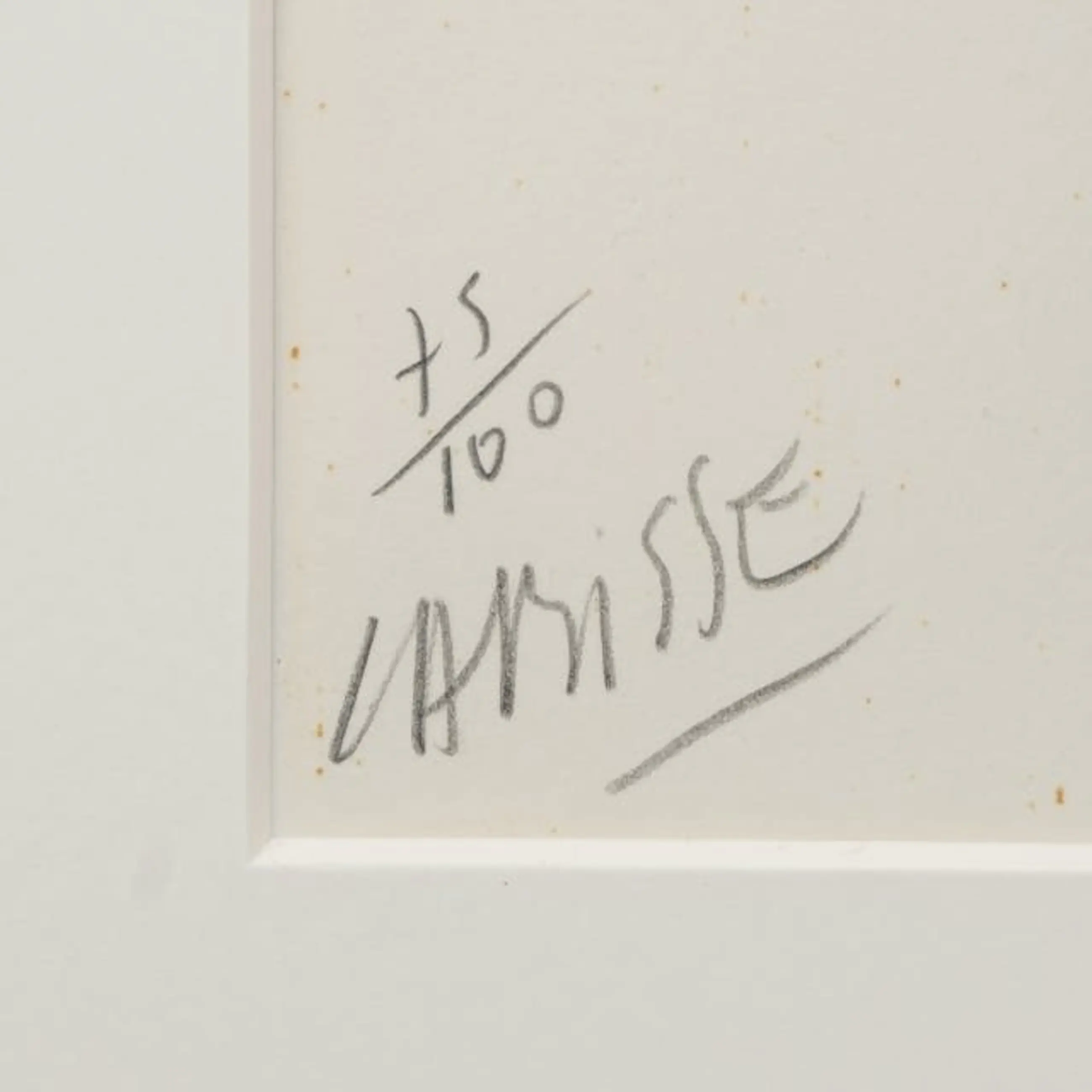 Zeldzame en intrigerende kleurenlithografie van de Franse surrealist Félix Labisse (1905–1982), getiteld “Chansons d'apres midi”. Het werk maakt deel uit van de prestigieuze reeks Les Fleurs du Mal, uitgegeven in 1975 in Macerata (Italië), geïnspireerd op de gelijknamige dichtbundel van Charles Baudelaire.