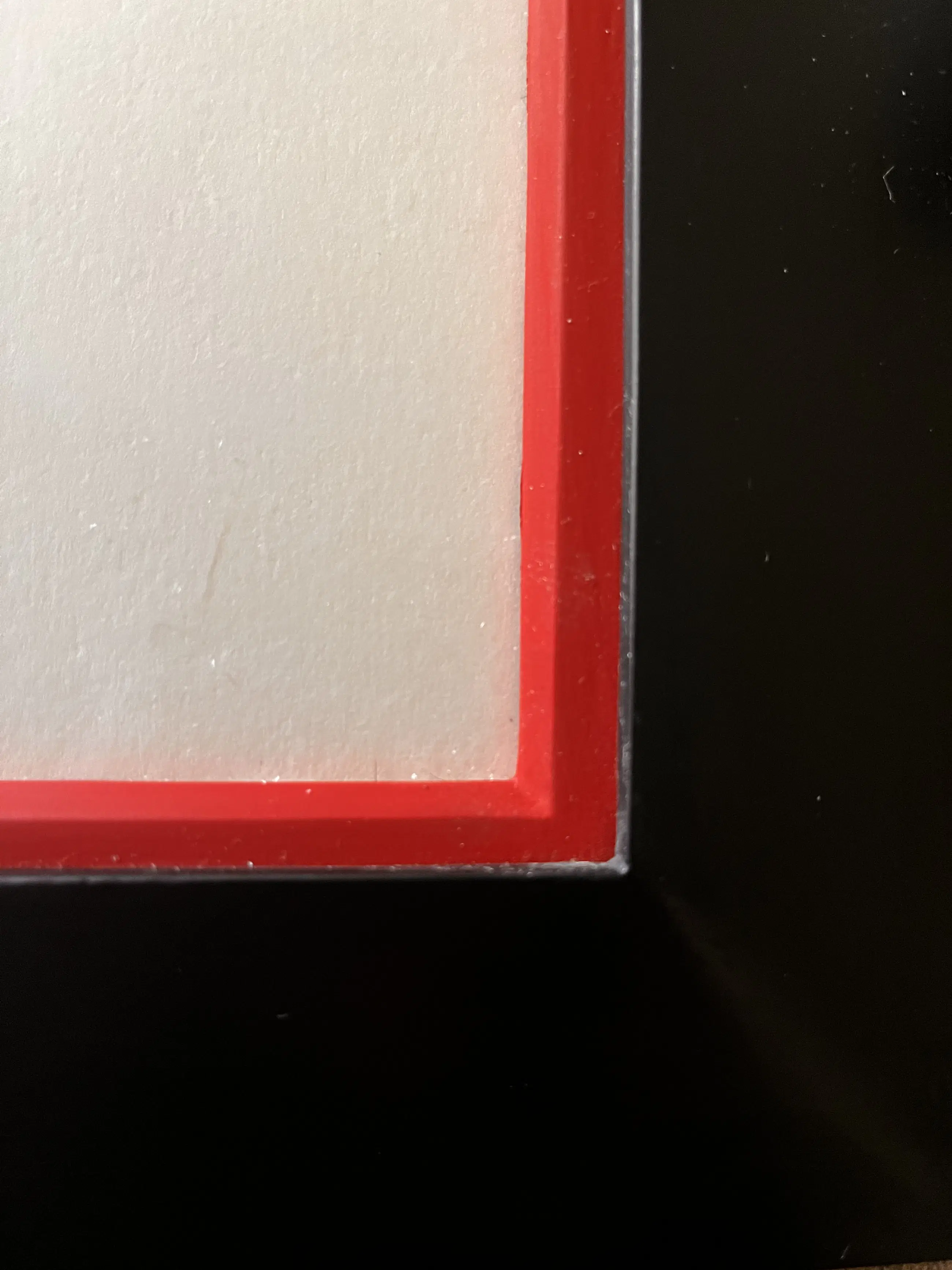 Inlijsting: Professioneel ingelijst met zwart met rode houten lijst