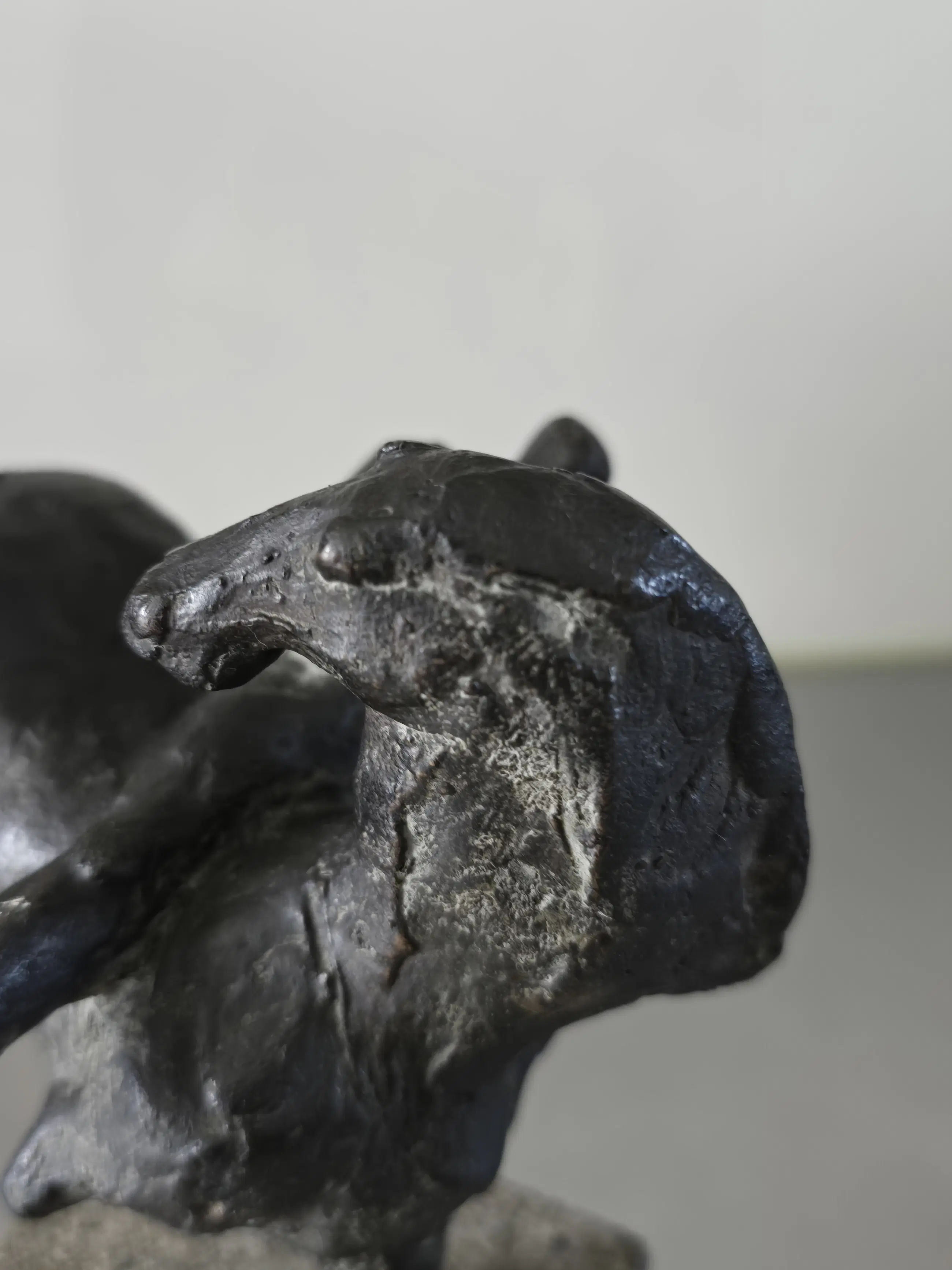 Uniek bronzen werk op natuursteen sokkel. Felix van der Linden , nederlands kunstenaar leefde van 1929 tot 2011. Hij was leerling van Wim van de Plas en Piet Essers. Nadien vervolmaakte hij zich aan de Accademia du Belle di Breza te Milaan. Daar kreeg hij les van de beeldhouwer Luciano Minguzzi en Marino Marini. Van der Linden staat bekend om dierfiguren maar maakte ook penningen. Dit beeld is puntgaaf en handgesigneerd door de kunstenaar Himself.