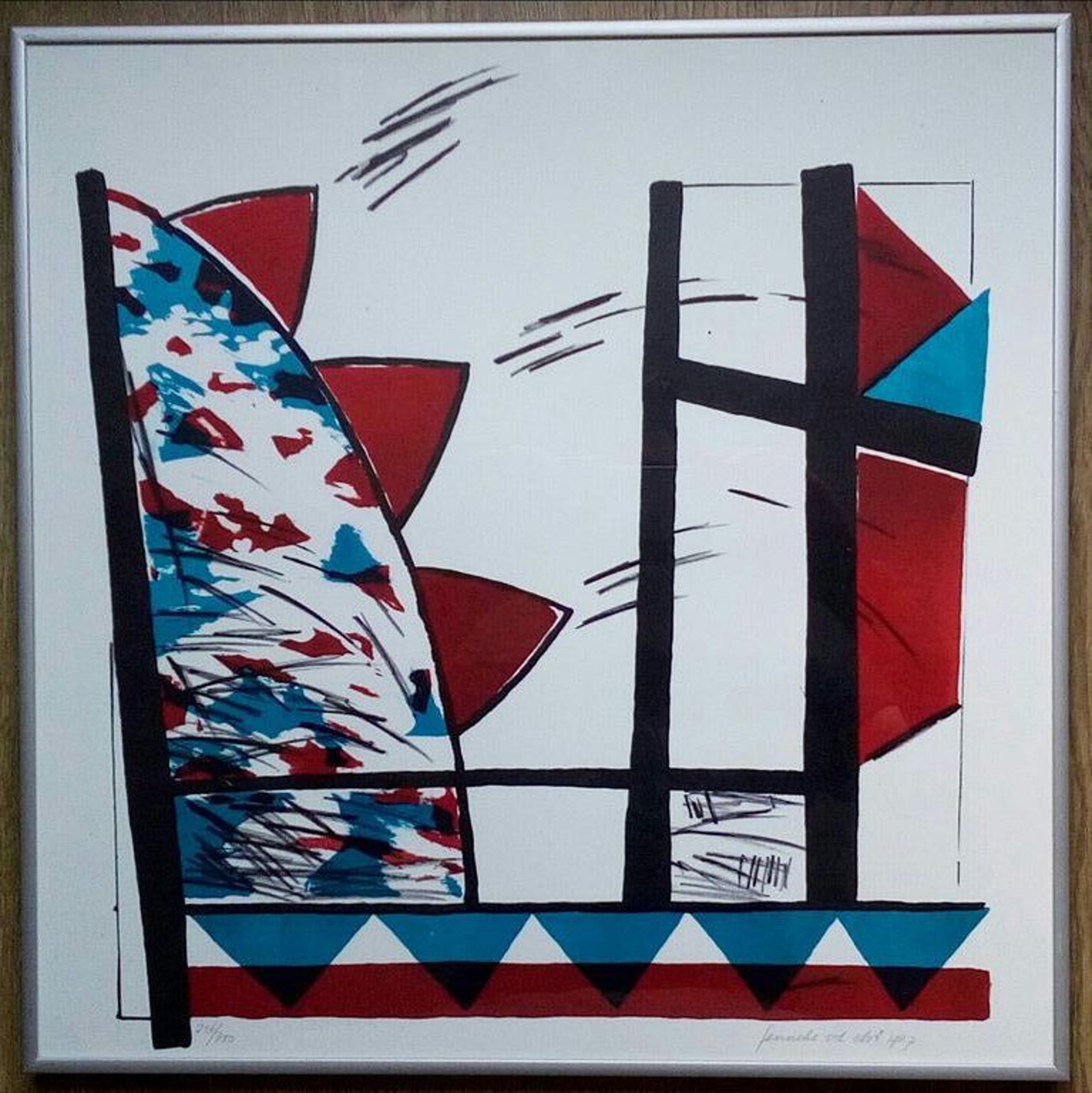 Abstracte zeefdruk van Fenneke van der Elst uit 1987