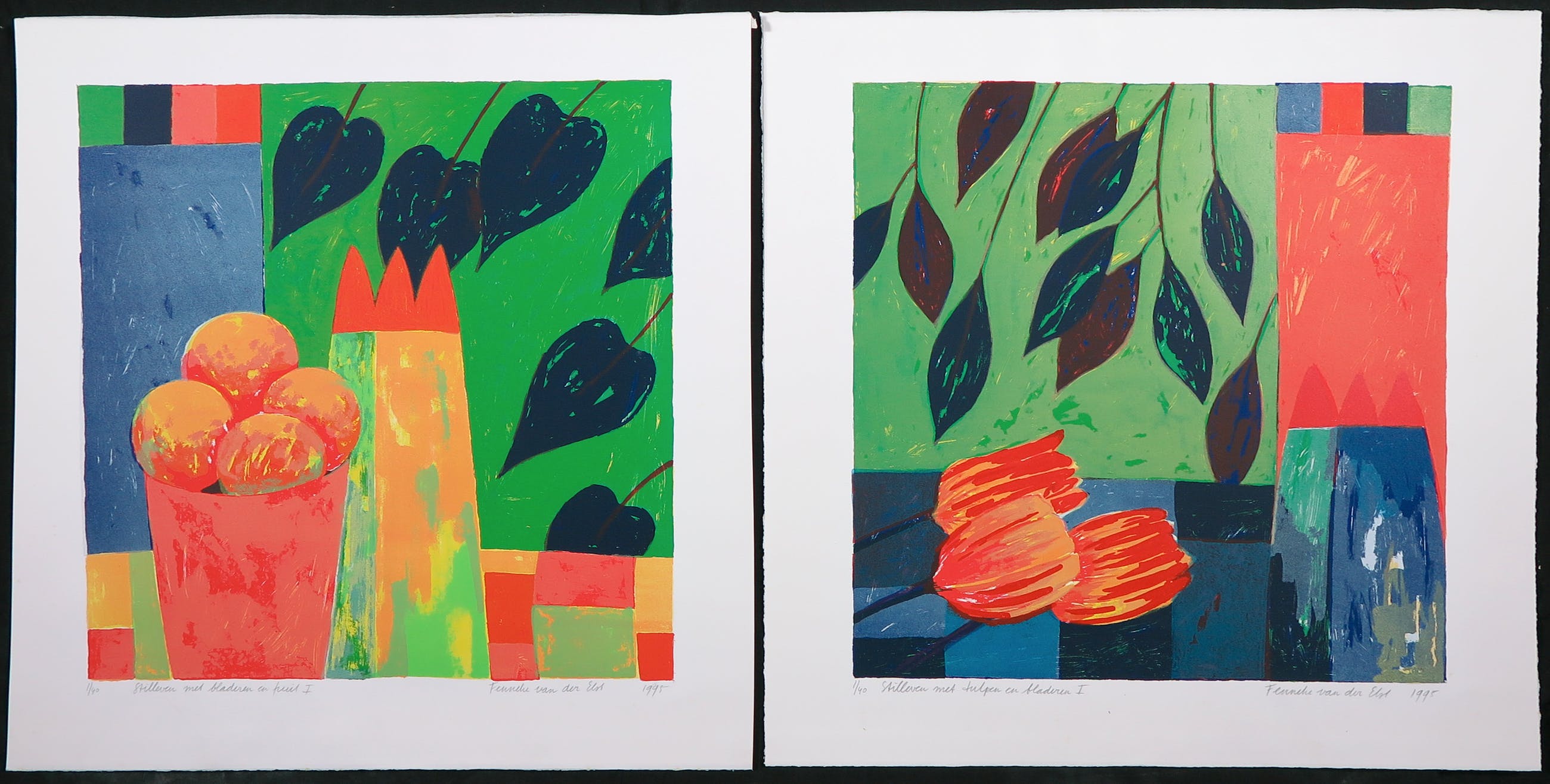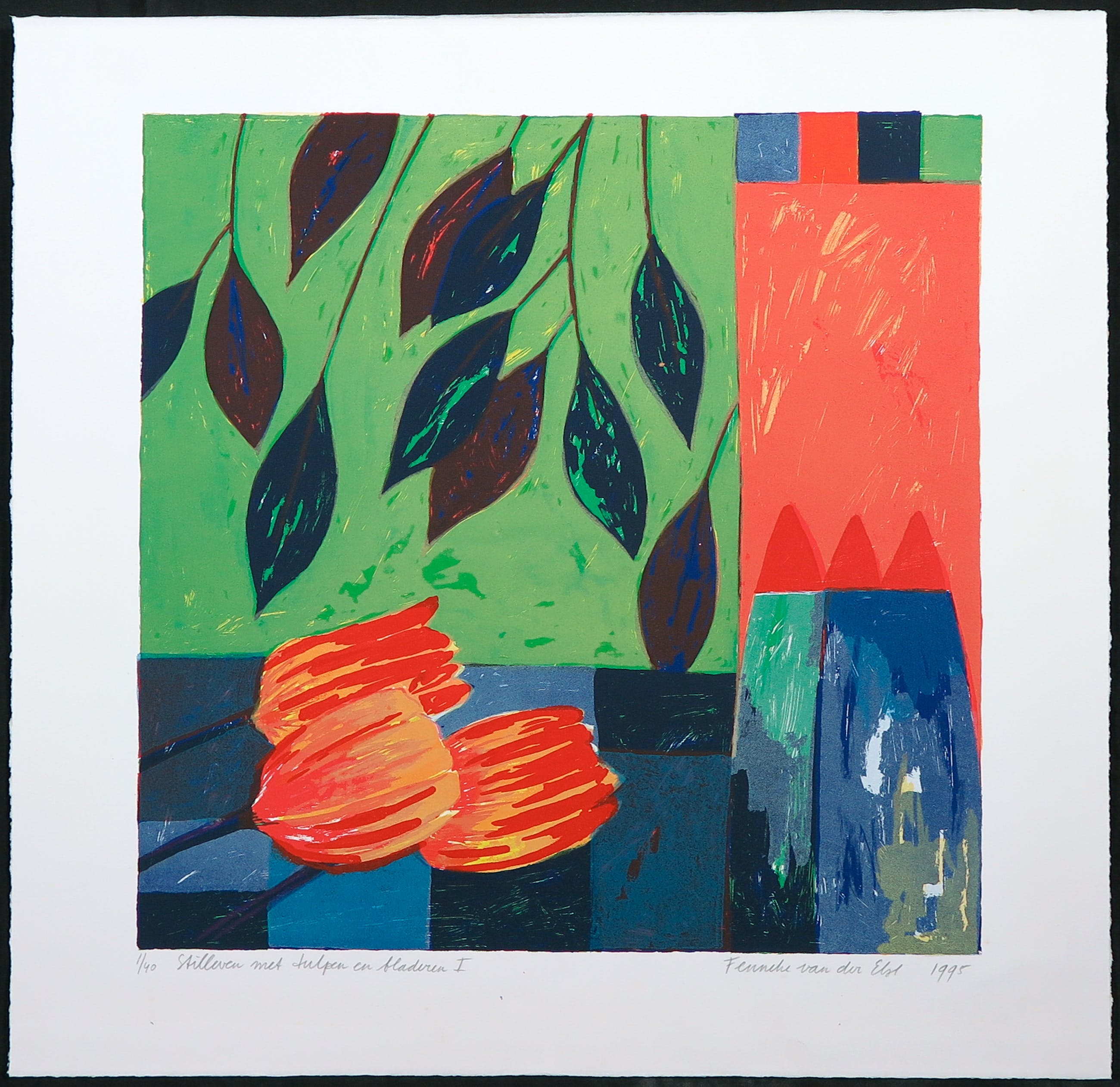 Stilleven met tulpen en bladeren I
