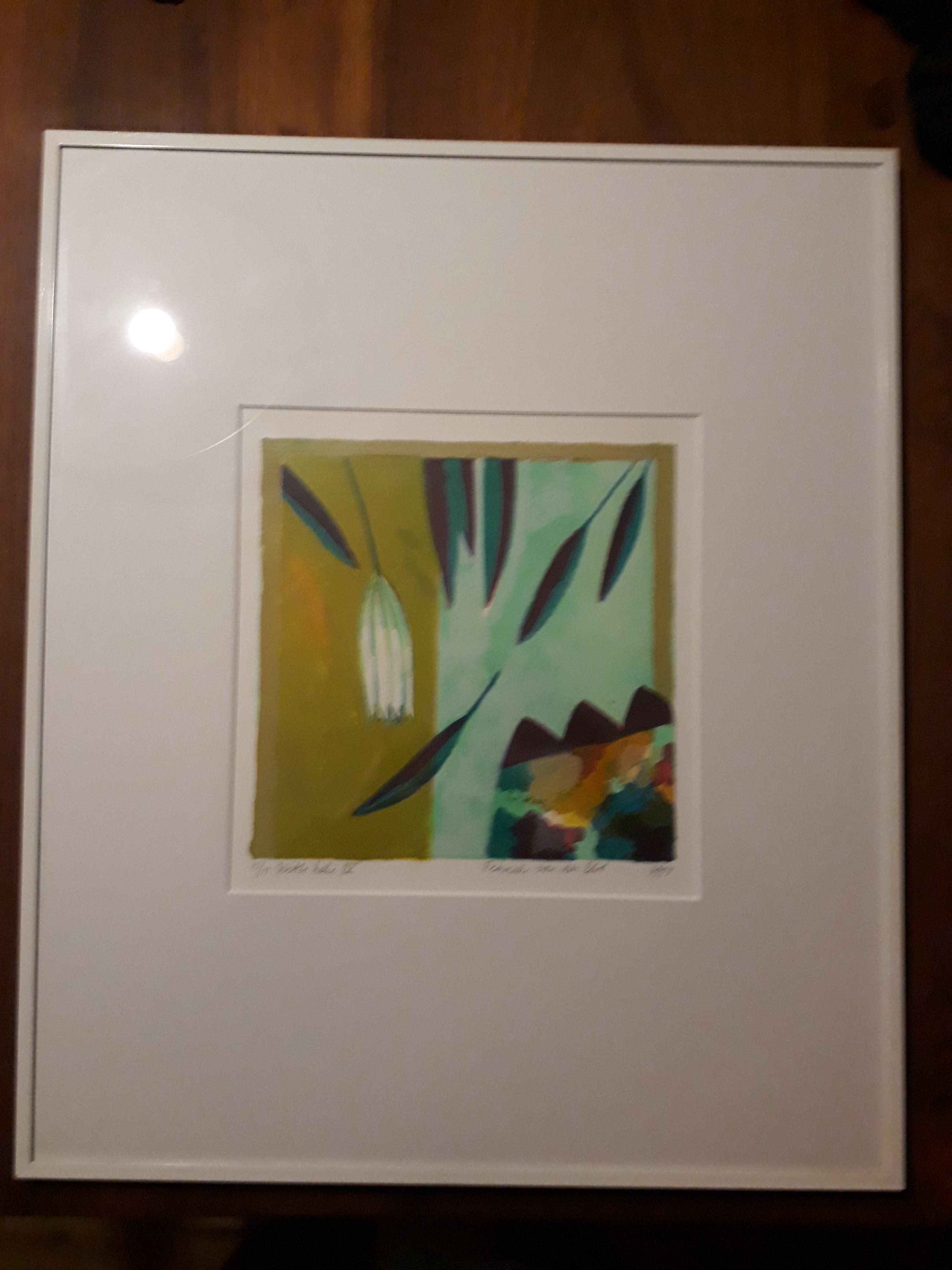 Mooie zeefdruk van fenneke van der elst witte lelie IV Opnieuw ingelijst met nieuwe passe partout ophang klaar. oplagenummer:15/15