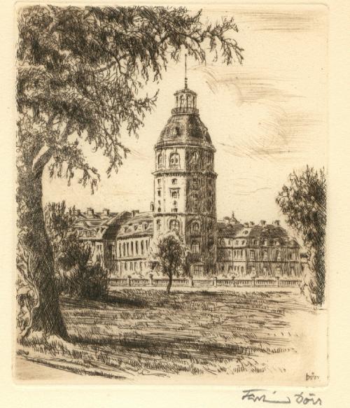 Radierung in bräunlich. Unten rechts von Ferdinand Dörr mit Bleistift signiert.Leichter Lichtrand durch ehemaligen Rahmen, rückseitig umlaufend Montierungsrest.Plattengröße etwa 12 mal 14,8 cm.Privatverkauf. Versand als Brief 3 Euro.