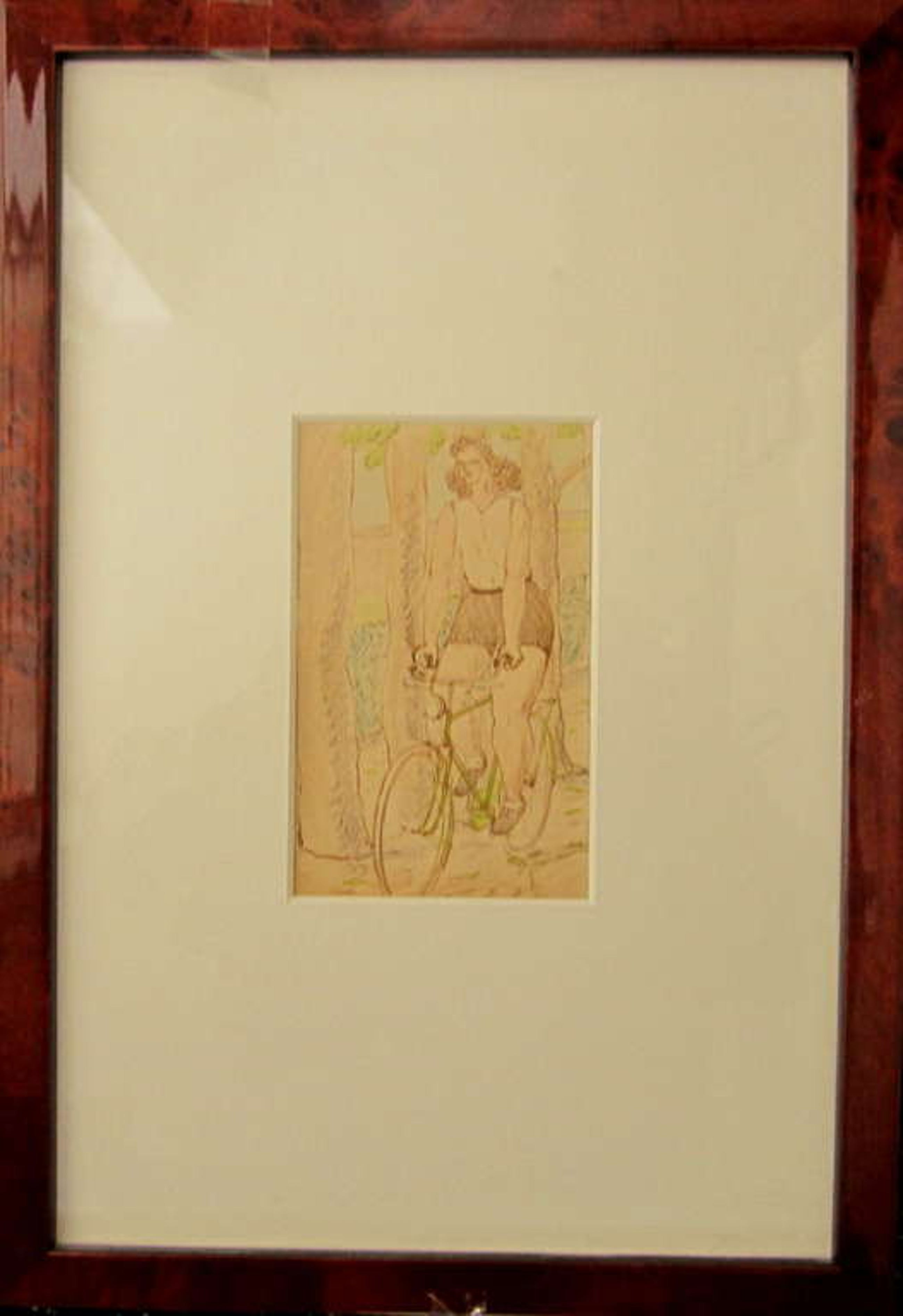 oplage is uiteraard 1. (Tekening!) De vrouw op herenfiets rijdt door een geheimzinnig bosachtig landschap.