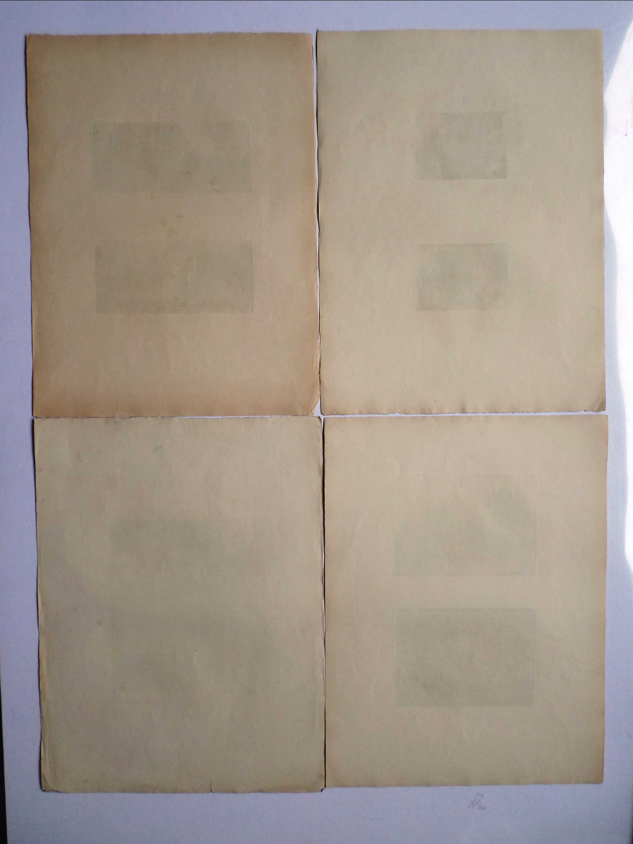 Dit item bestaat uit 9 latere drukken op 4 bladen ca. 19e eeuw. Er is 1 ets gesigneerd in de plaat.