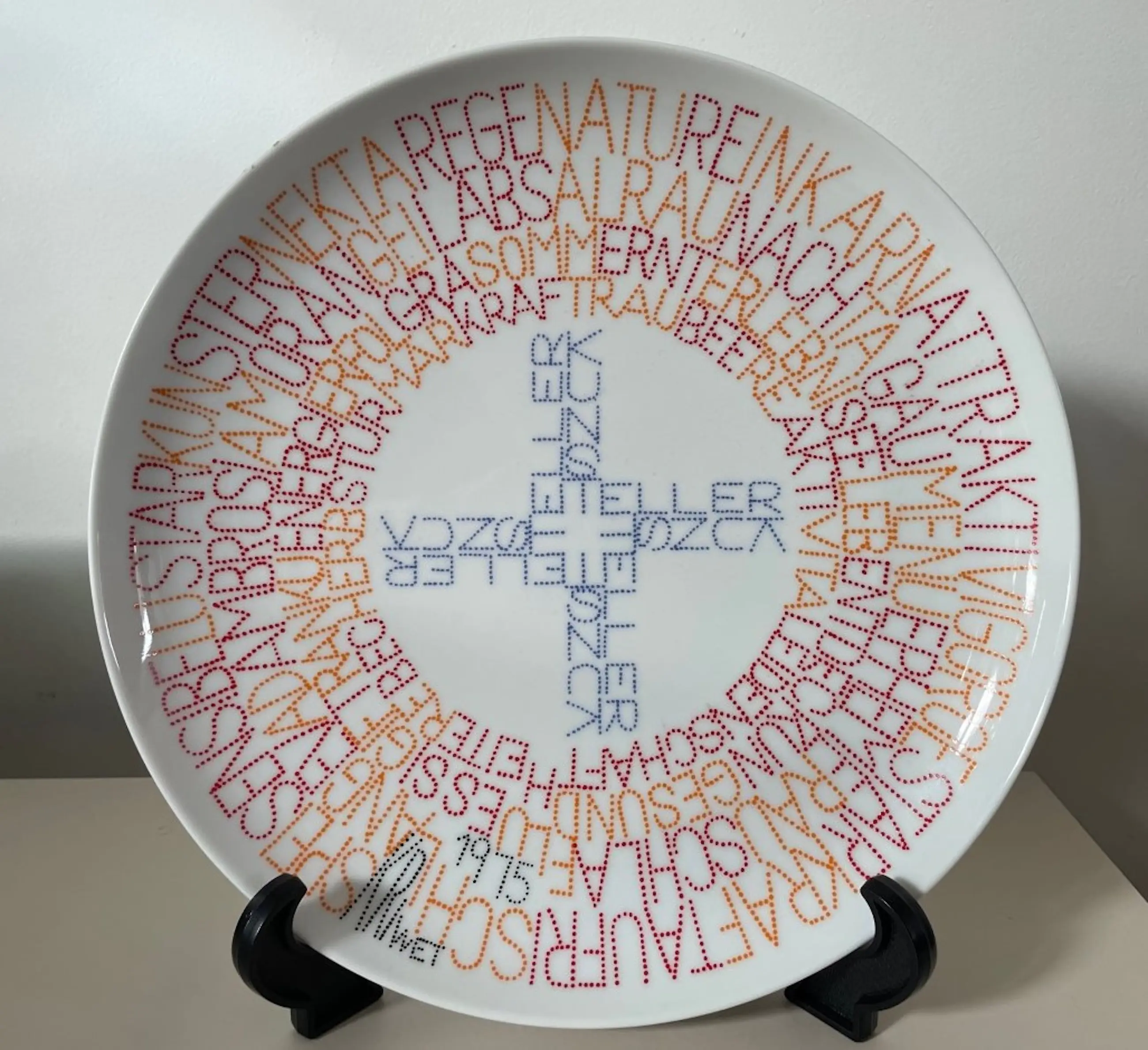Rosenthal Nr. 8 Künstler-Teller (1975). Ferdinand Kriwet - "Text-Teller" - beperkt: 8 / 5000. Diameter ca. 26 cm. Collector's item.
