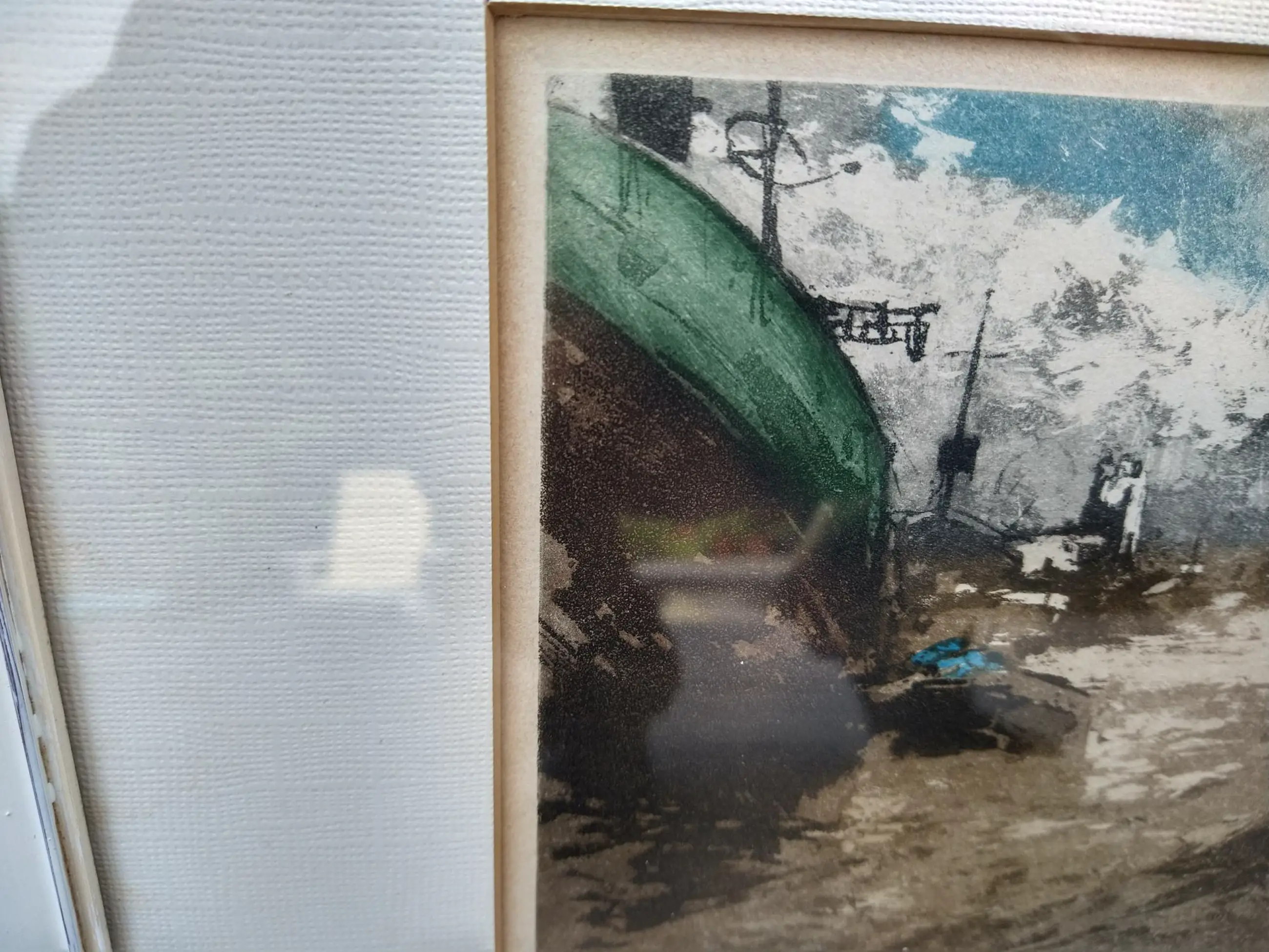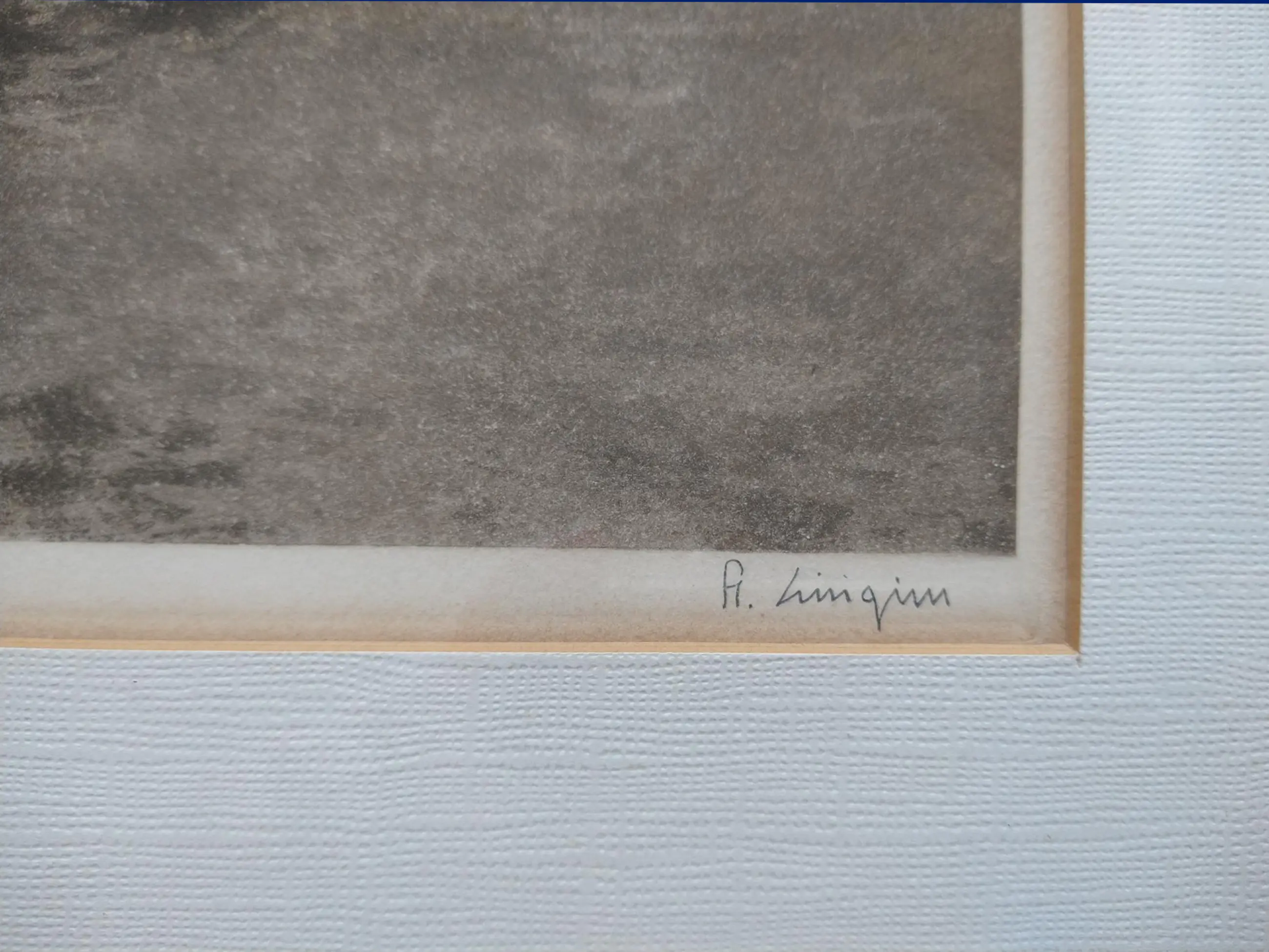 In witte houten lijst, afm. 41 x 32 cm (rechter bovenhoek beschadigd, zie voorlaatste foto).