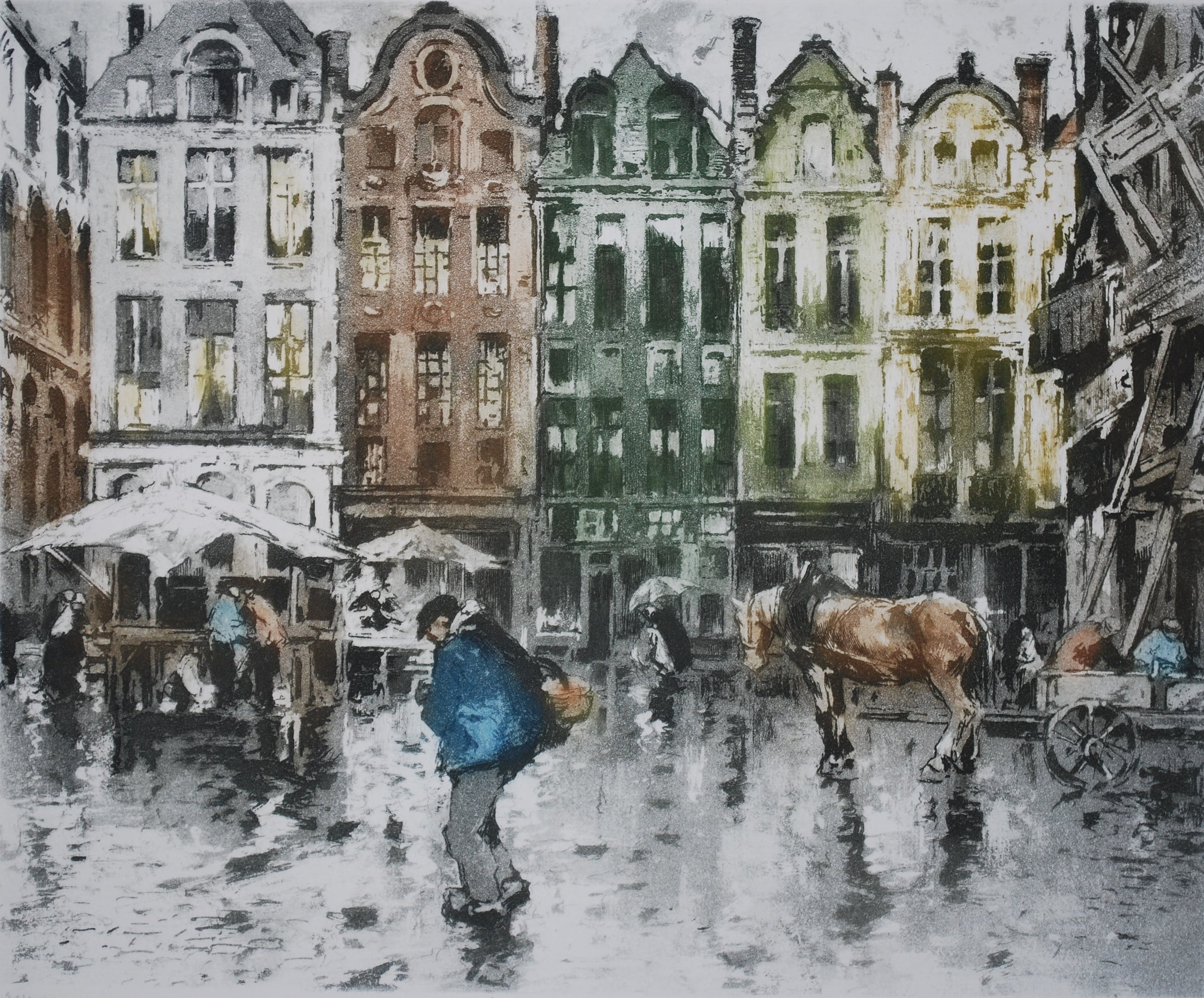 Hollands of Vlaams stadsgezicht. Plaatrand 30x36.5 cm. Oplagenummer 78/100. Wordt gerold verstuurd in een brede koker.