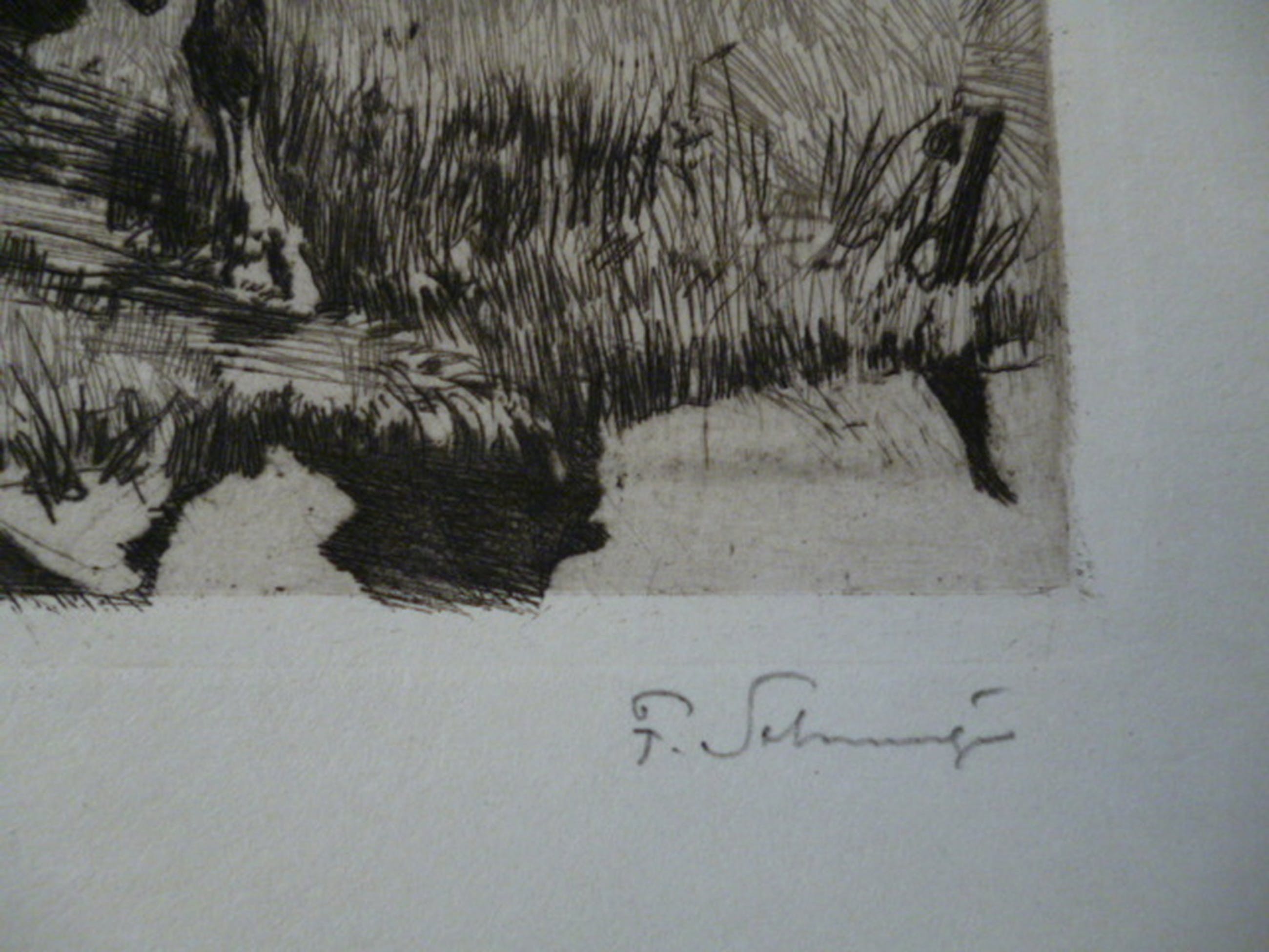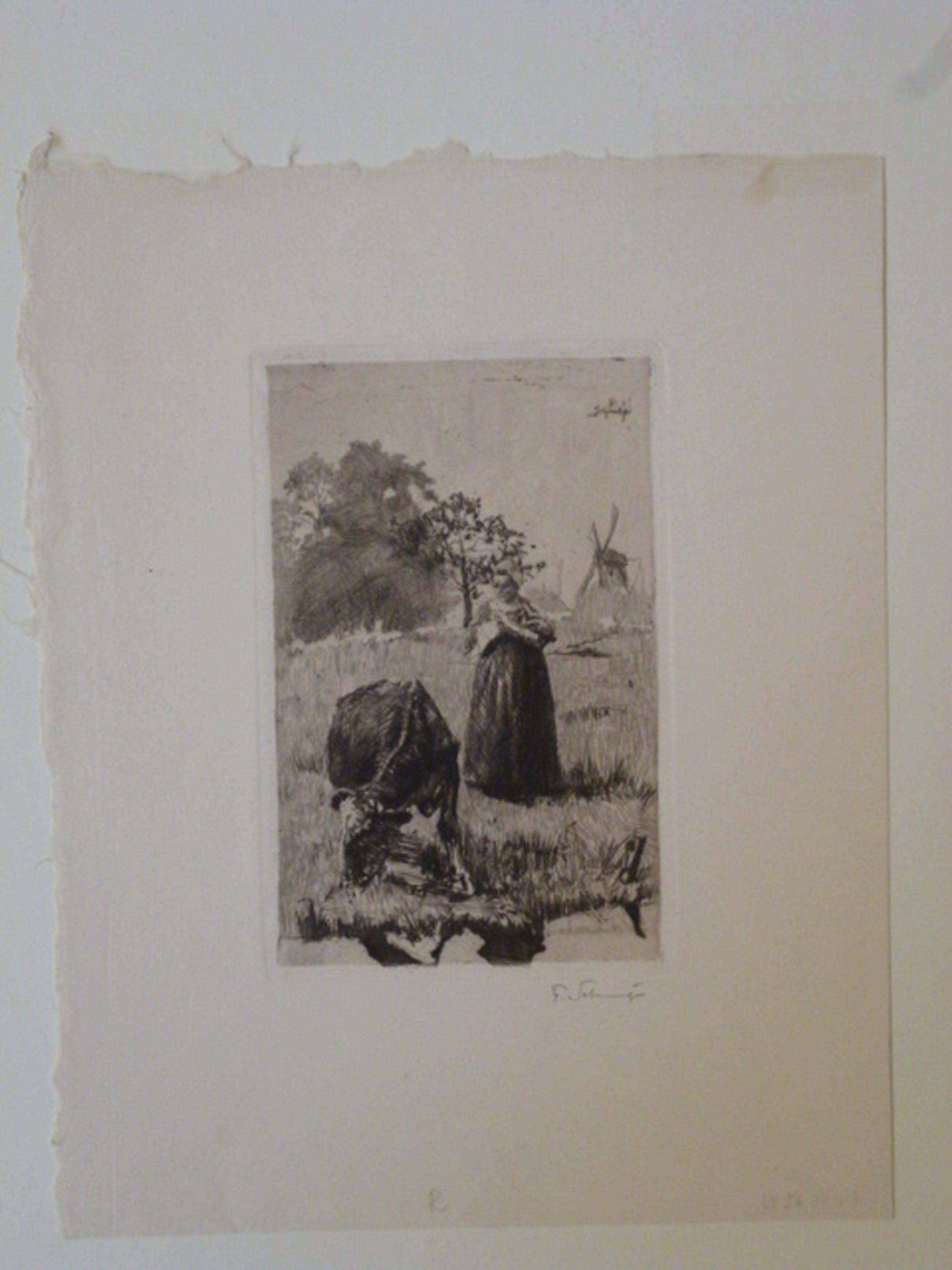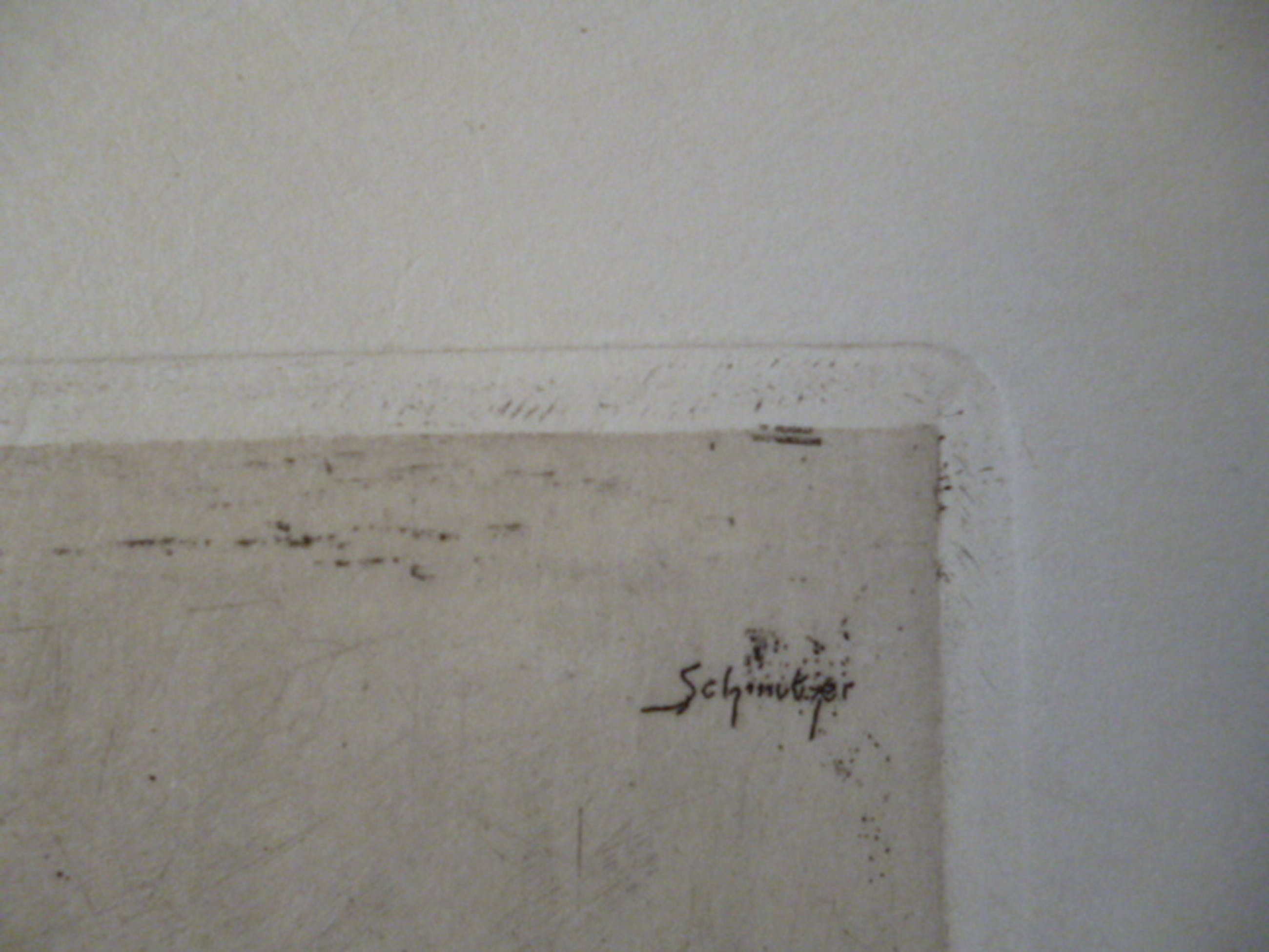 Ets, potlood gesigneerd rechtsonder. In de plaat gesigneerd rechtsboven.