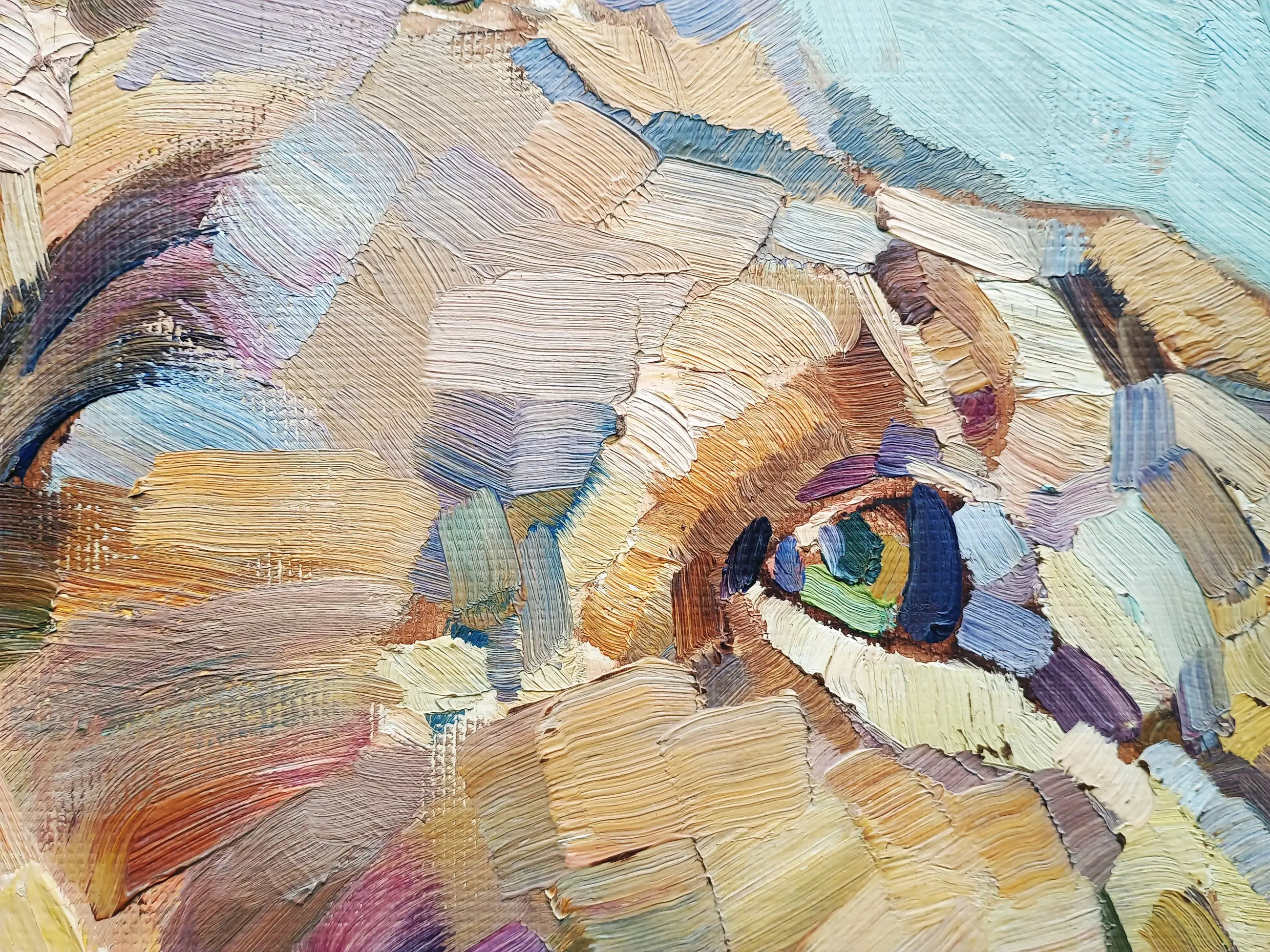 Enkele gebruikssporen aan de randen en hoeken van het schilderij - zie foto's.