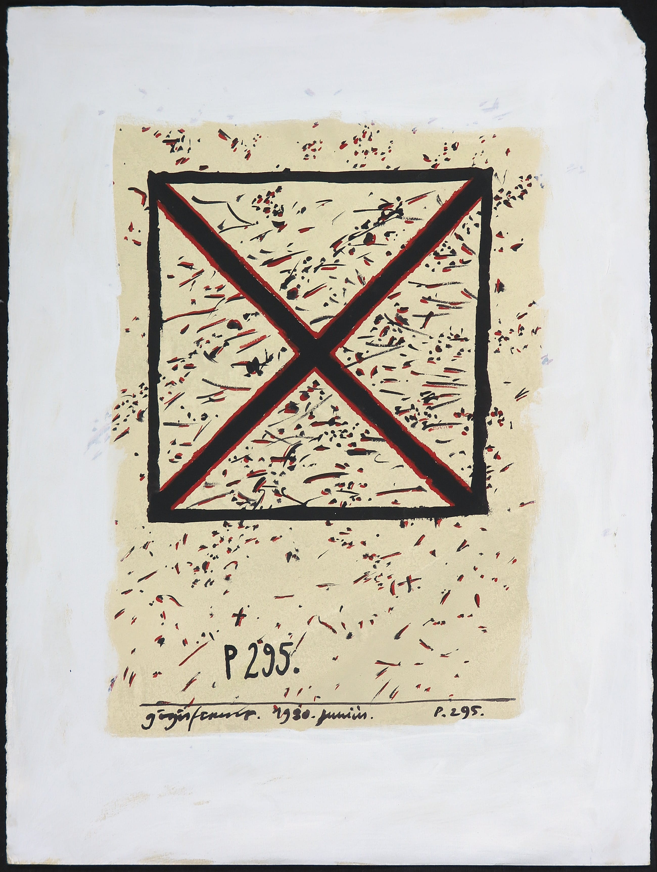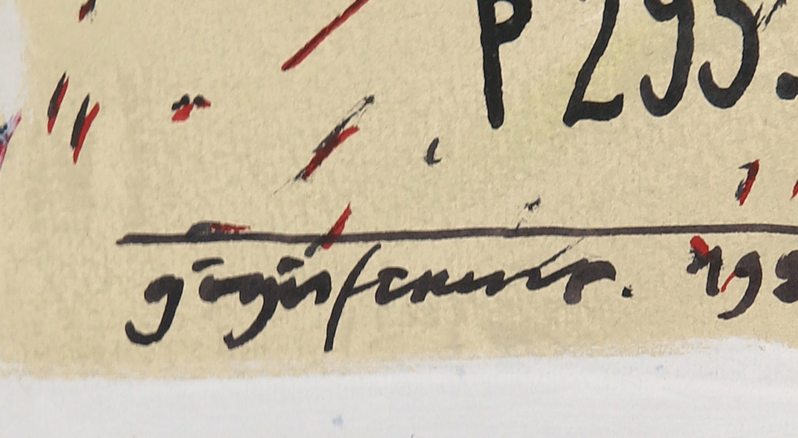 Gouache op papier door de Hongaarse kunstenaar Ferenc Gögös. Langs de onderste rand gesigneerd, gedateerd en onleesbaar getiteld.