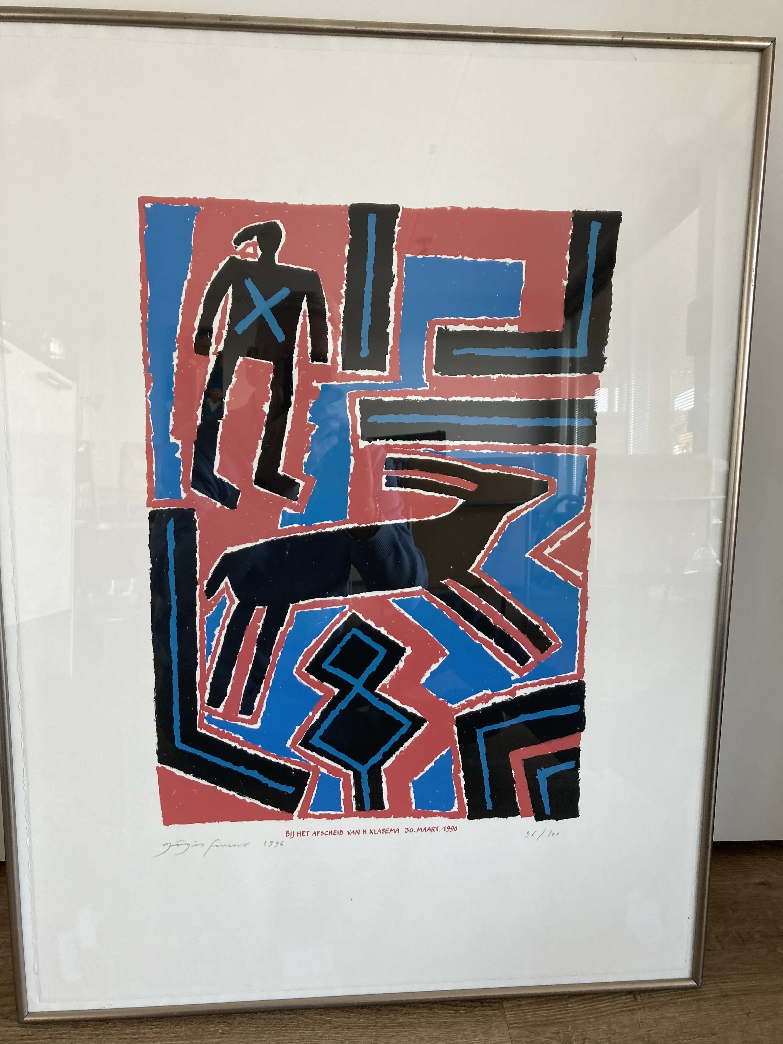Deze litho is gemaakt voor het afscheid van H.Klasema dd. 30 maart 1996. Met l.o. Gögös Ferenc 1996 met potlood en r.o. 96/100 met potlood.