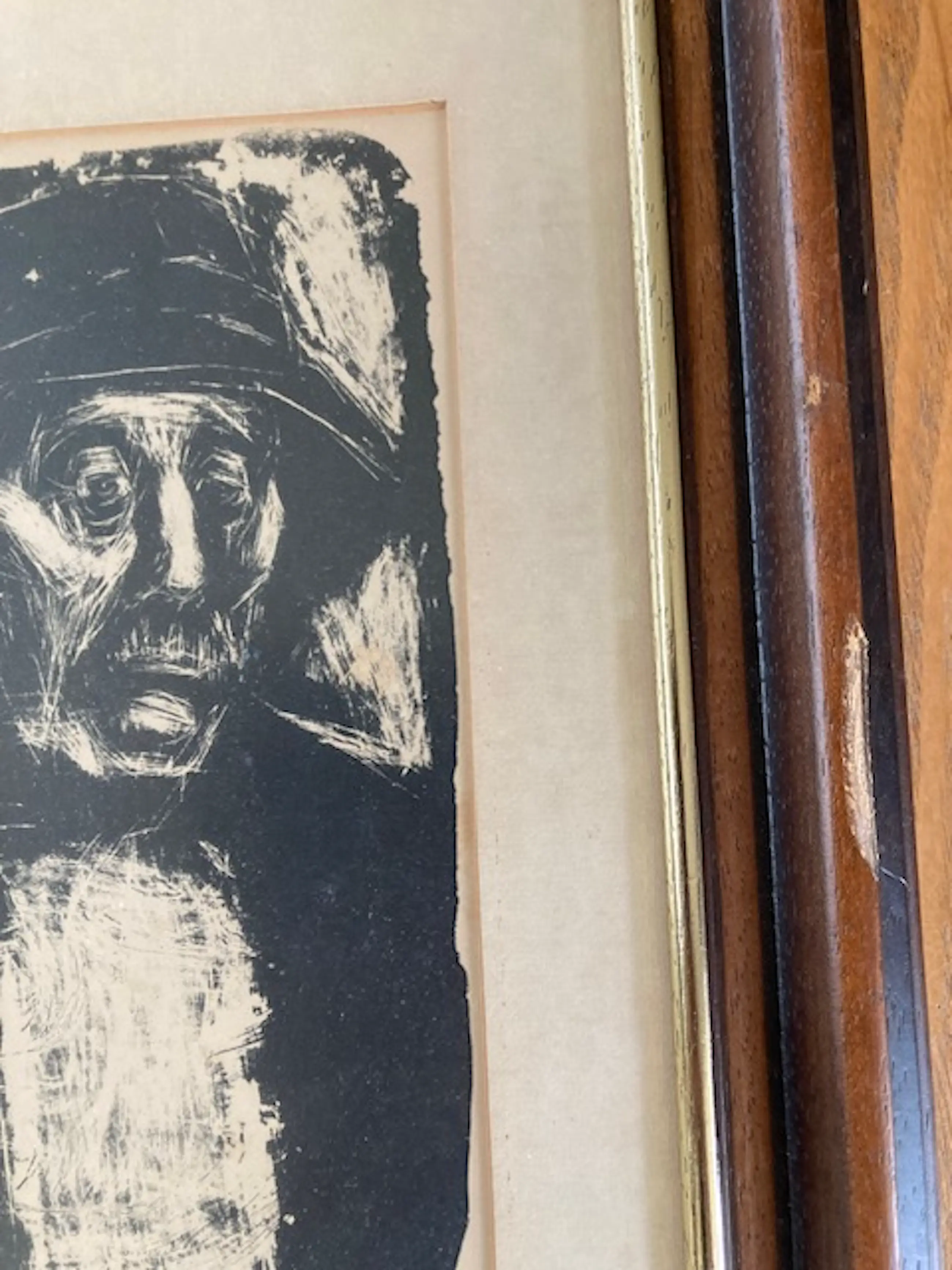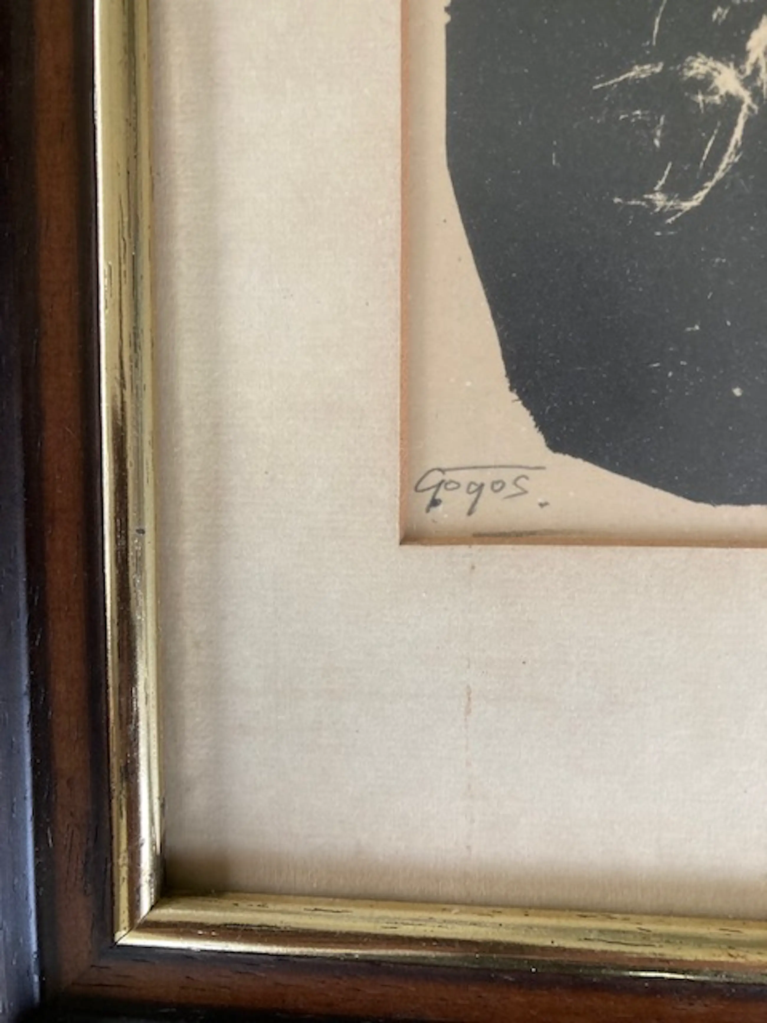42 x 35 cm inclusief passe partout en lijst (lijst iets beschadigd)