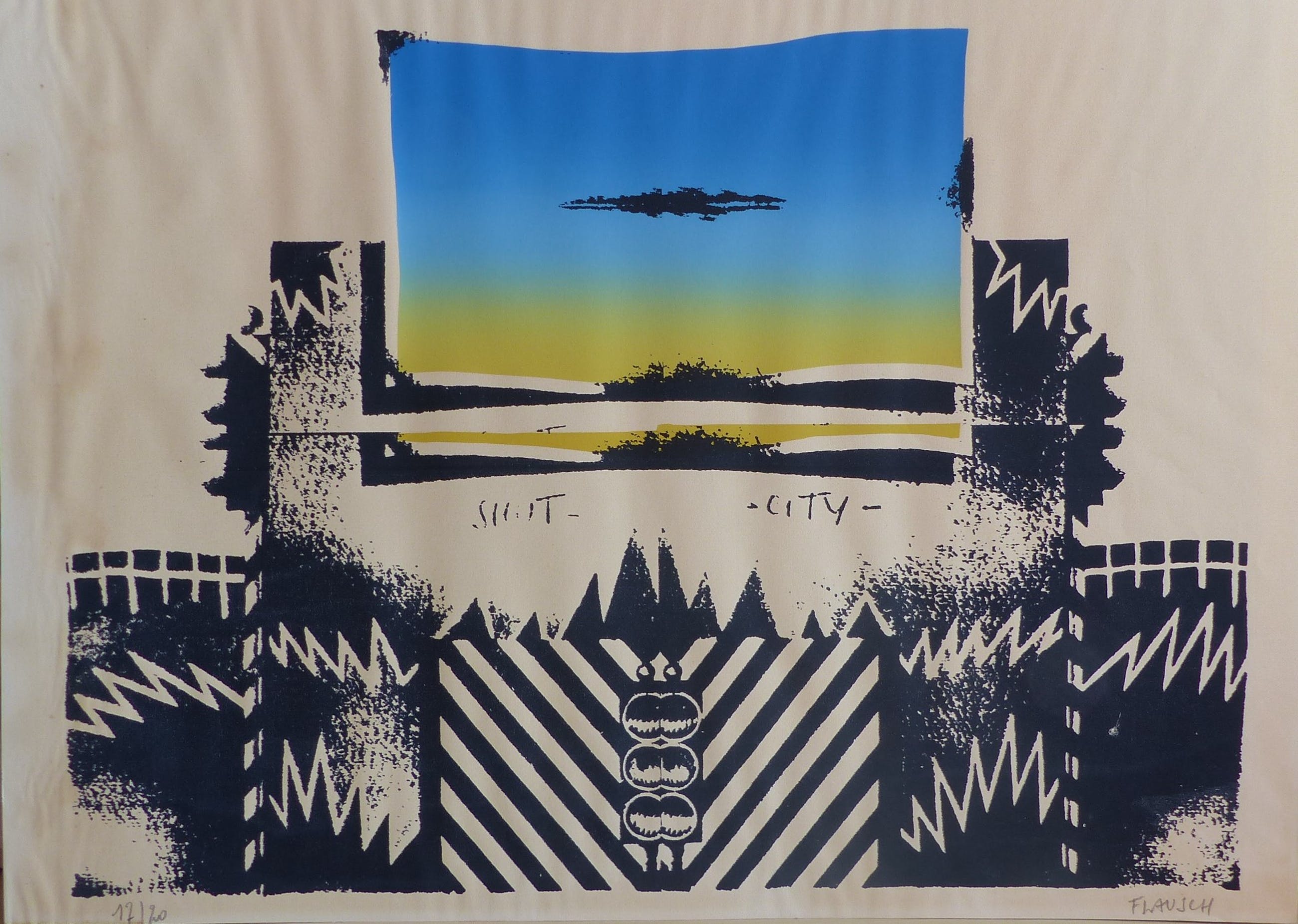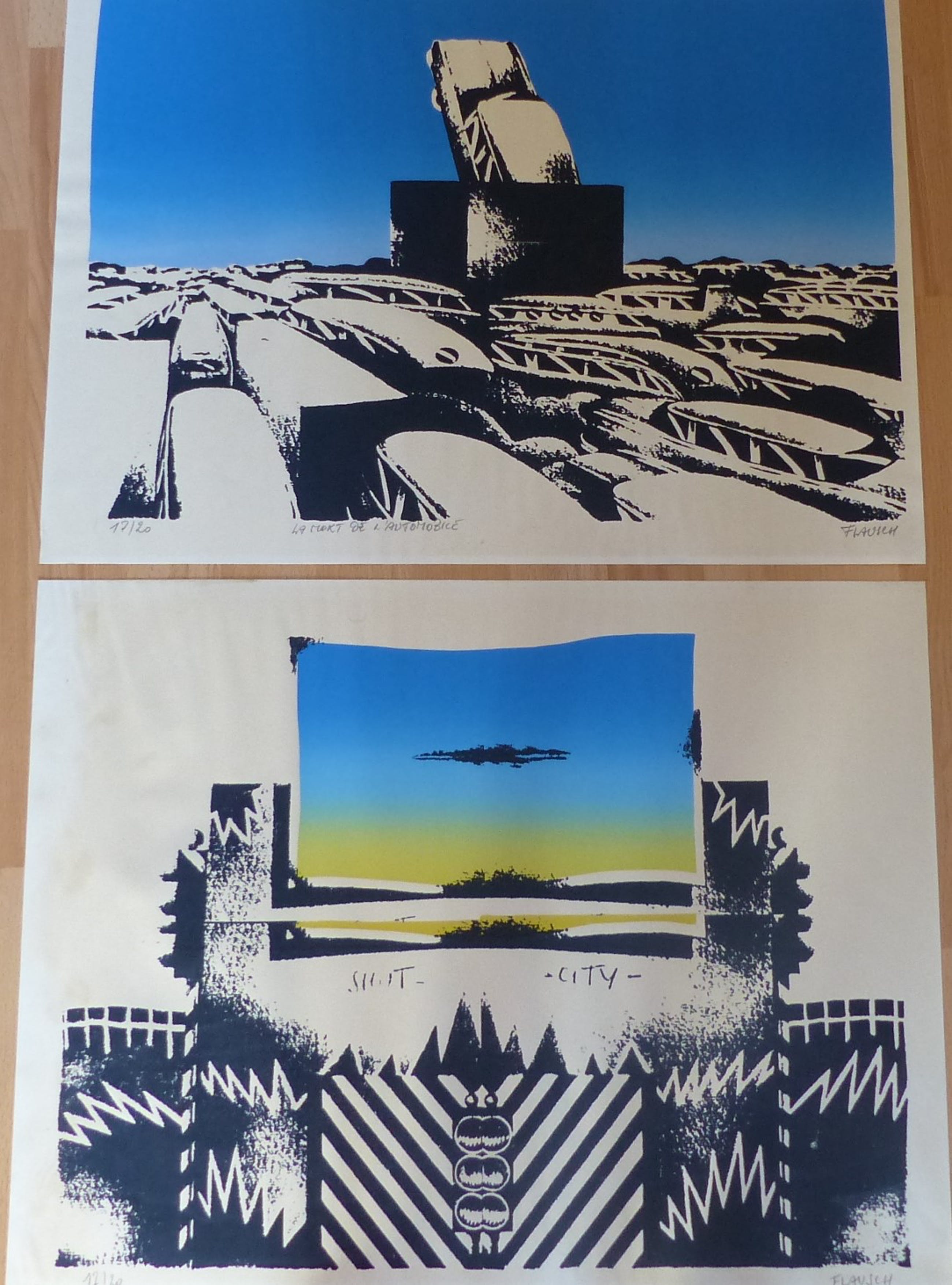 De Luikse kunstenaar Fernand Flausch (1948-2013), vanaf zijn 25ste internationaal erkend tijdens de Biënnale van Sao Paulo in 1973, en bekend van ‘La Mort de l’automobile’, een openbaar kunstwerk dat sinds 1980 te zien is langs een autoweg bij Luik. Flausch is een multidisciplinaire kunstenaar, die in eerste instantie beïnvloed werd door Pop Art, Amerikaanse comics en populaire cultuur (muziek, graffiti, streetart). Zijn oeuvre strekt zich uit van stripverhalen tot grote acrylschilderijen, van airbrush-werken tot assemblages en collages op doek, van creaties met plexiglas en neon tot tal van projecten die verband houden met zowel openbare en privé architectuur en urbanisme.