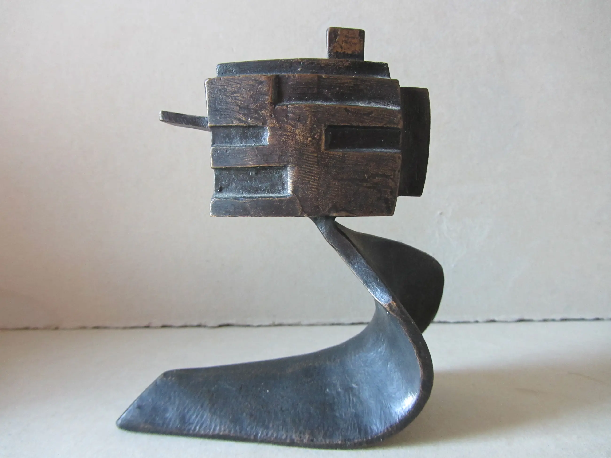 Bronzen beeld van de kunstenaar Fernand Vanderplancke. Gesigneerd: FVdP in de voet. Afmeting: hoogte 15 cm breedte 14 cm diepte 6 cm In zeer goede staat.