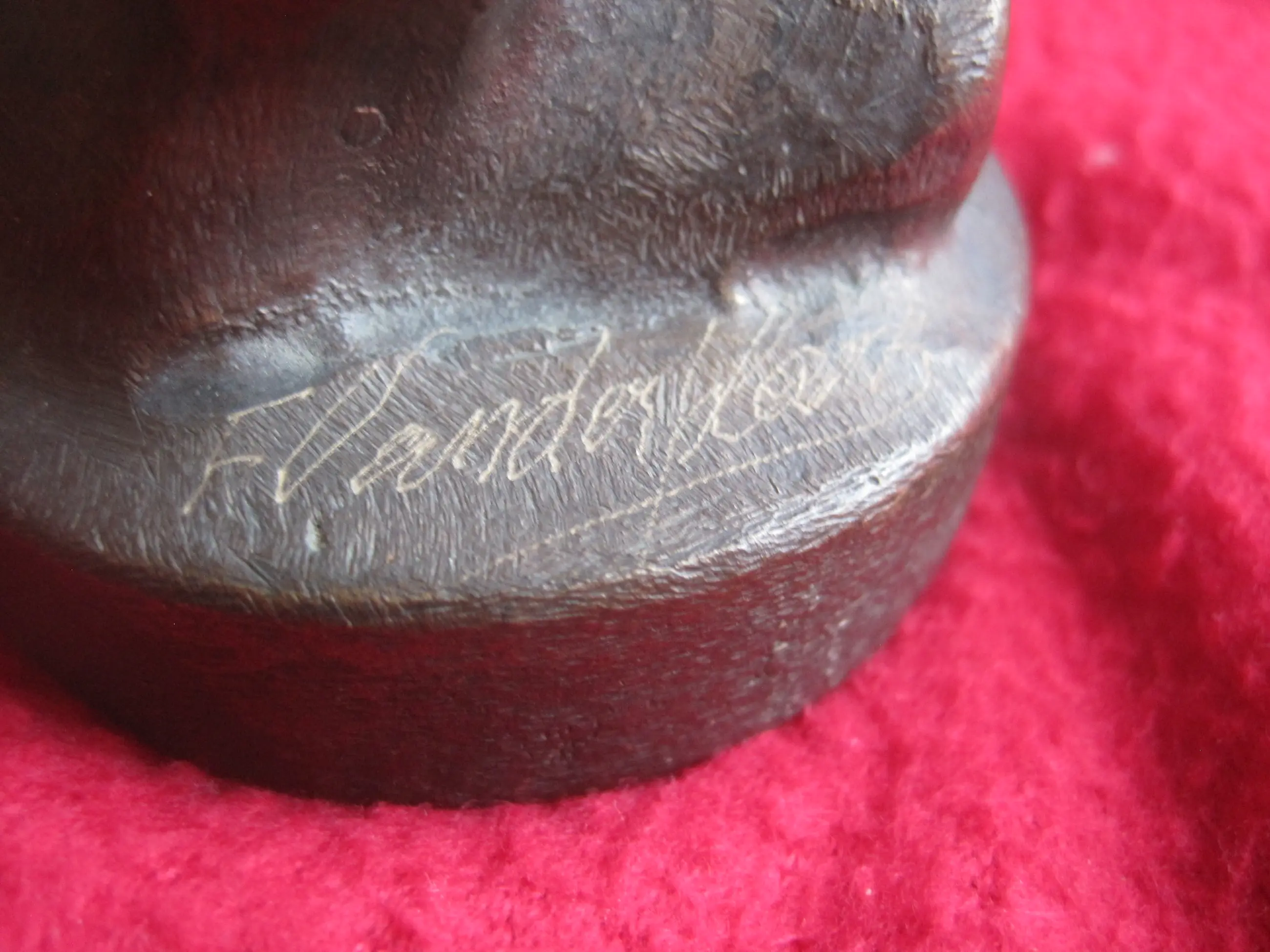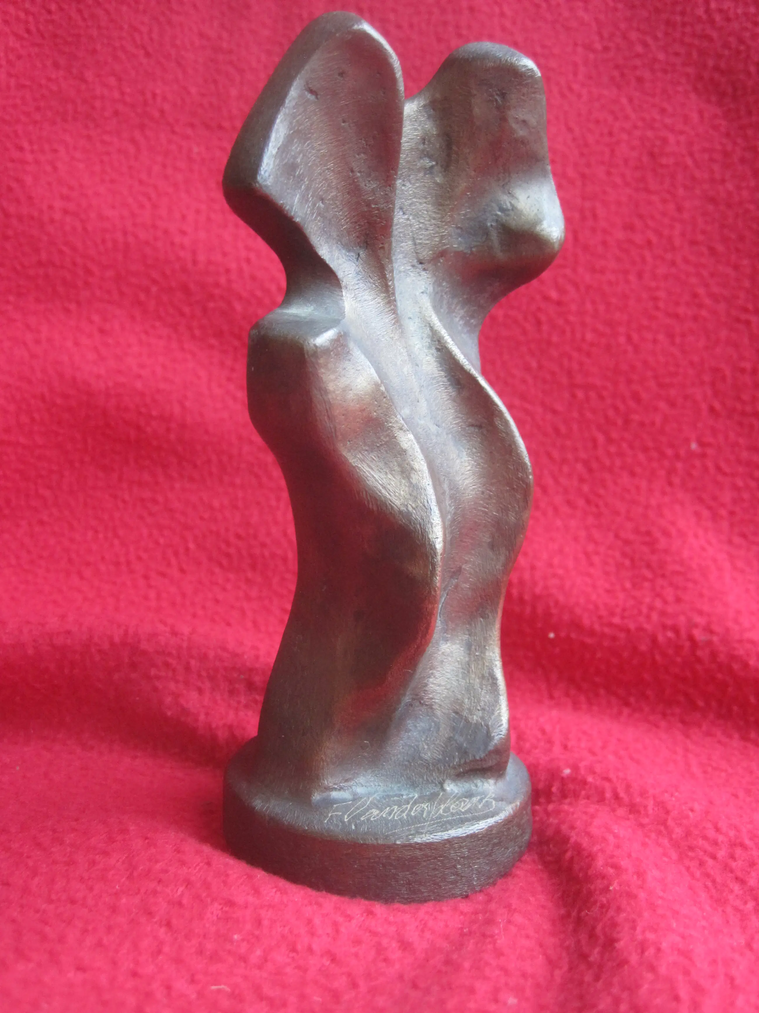 Fraai massief bronzen beeldje door de Belgische kunstenaar Fernand Vanderplancke. Het beeldje is zwaar voor het formaat en verkeert in een prima staat. Het is met de hand gesigneerd op de voet.