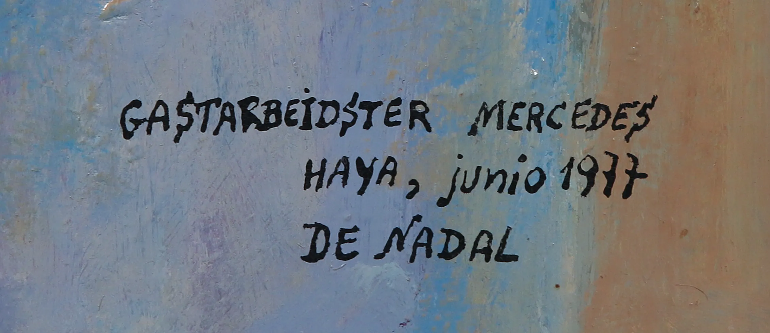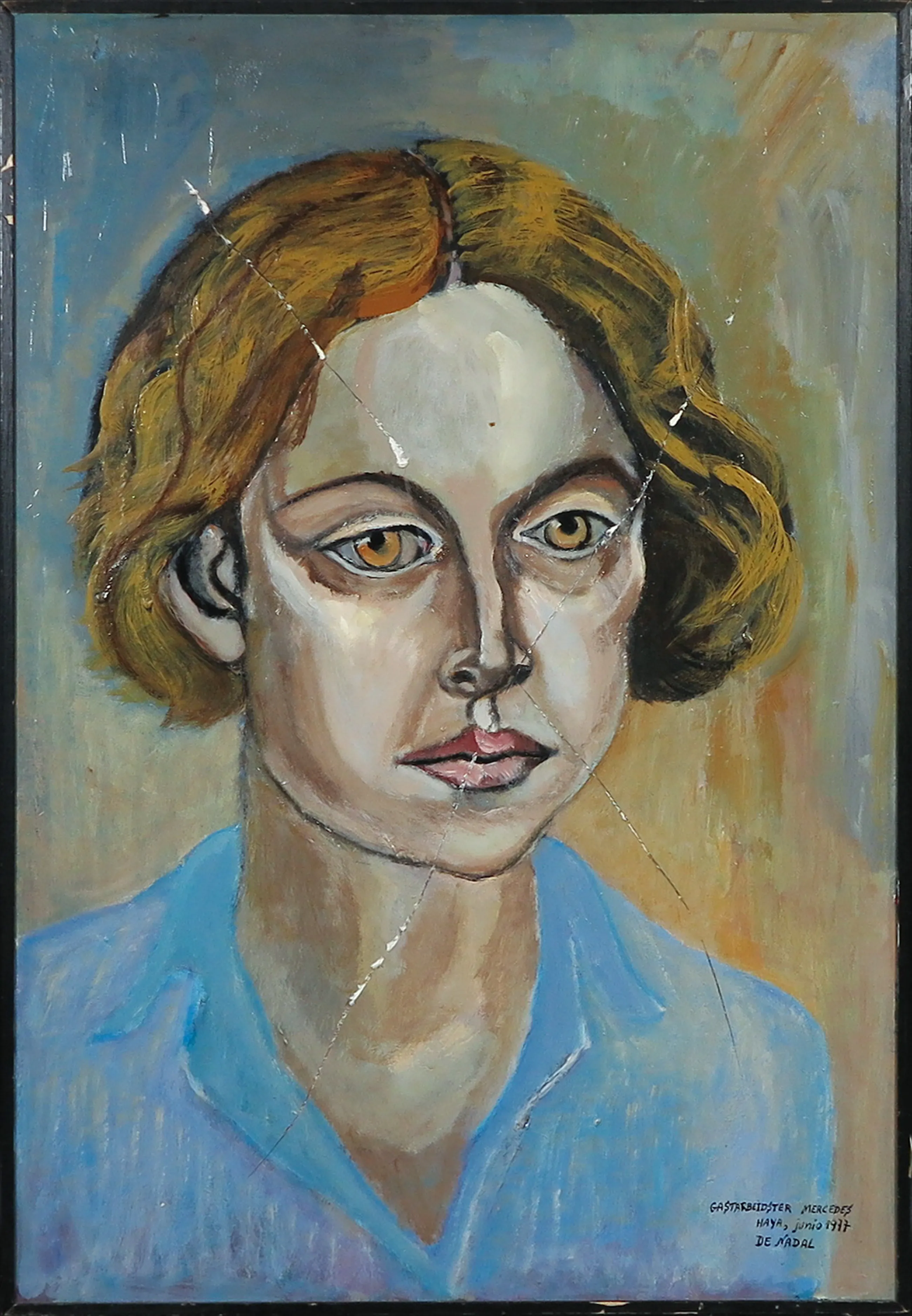 | Werk erg beschadigd door scheur in de vorm van een kruis. | |