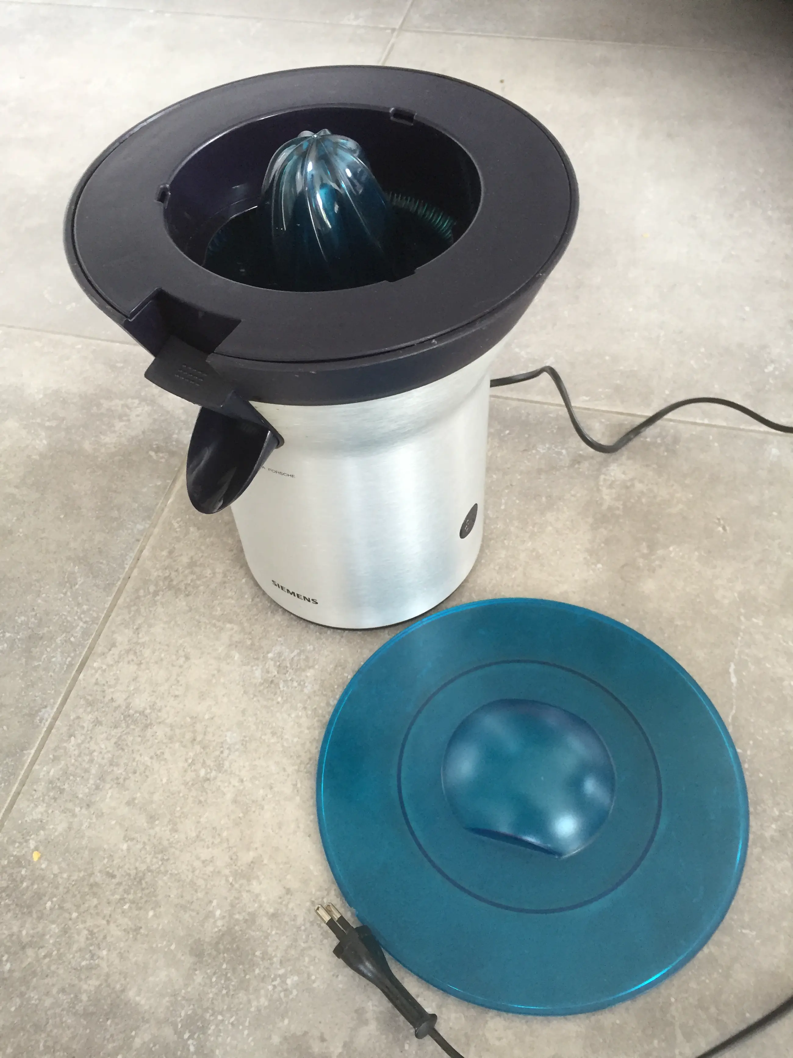 Siemens MC 91100/02 mat metalen citruspers met extra centrifugeknop Zeer functioneel maar daarnaast mooi strak design van F. A. Porsche