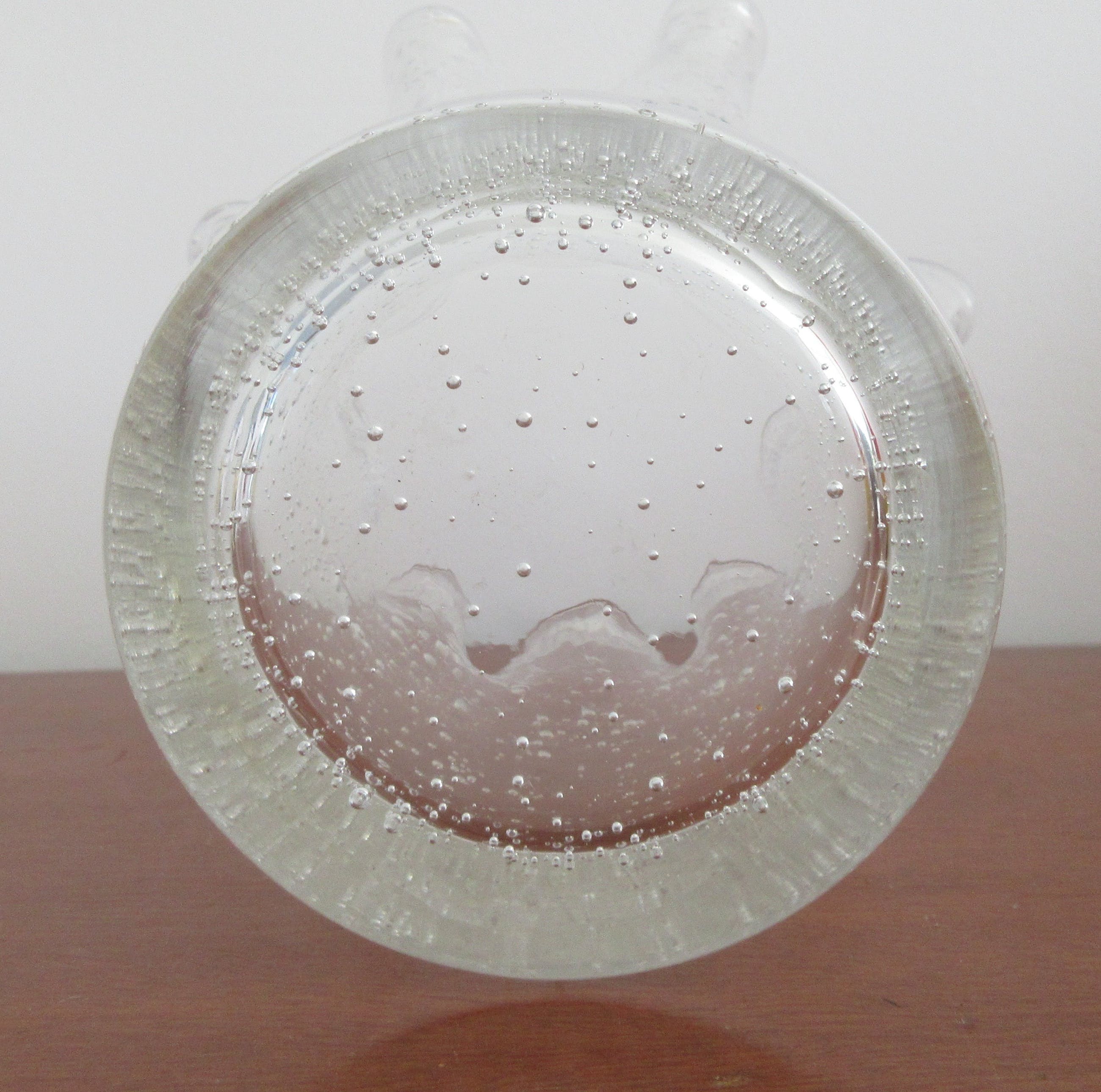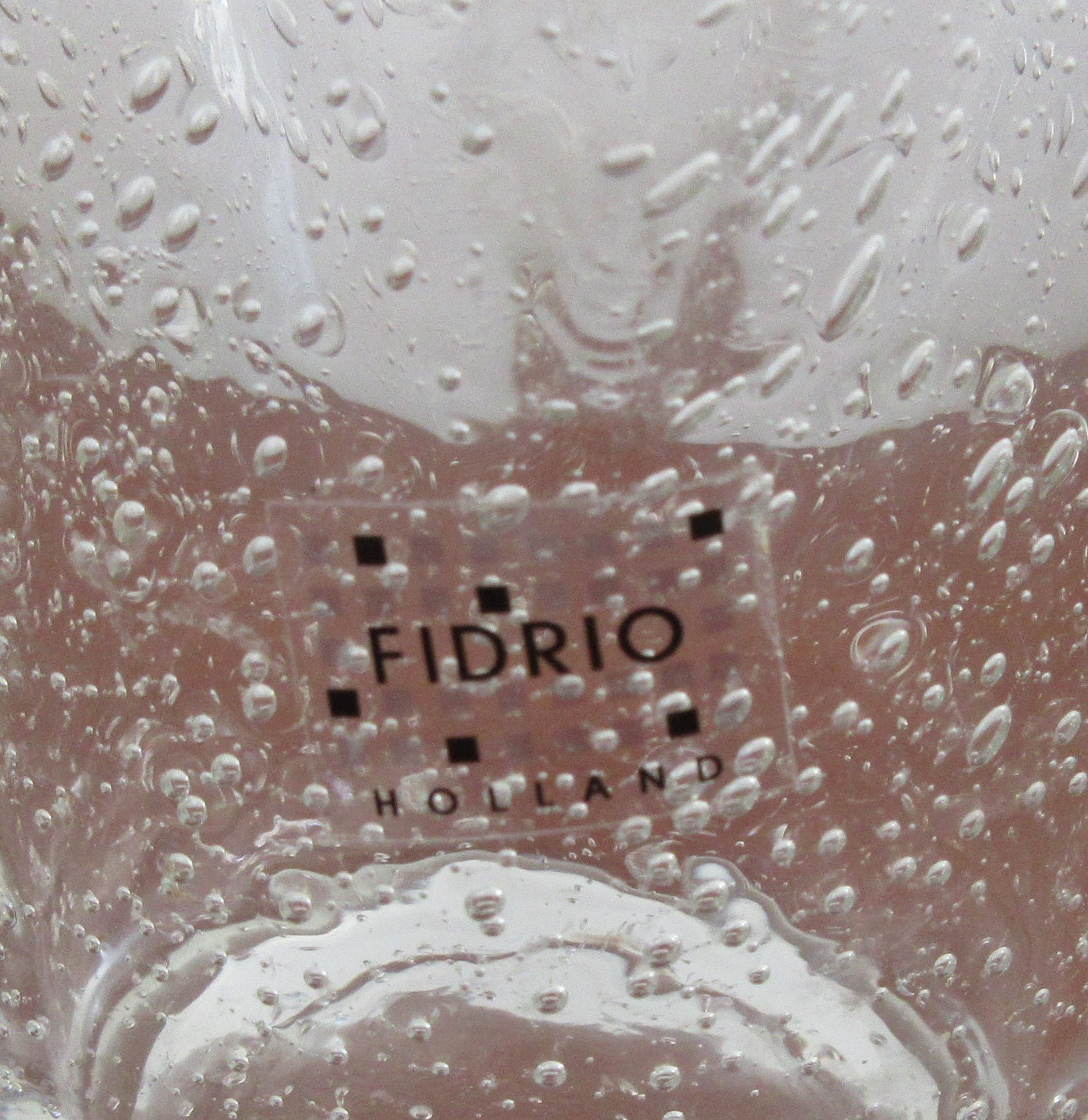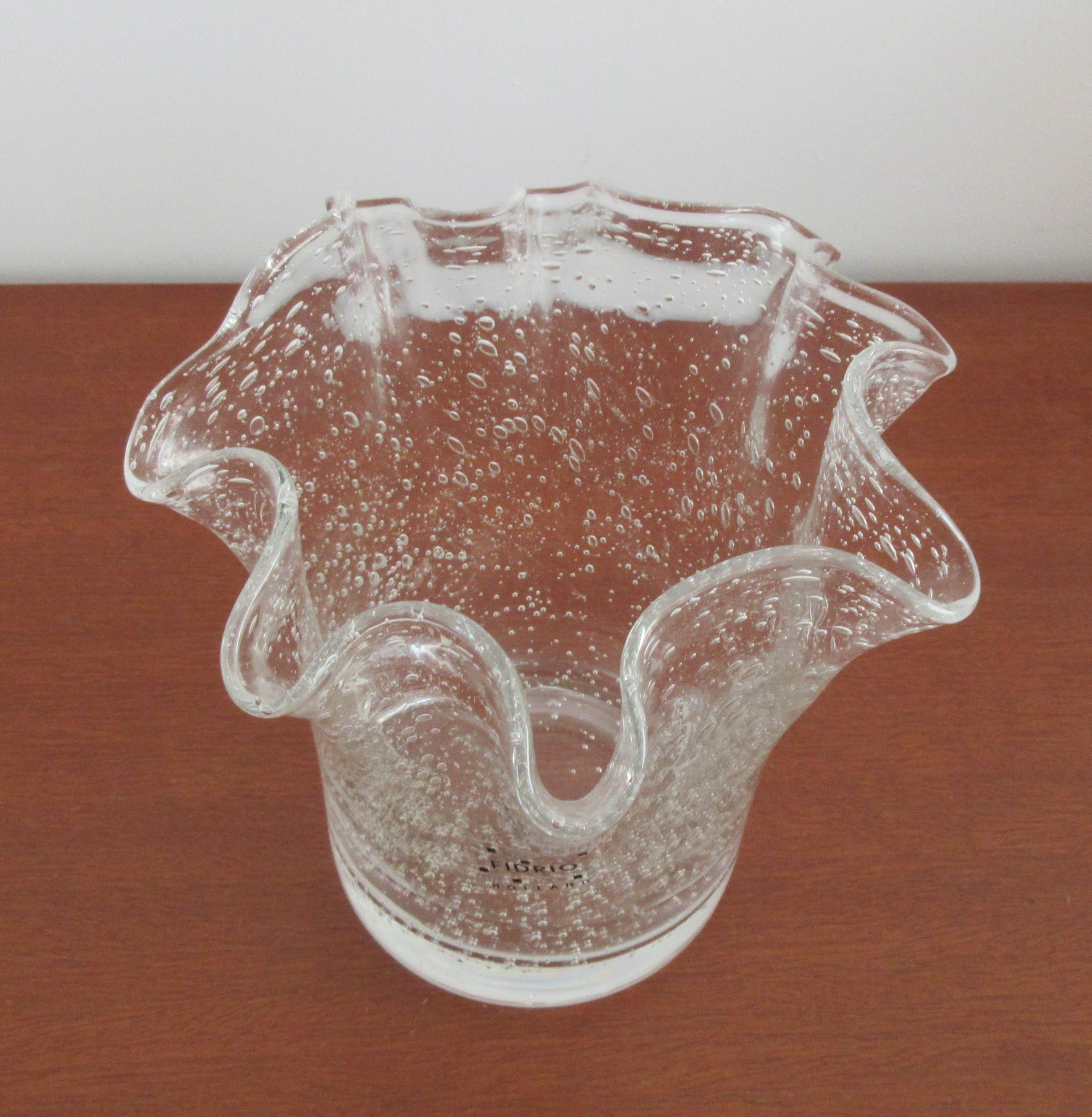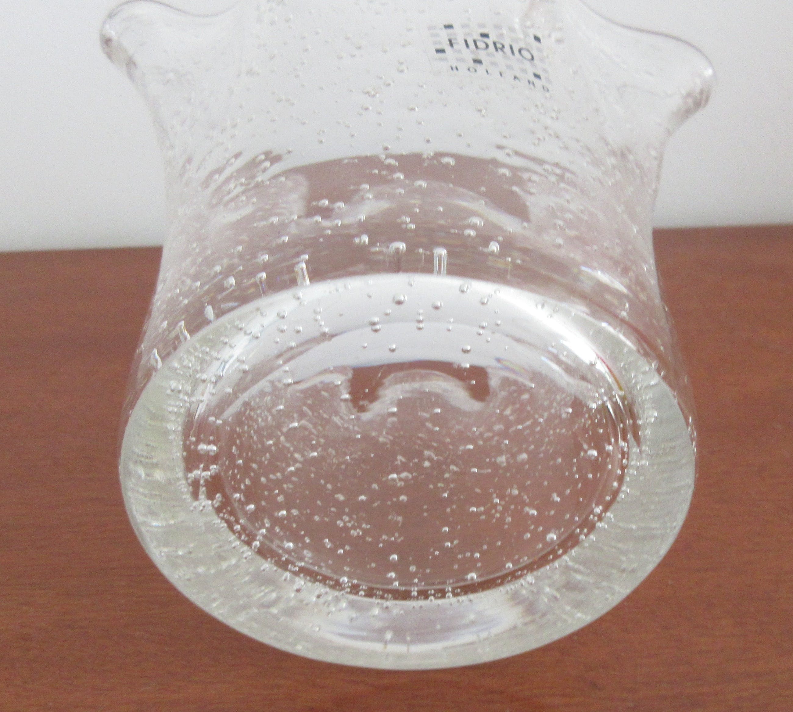 Blank glazen zakdoek vaasje met bubbels van Fidrio. in prima onbeschadigde conditie en gemerkt met een sticker.