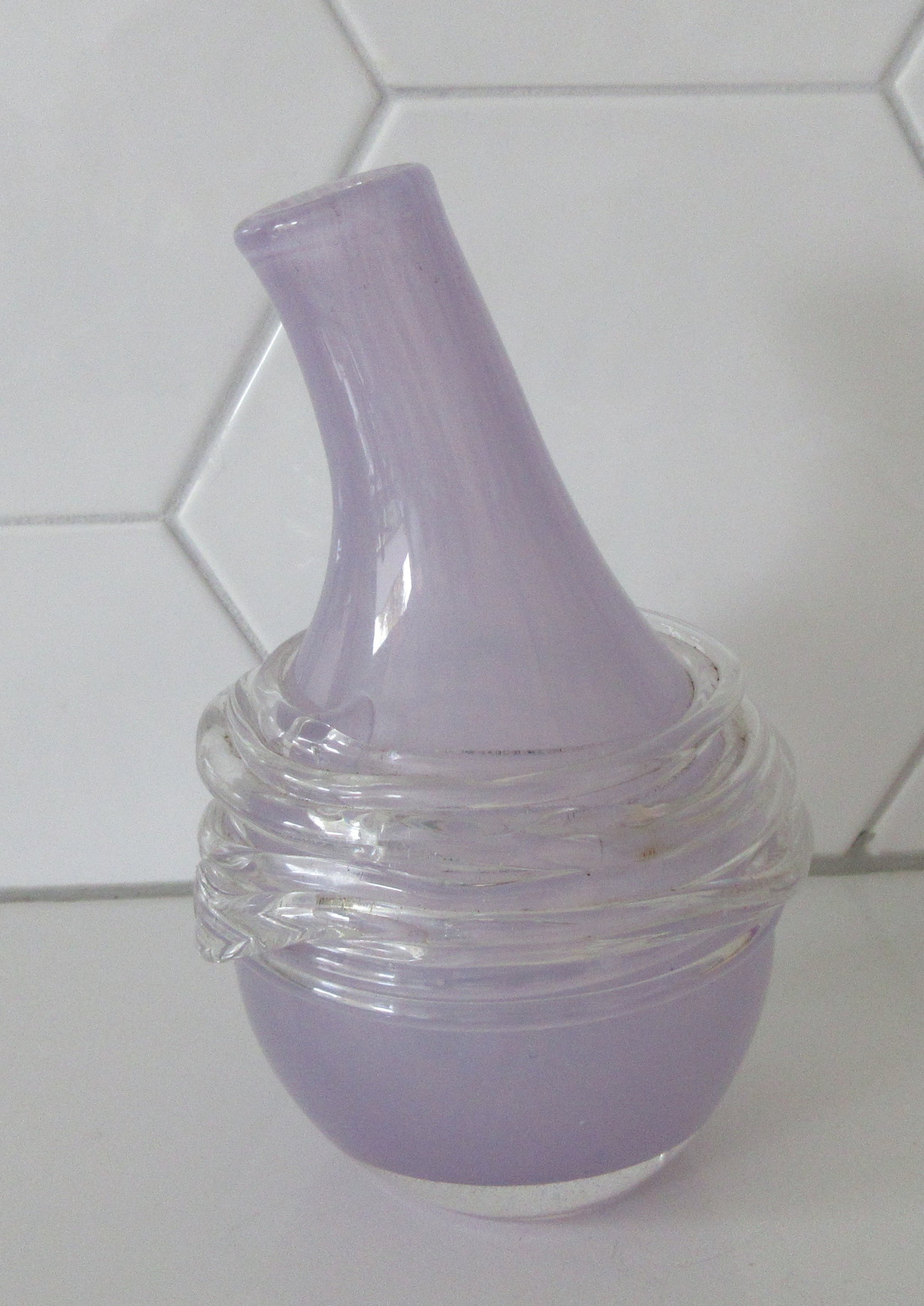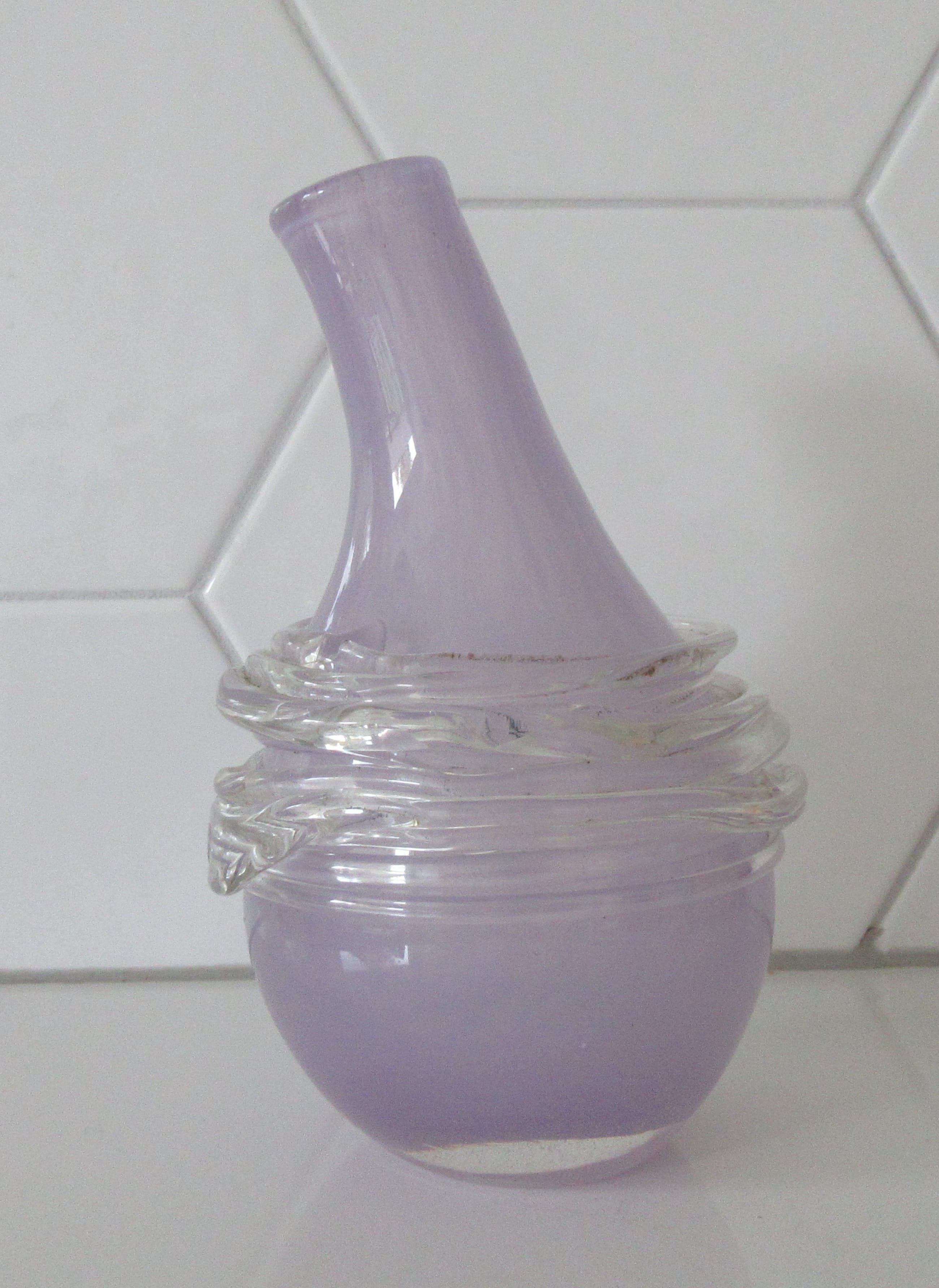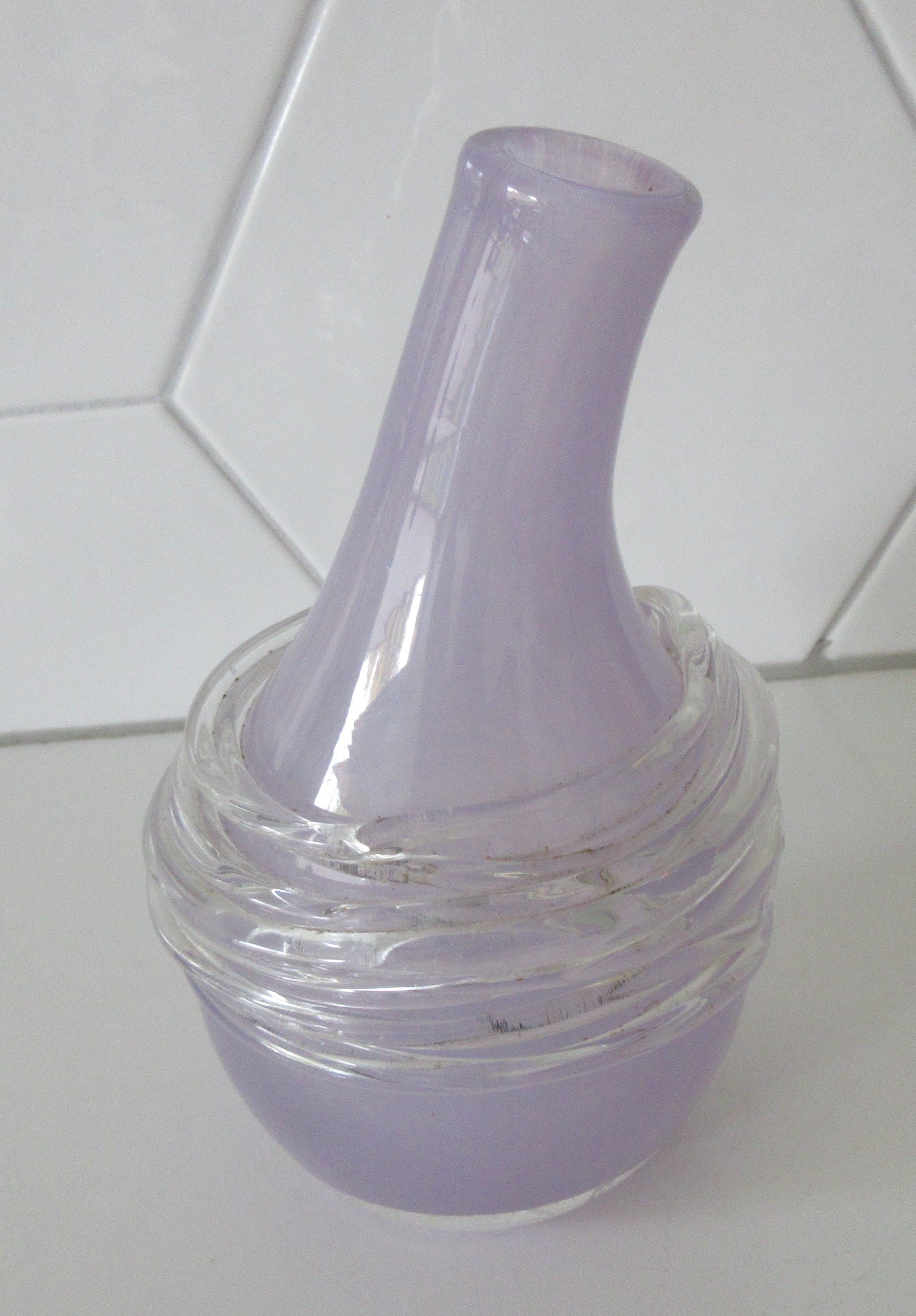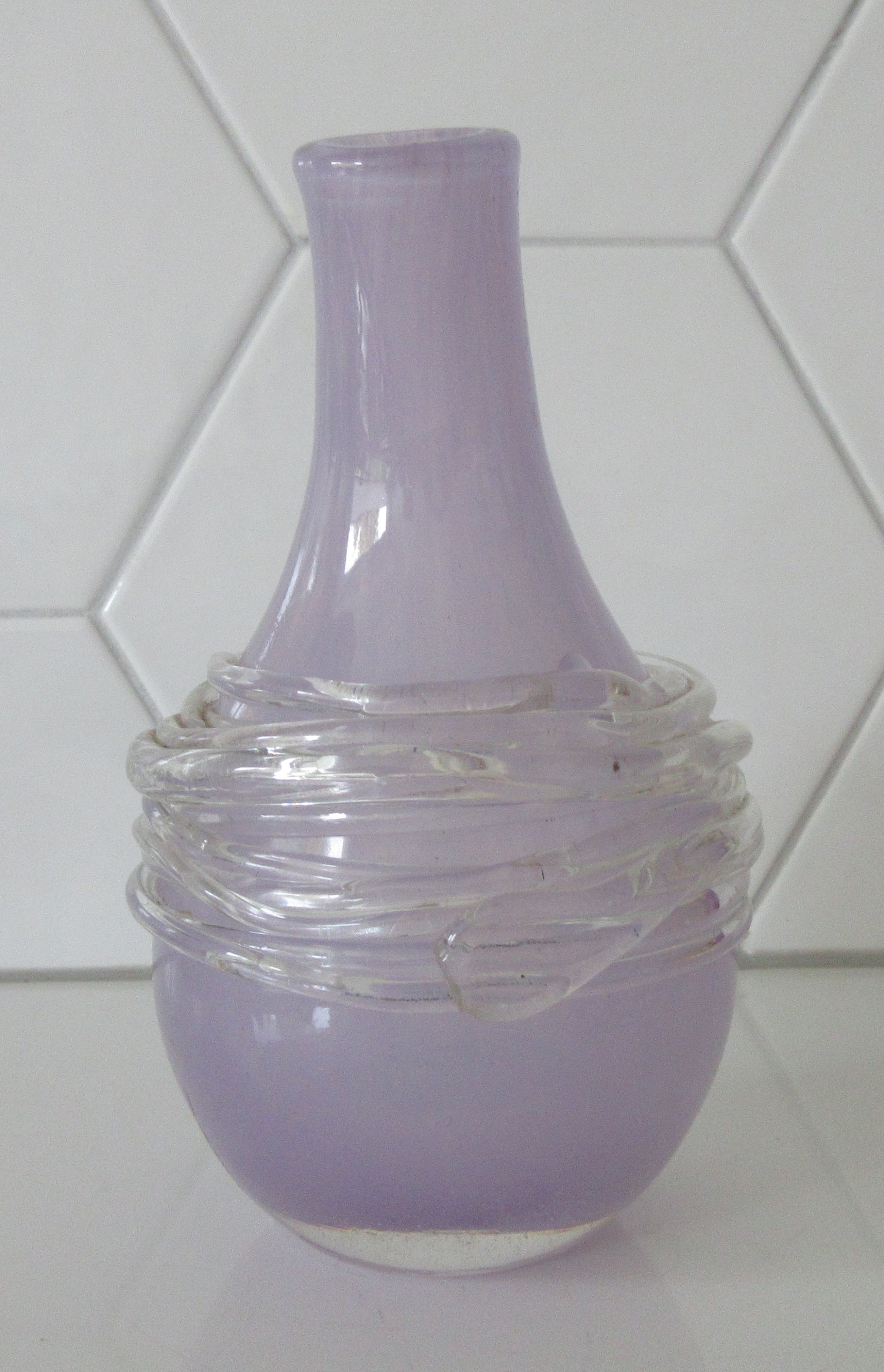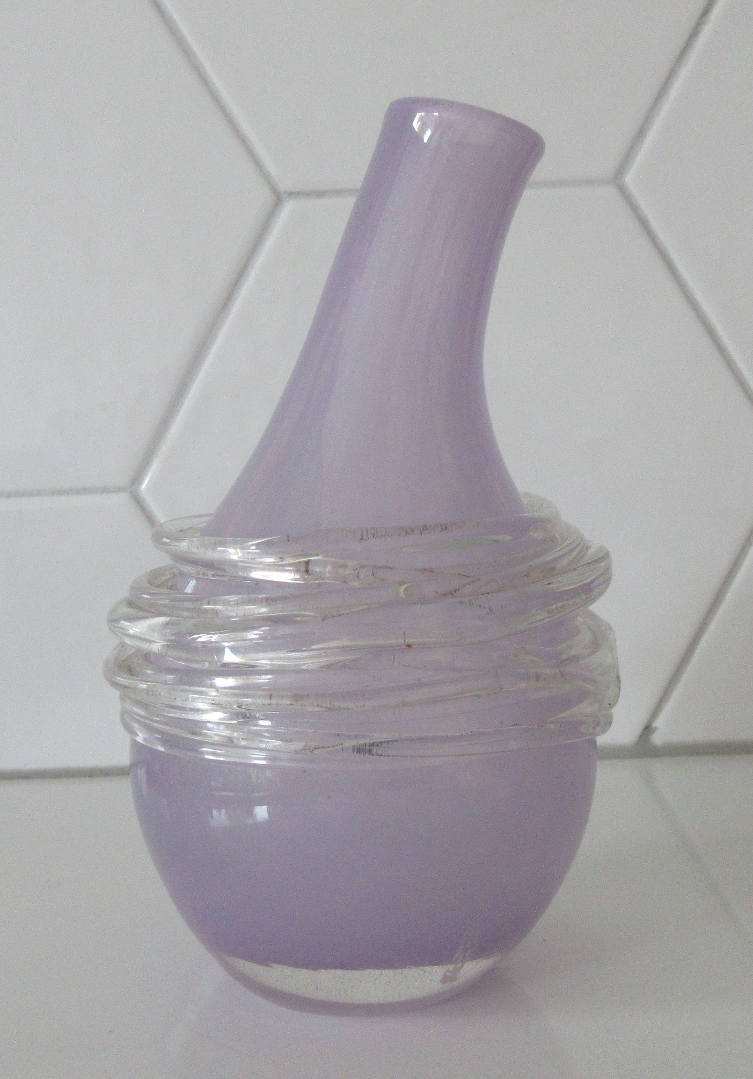 Lila hand geblazen dik glazen draadvaasje van Fidrio. Niet gemerkt met een sticker. In prima onbeschadigde conditie.