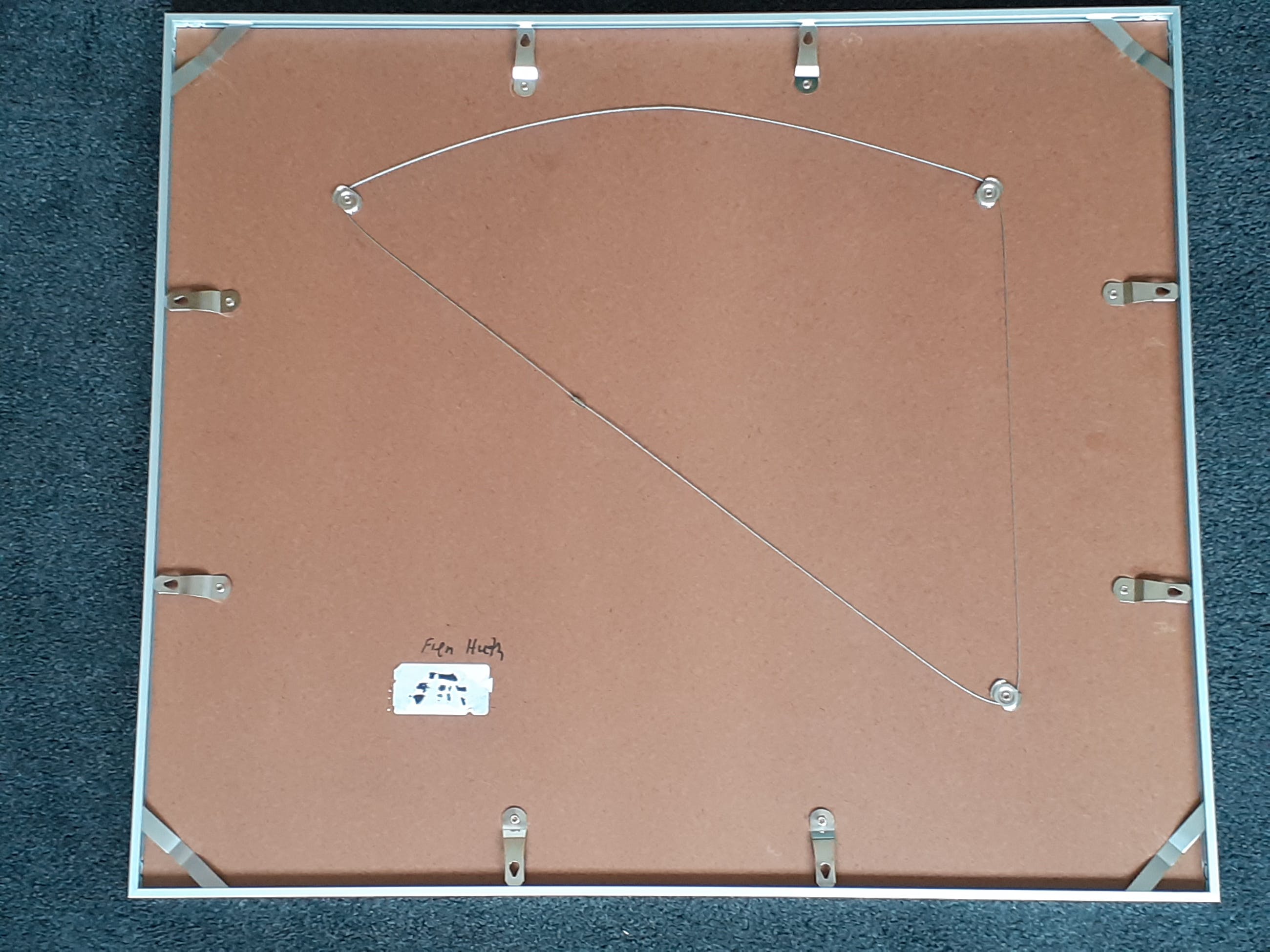 Voorzien van een passe-partout en ingelijst in een aluminium lijst.