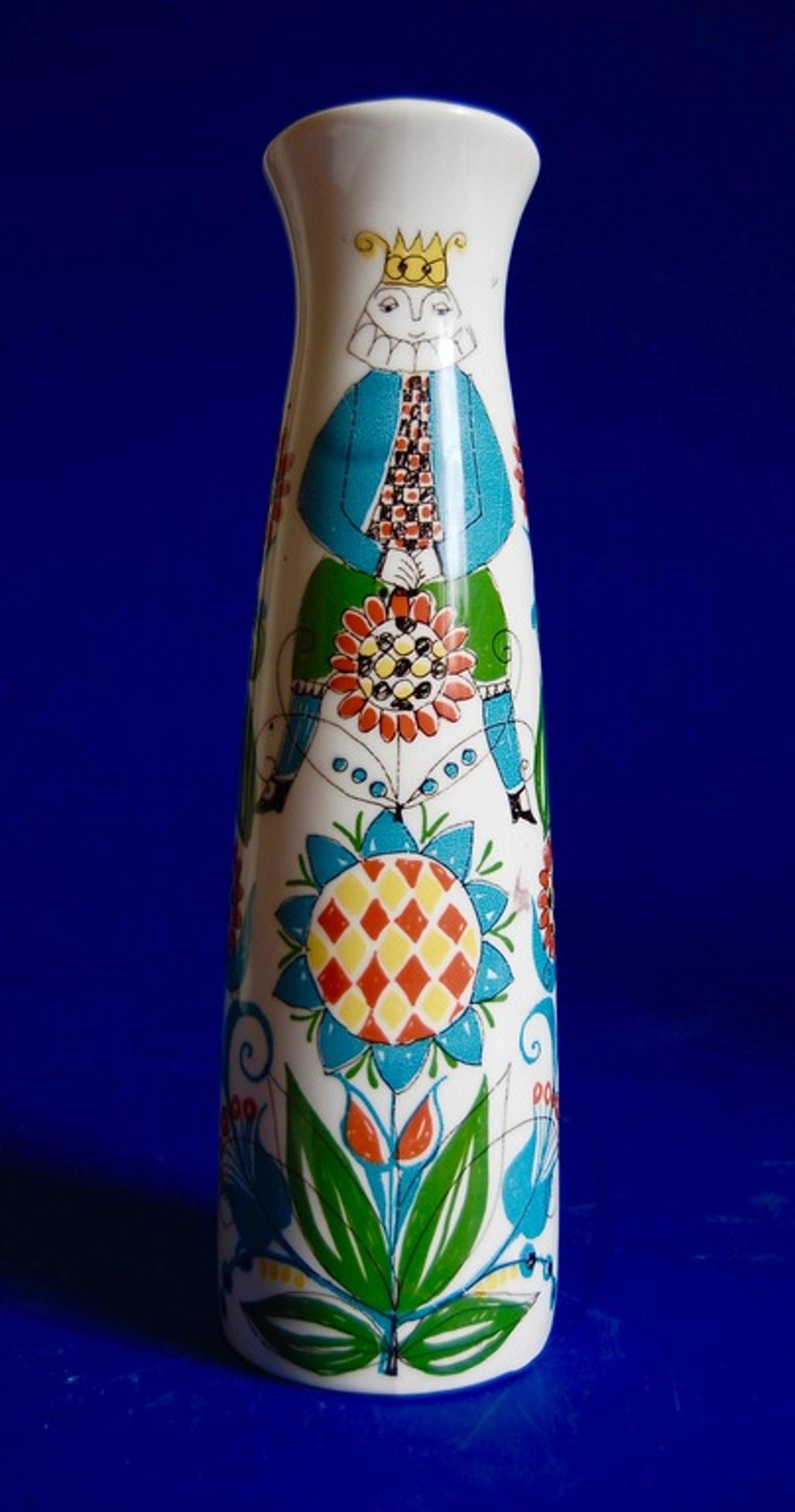 Twee zeer decoratieve Figgjo Flint Saga Design objecten met polychroom floraal decor - 1950's