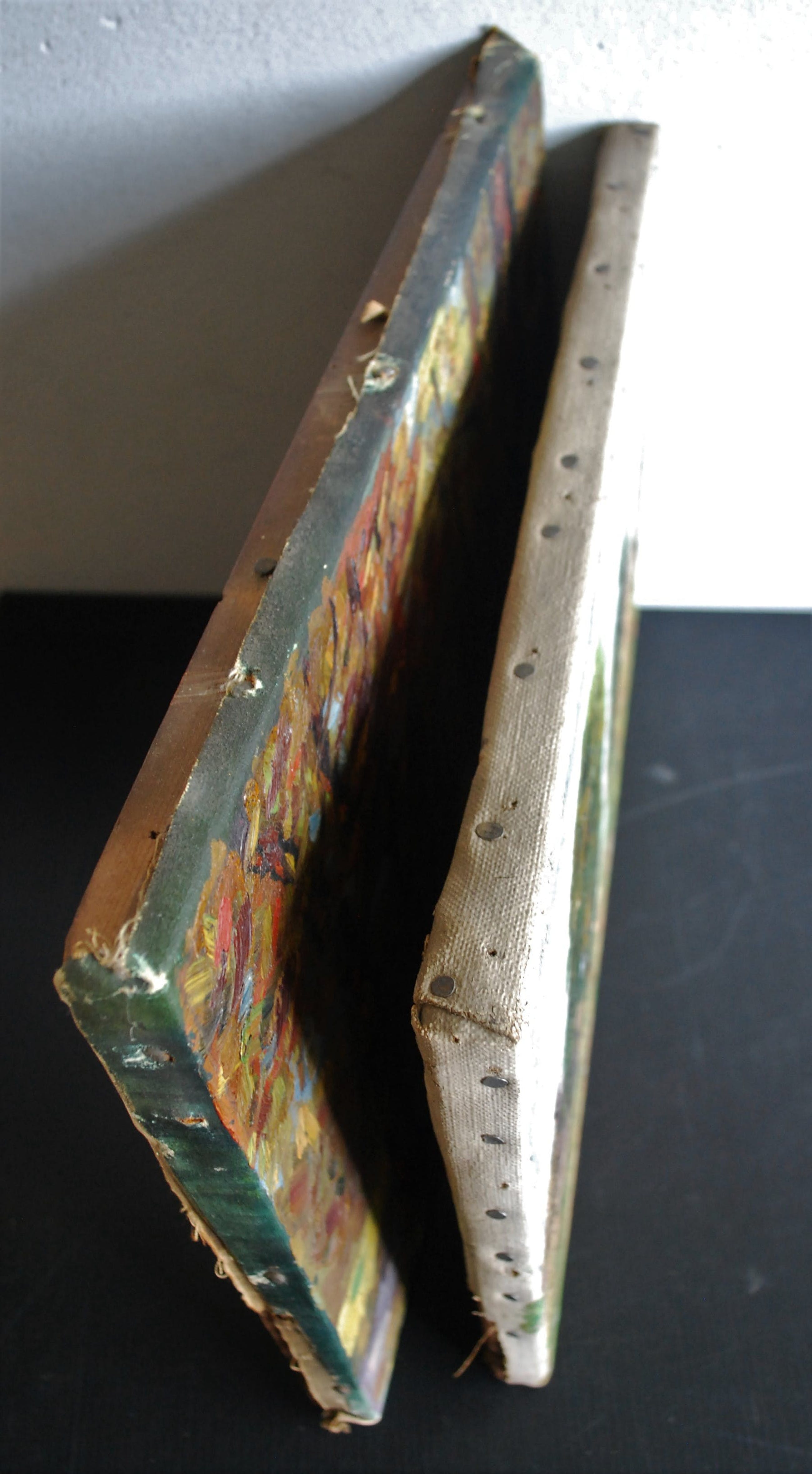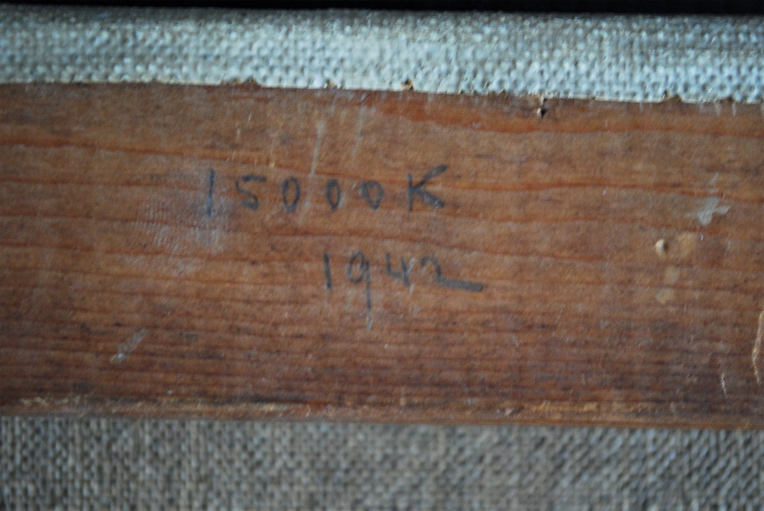 1. Boerderijen aan een weggetje. Olieverf op doek, 1942. Gesigneerd r.o. Zonder lijst. 2. Pasteus geschilderde bomenlaan, 30x42 cm, olieverf op doek. Aangezien dit werk niet gesigneerd is kan ik geen volledige garantie geven. Er zijn wat barstjes en chipjes, omslag is beschadigd. Verder in redelijk goede staat. Zonder lijst.