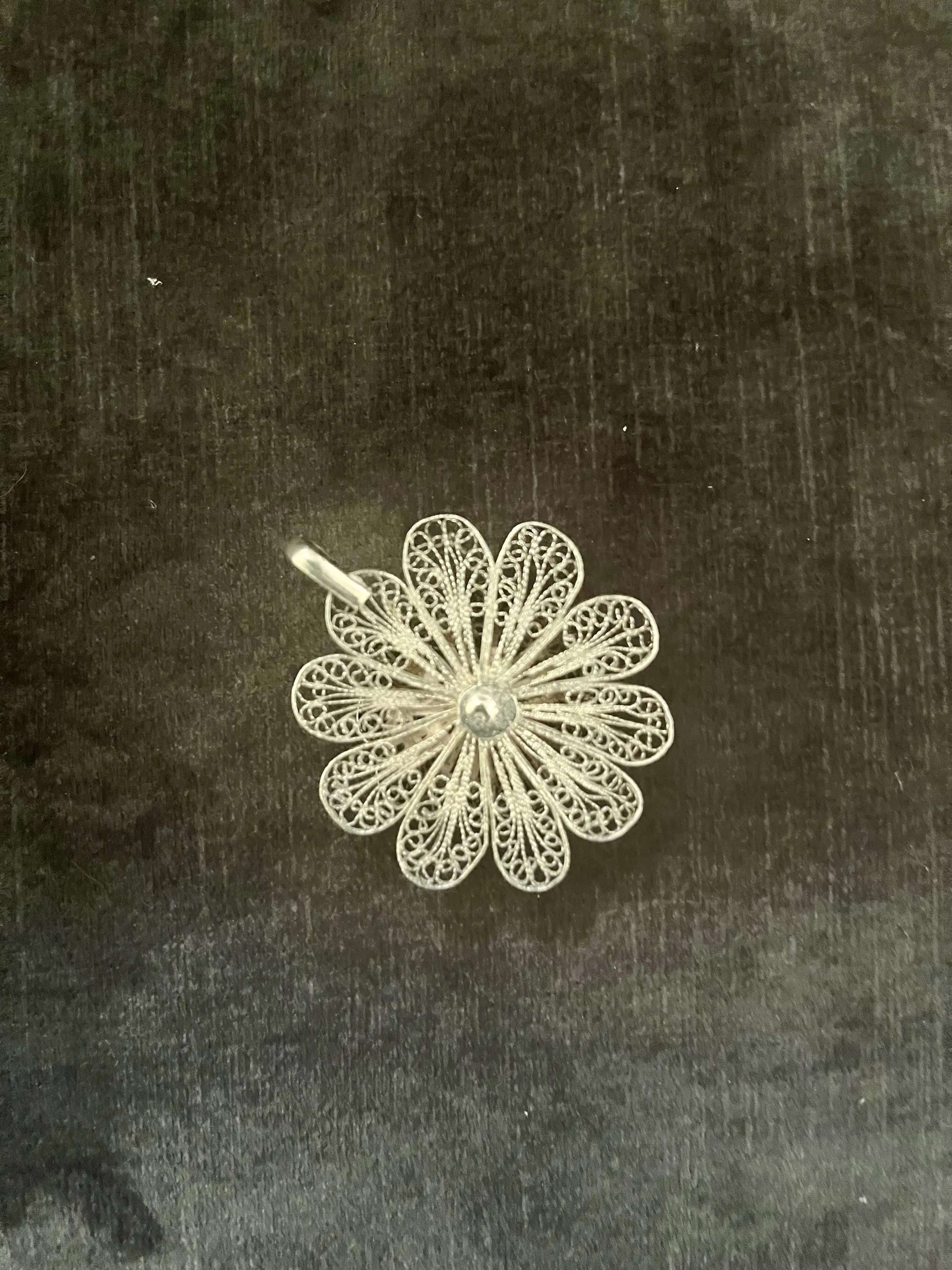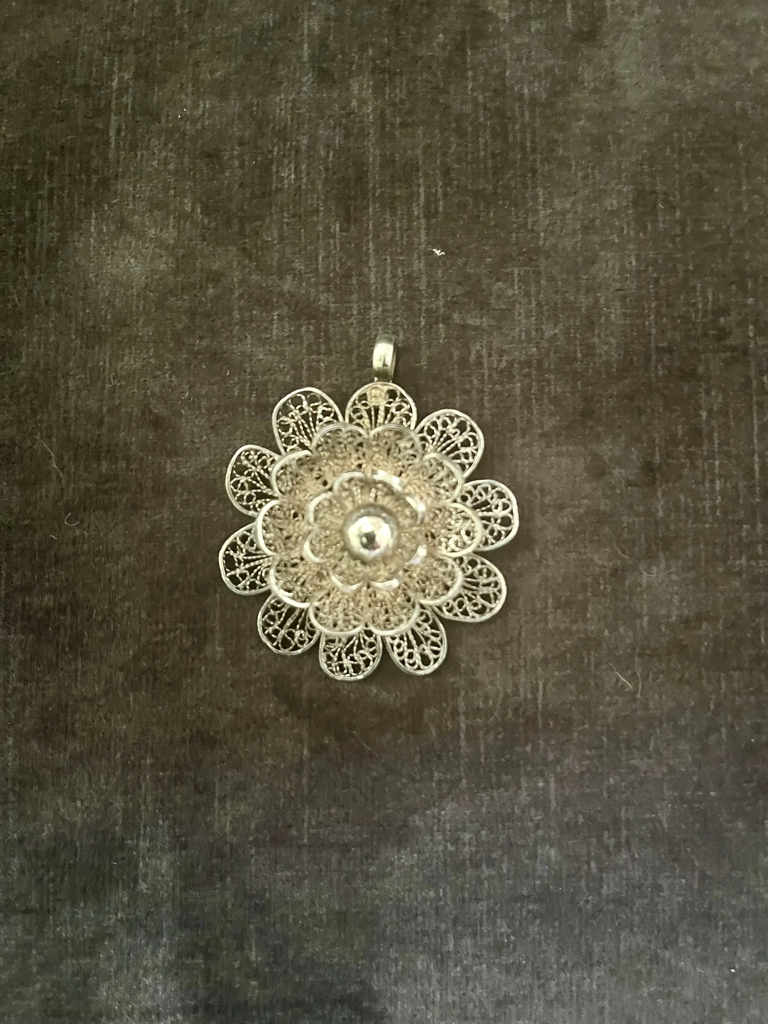 Zilveren antieke hanger van filigrein. Bloemvorm. Familiestuk