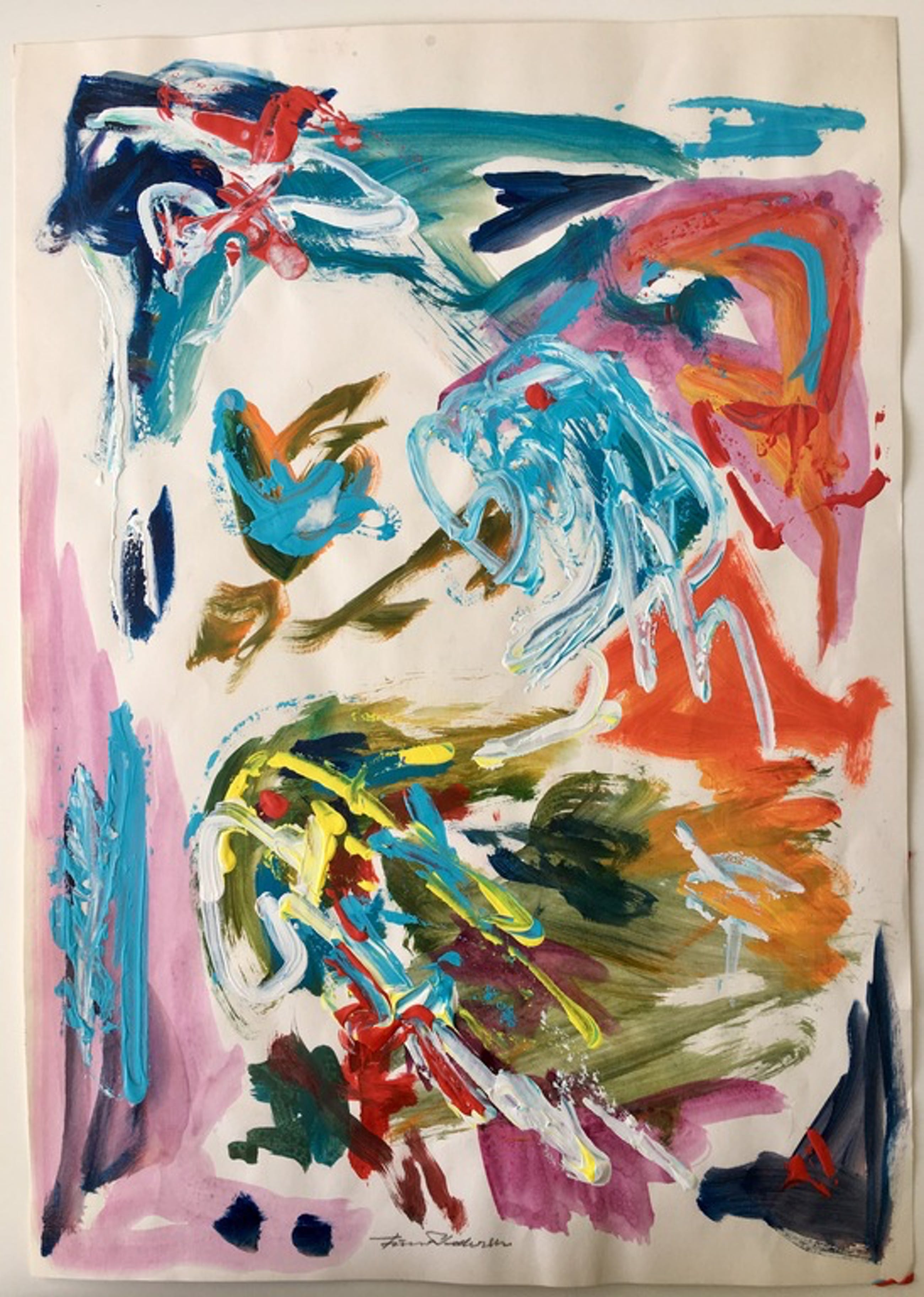 Origineel werk van de Deense kunstenaar Finn Pedersen oliefverf op papier. Gesigneerd in het werk
