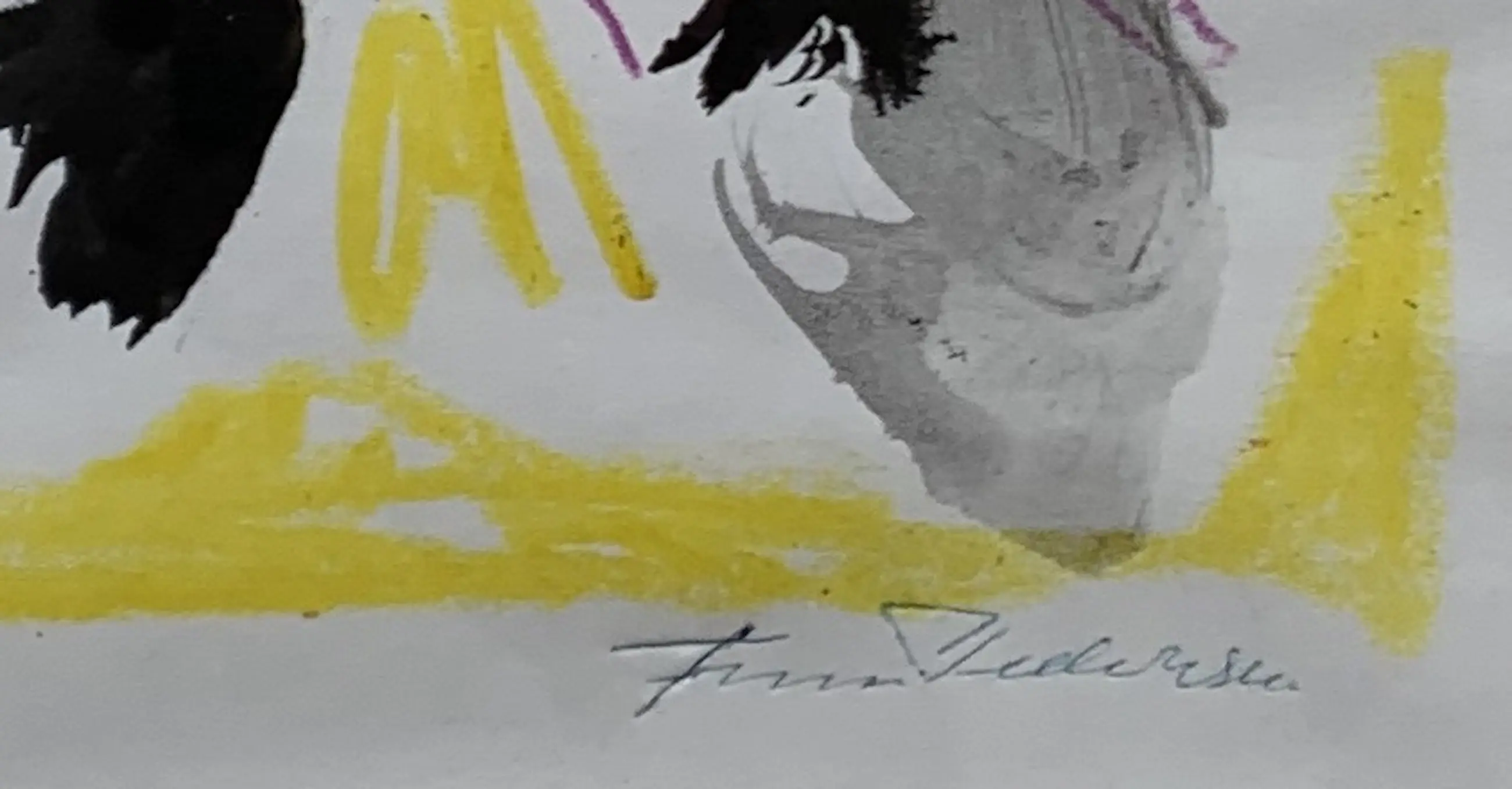 Mooi kleurrijk werk op papier van de hand van Finn Pedersen.