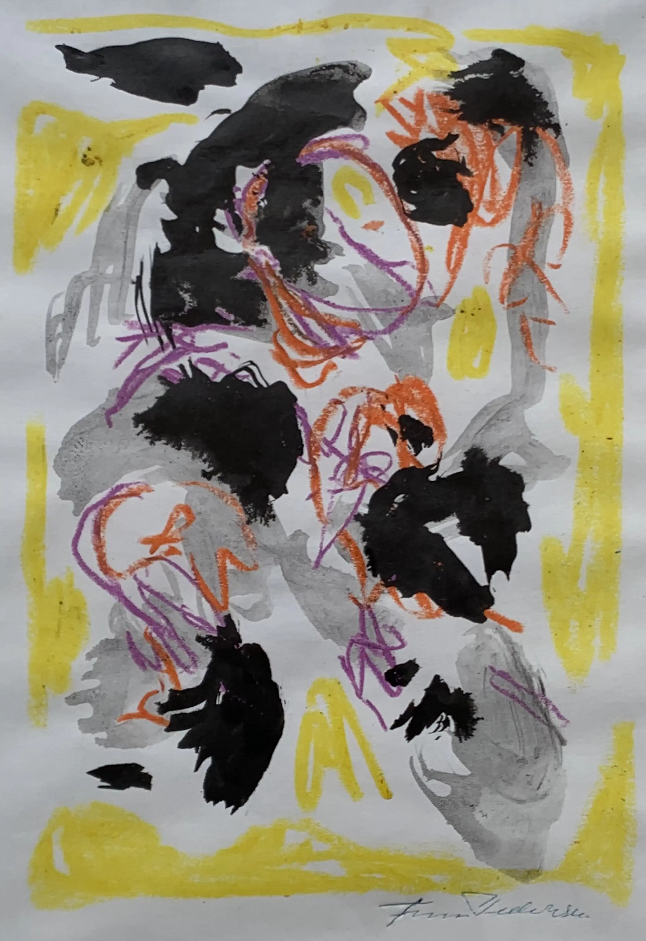 Finn Pedersen - Gemengde techniek op papier | 'Zonder titel' (UNIEK WERK)