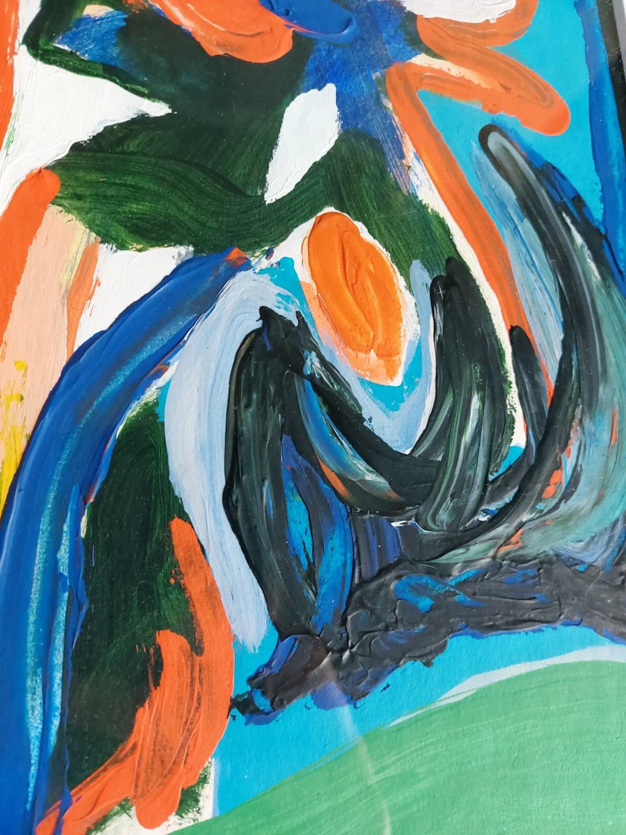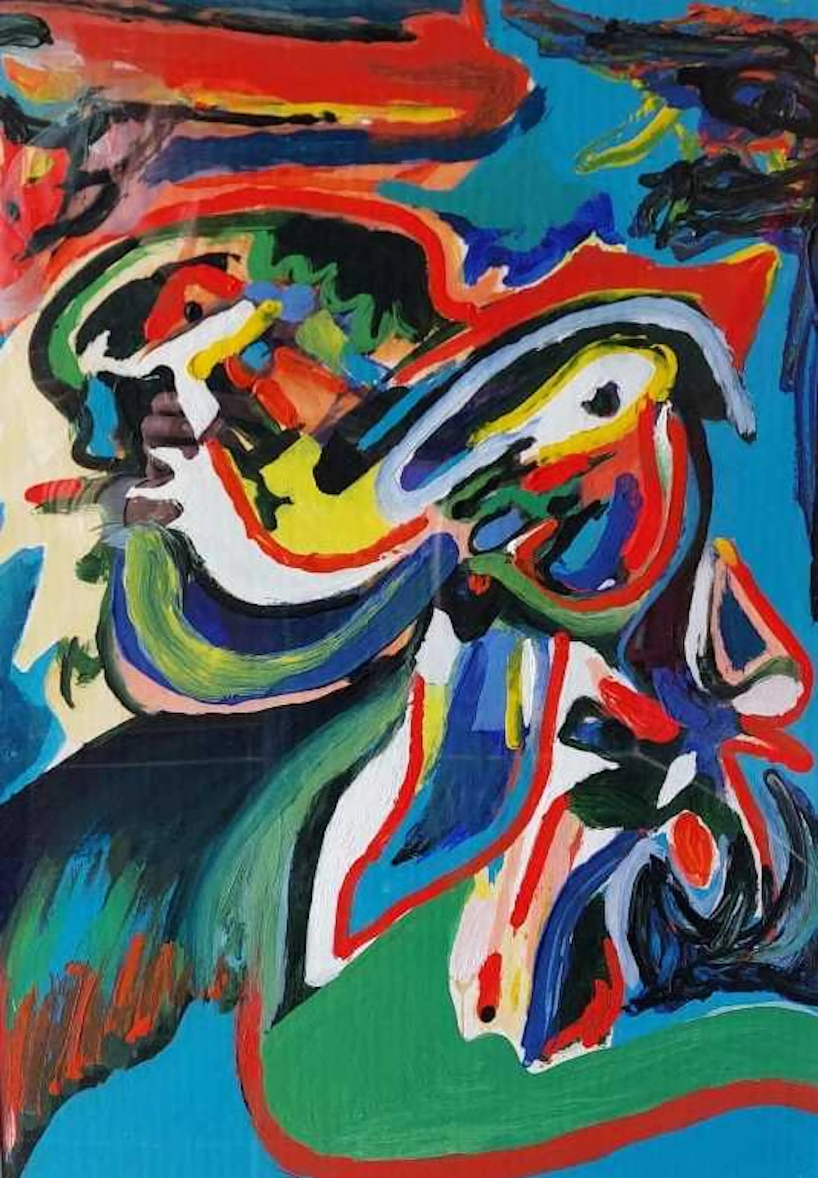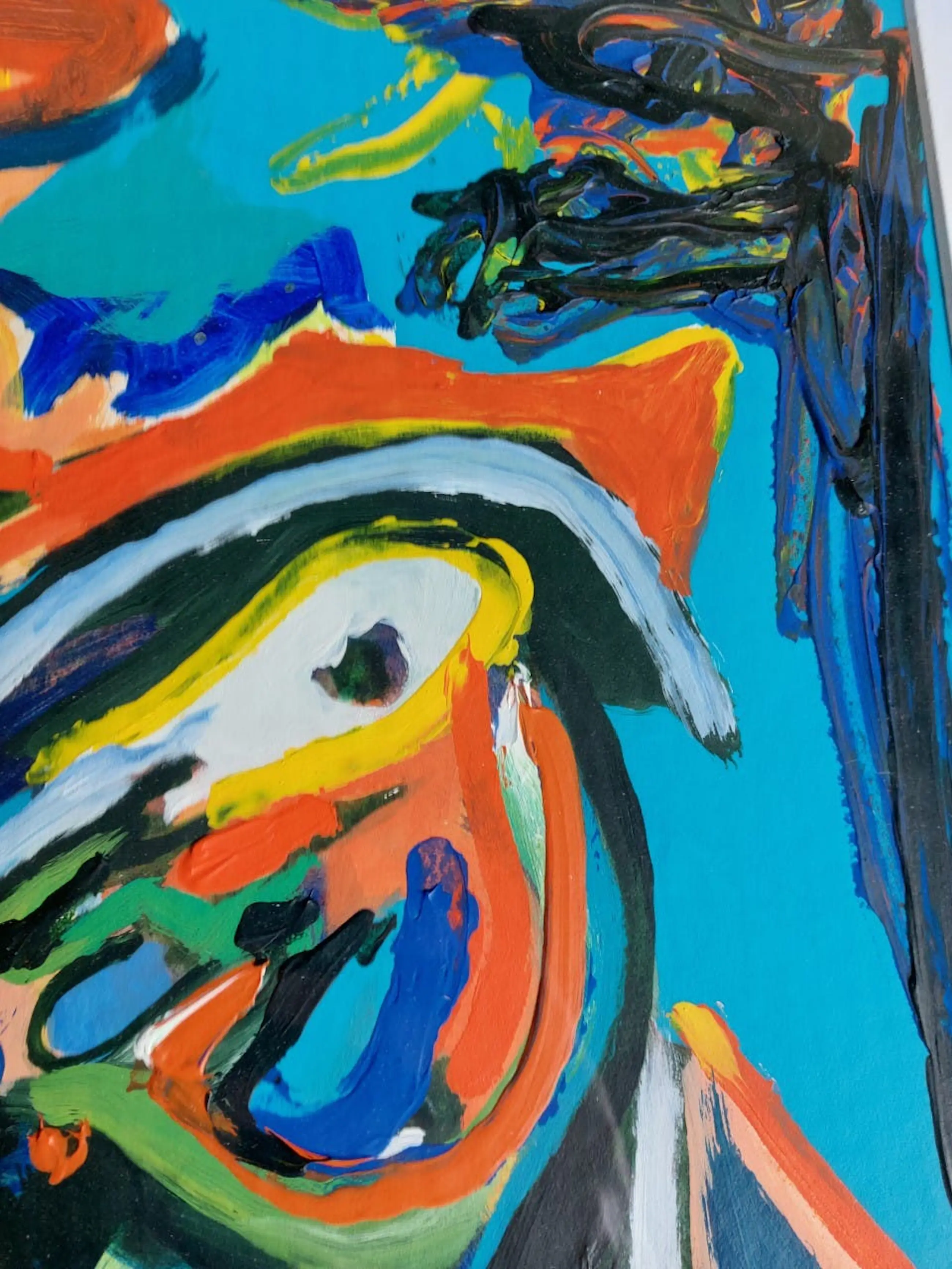 Origineel schilderij van de Deense neo CoBrA kunstenaar Finn Pedersen (1944-2014) Techniek: olie op papier Groot formaat Verf is in dikke lagen aangebracht