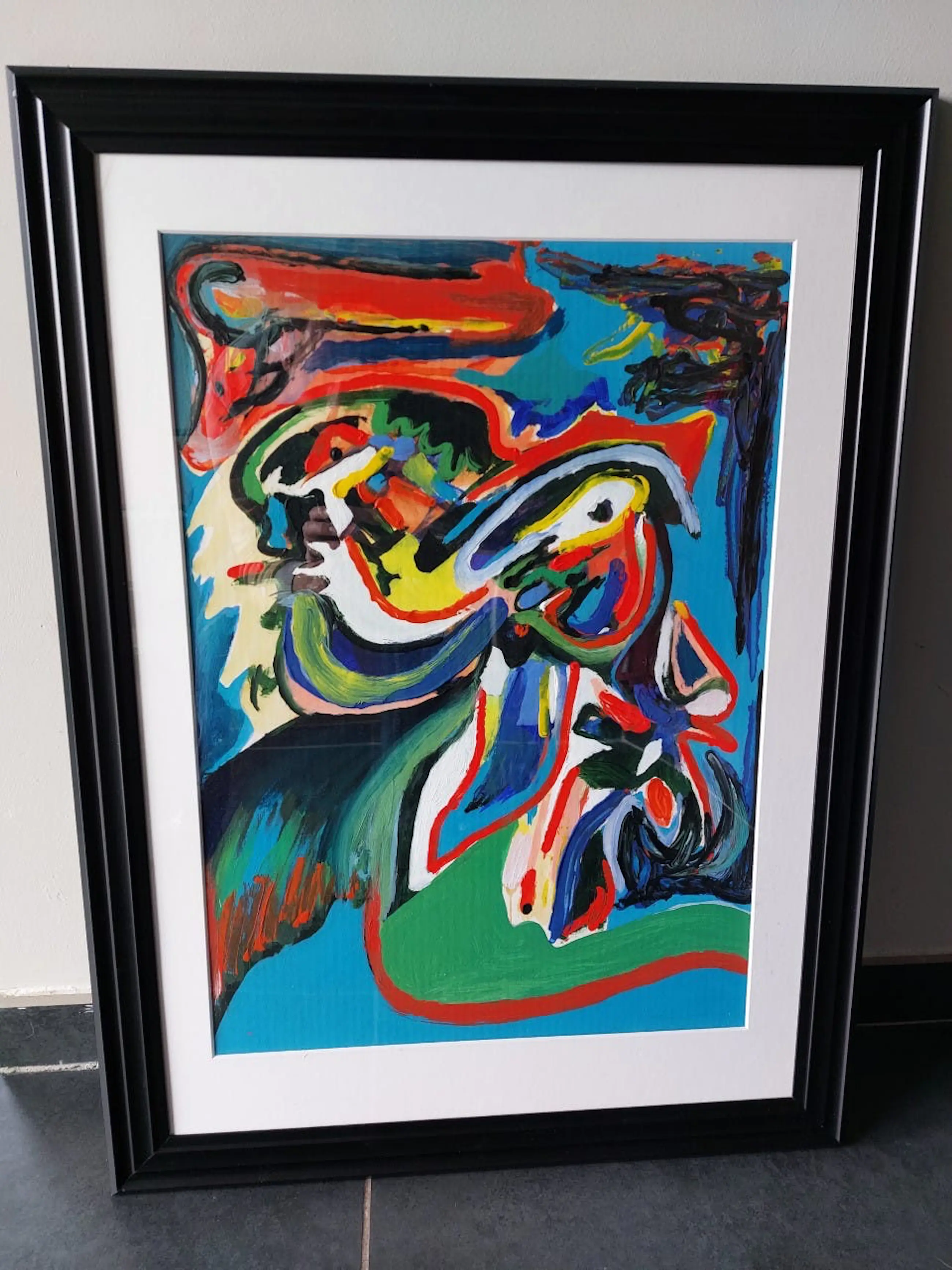 Handgesigneerd rechtsonder in balpen ( zie 3 de foto) Lijst van de 2de foto wordt meegeleverd
