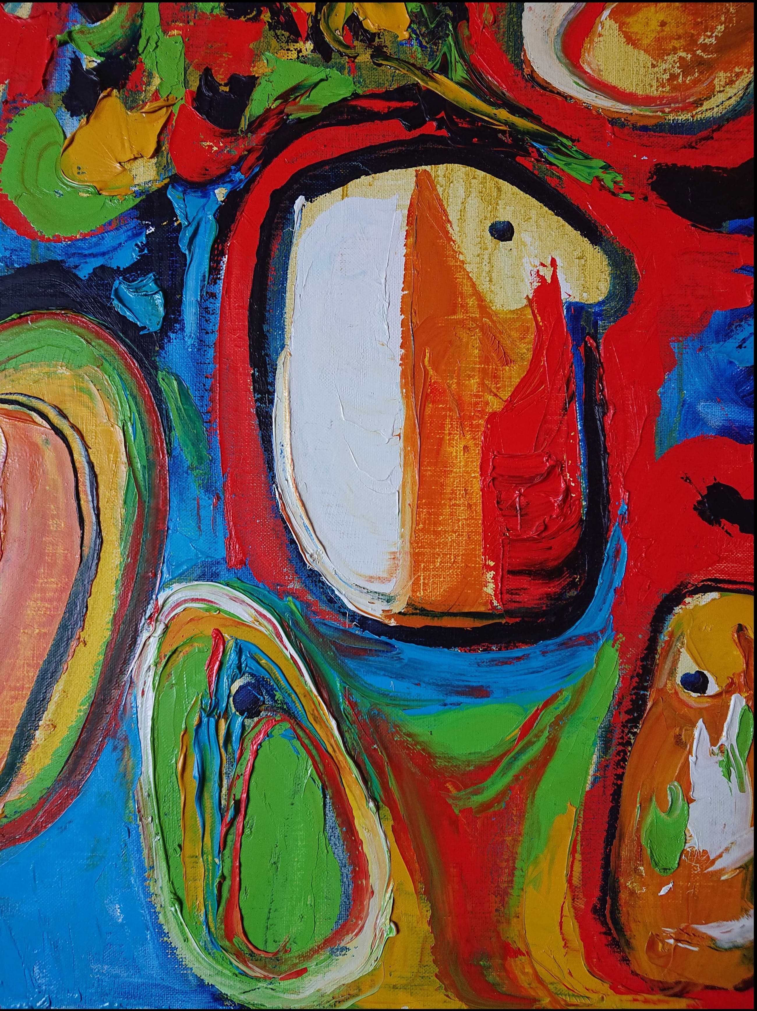 Mooi werk in typische CoBrA beweging stijl van kunstenaar Finn Pedersen (Denemarken, 1944 - 2014)
