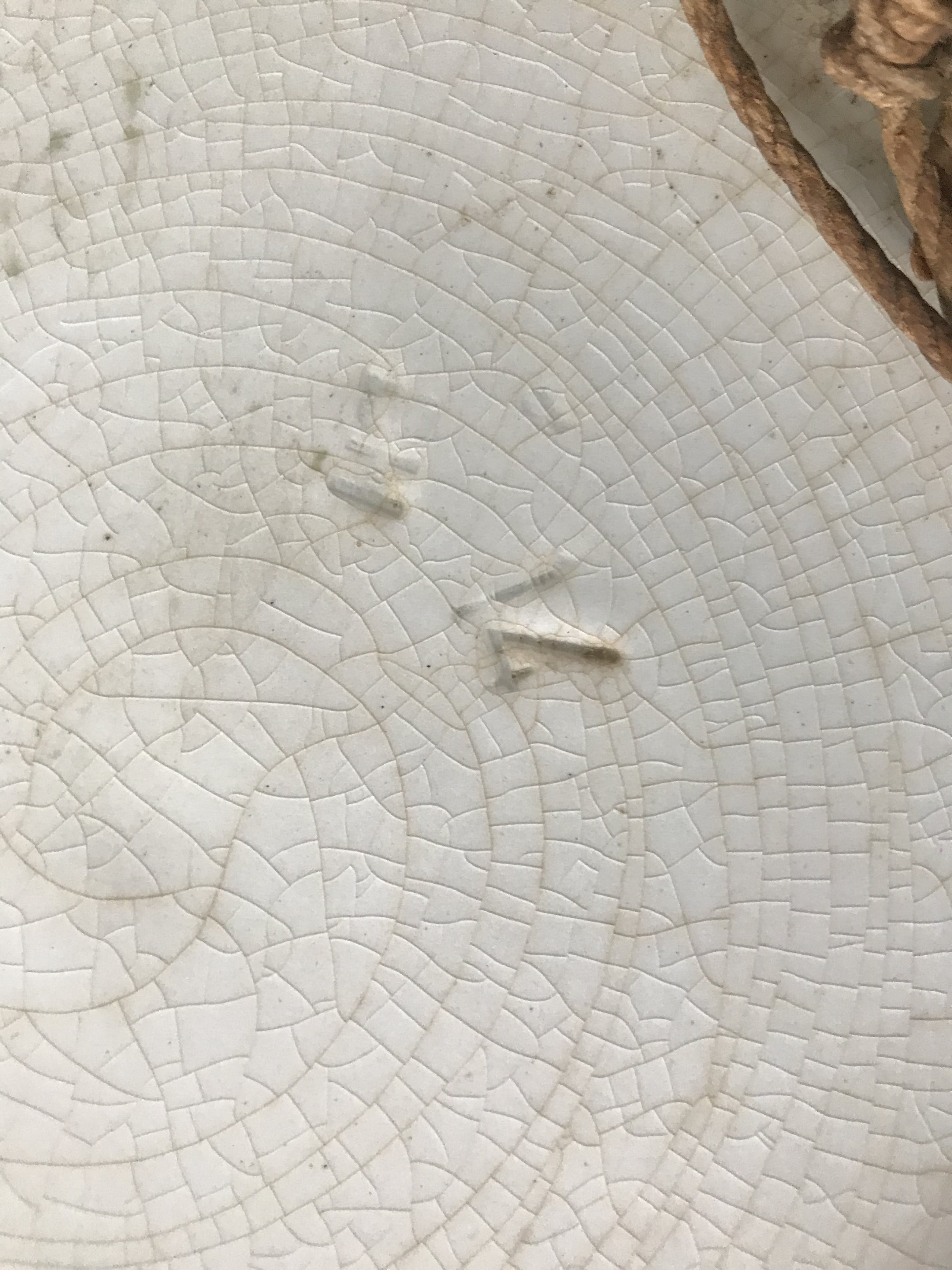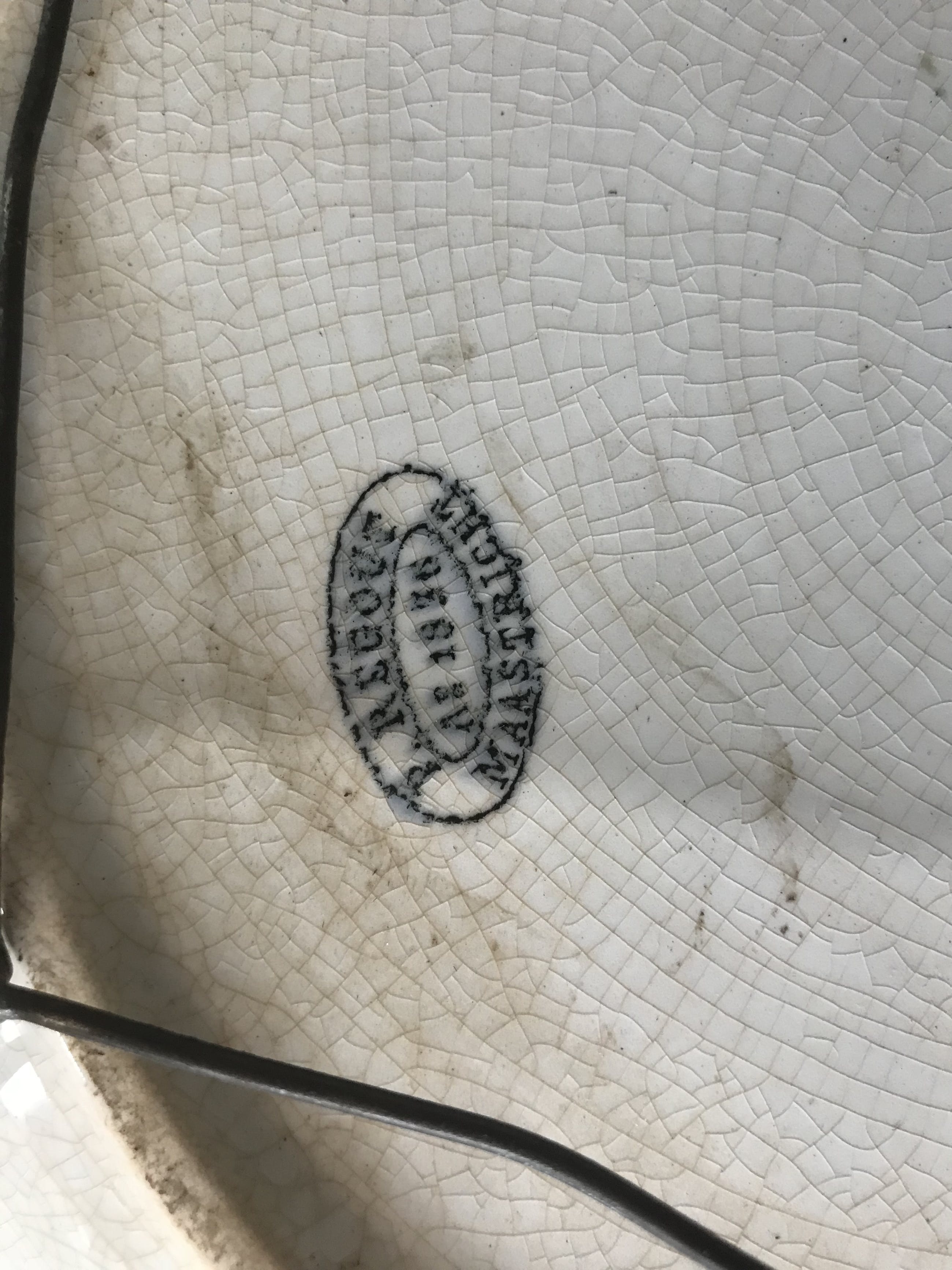 Op de achterzijde zijn de merkterkens van Petrus Regout te zien, die hij in die periode gebruikte.