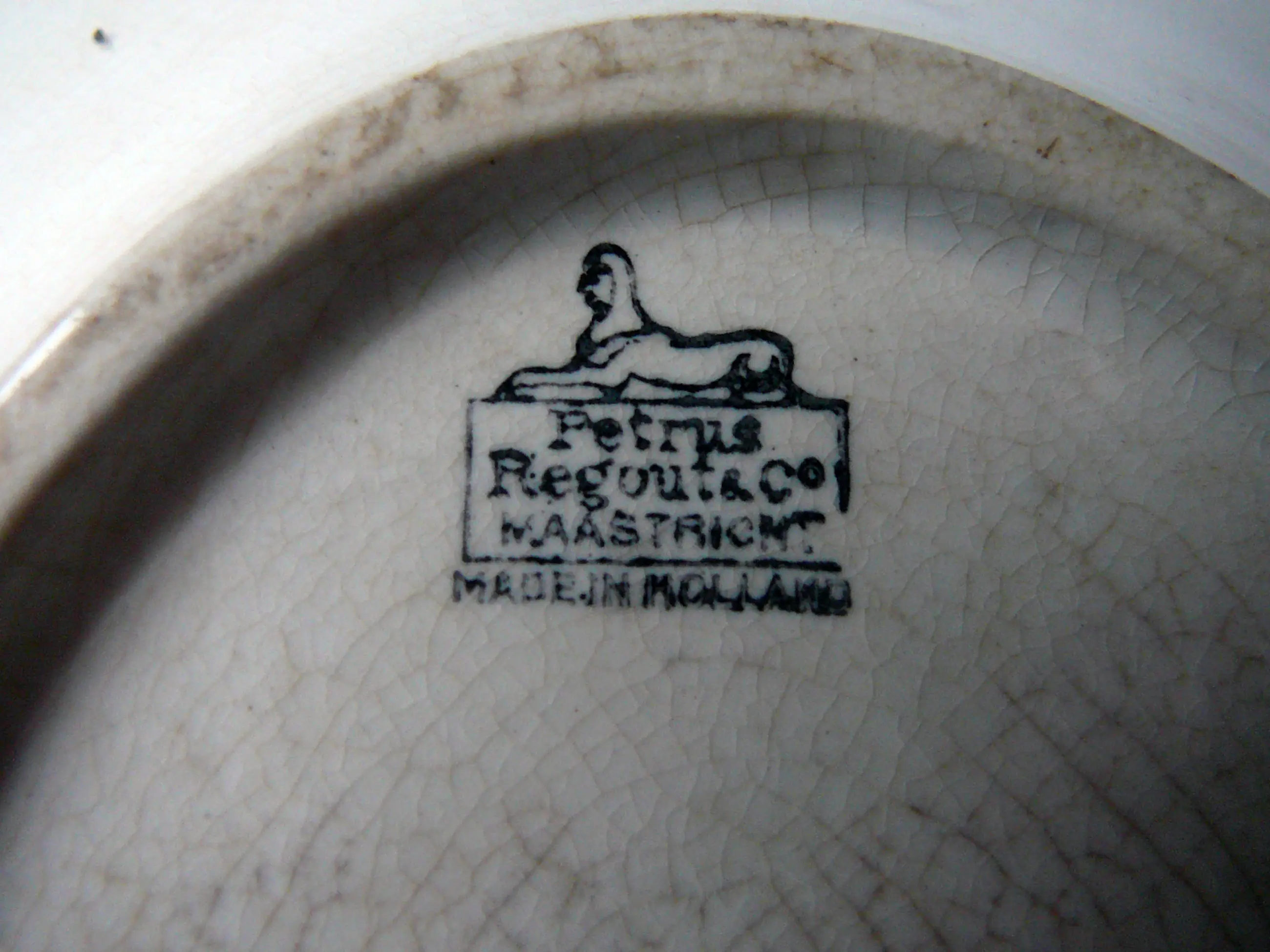 Ovale aardewerken NOF schaal (Nederlandse Olie Fabrieken) naar een ontwerp van Roland Richard Holst. Gemerkt aan de onderzijde 'Aangeboden door Oliefabrieken Calve Delft en merk Petrus Regout. Conditie: uitstekende staat - minimale gebruikssporen of tekenen van ouderdom.