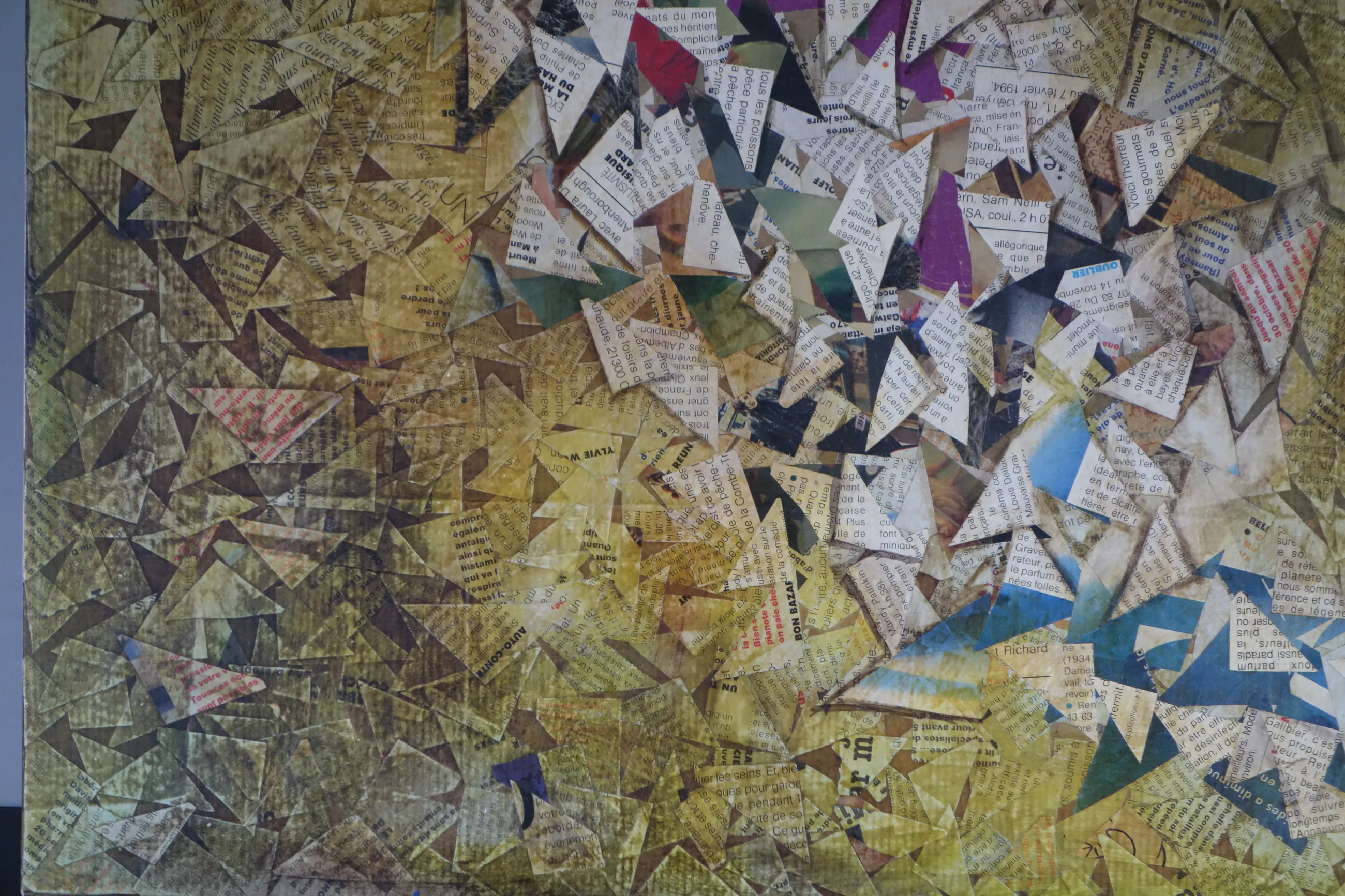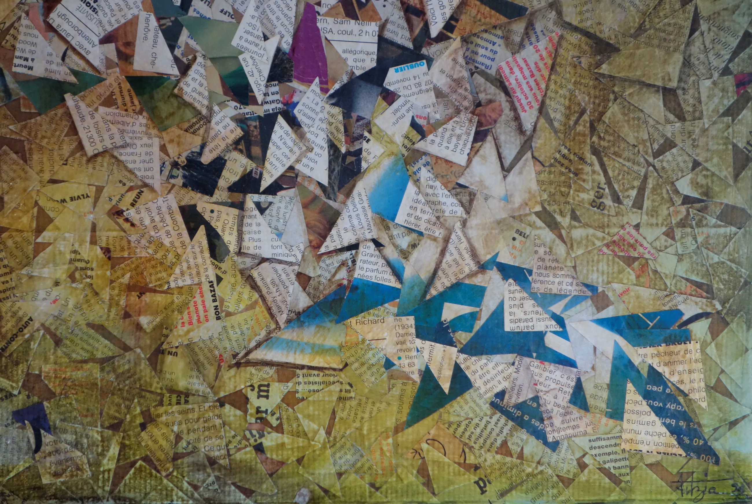 Das Gemälde, das ich hier vorschlage, wurde in Frankreich im Jahr 1994, mit einer Technik der Collage von Papieren gemacht und beginnt seine Suche mit Tintenschlittschuhen, die es schaffen, dem gesamten Werk verschiedene Reliefs zu verleihen.