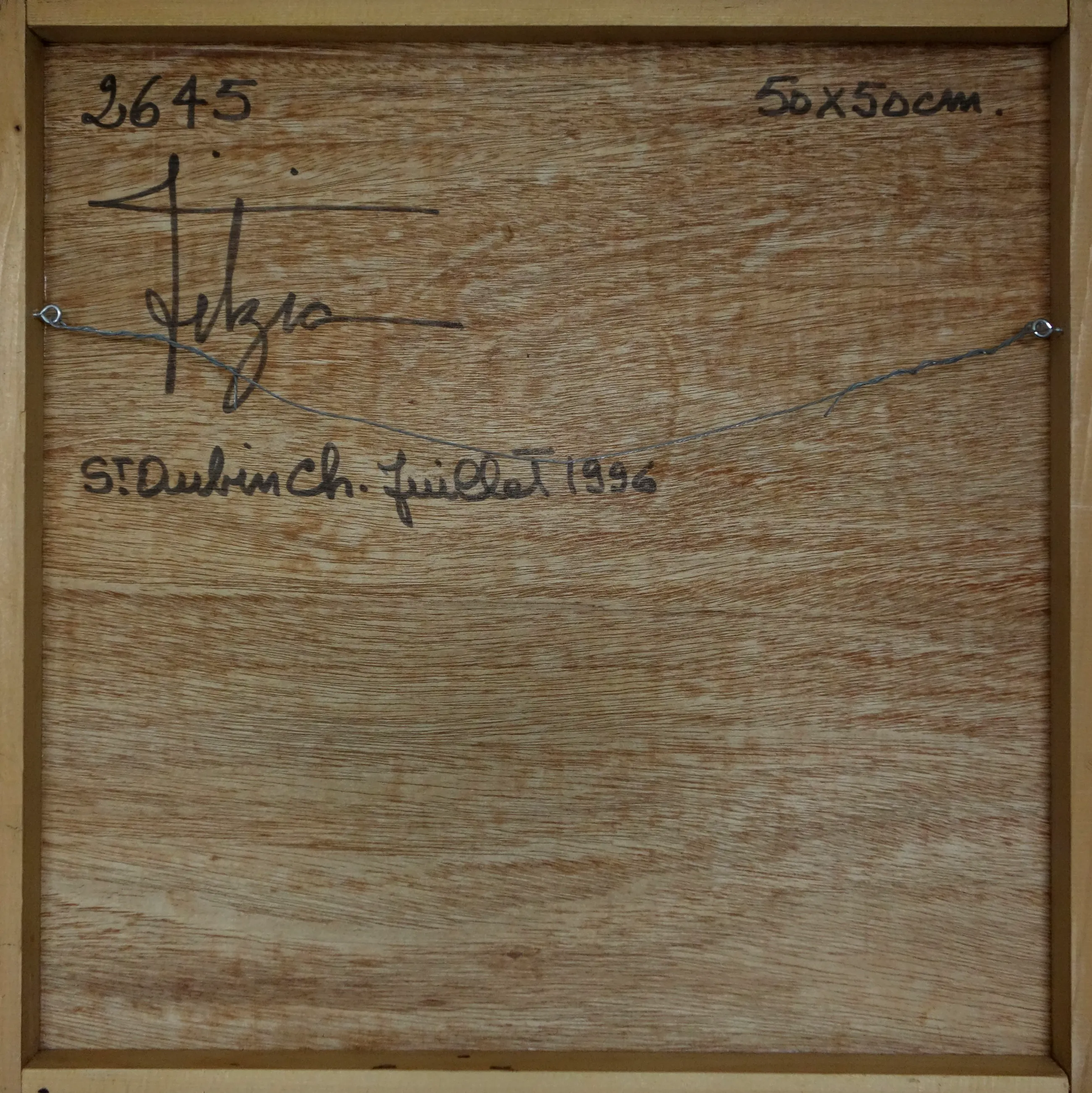 Het schilderij dat ik hier voorstel, werd in 1996 gemaakt in zijn atelier in Saint Aubin Châteauneuf, Bourgondië, Frankrijk met een techniek van collage van papier en begint zijn onderzoek met inktschaatsen die erin slagen verschillende reliëfs aan het hele werk te geven.