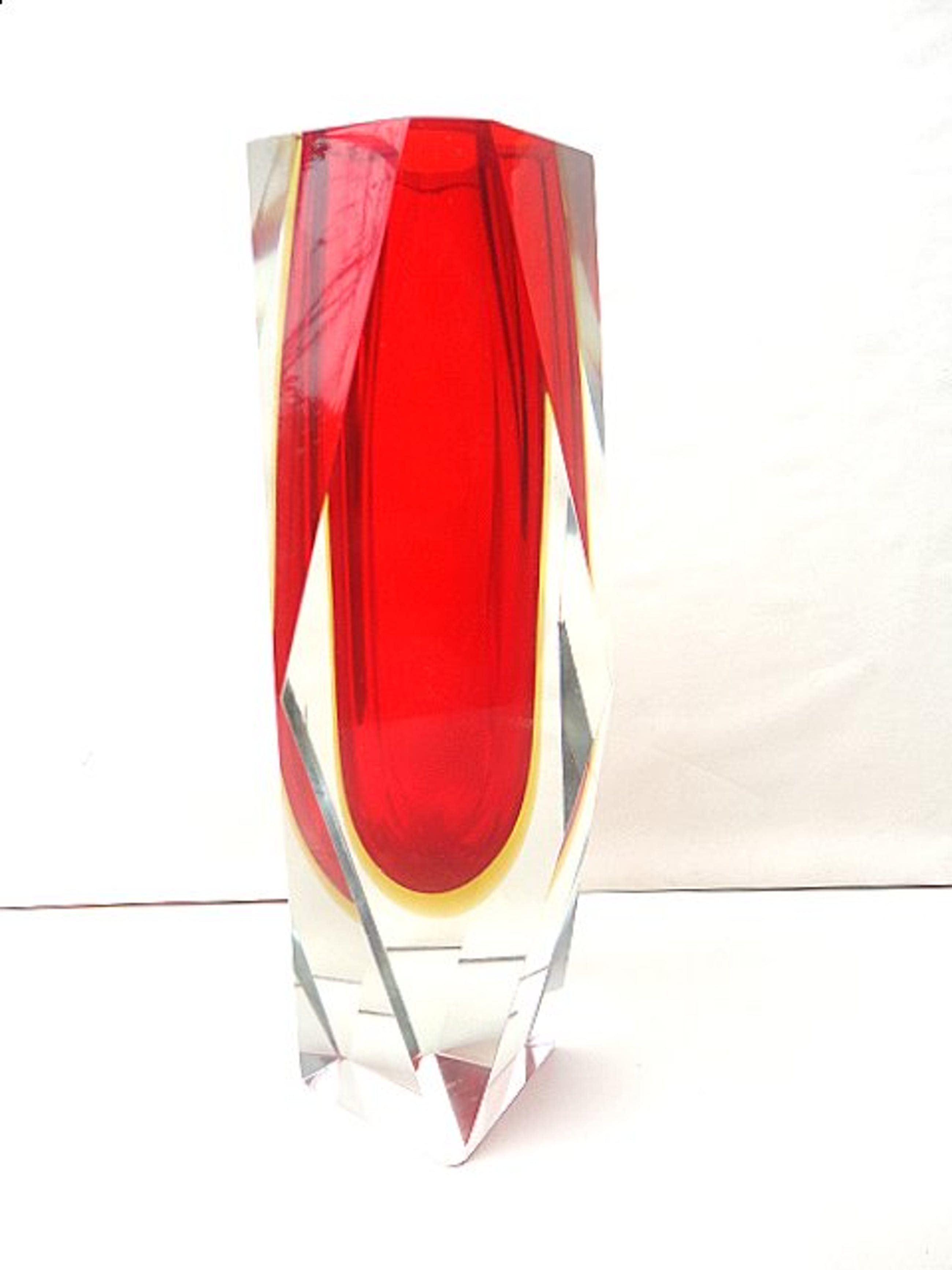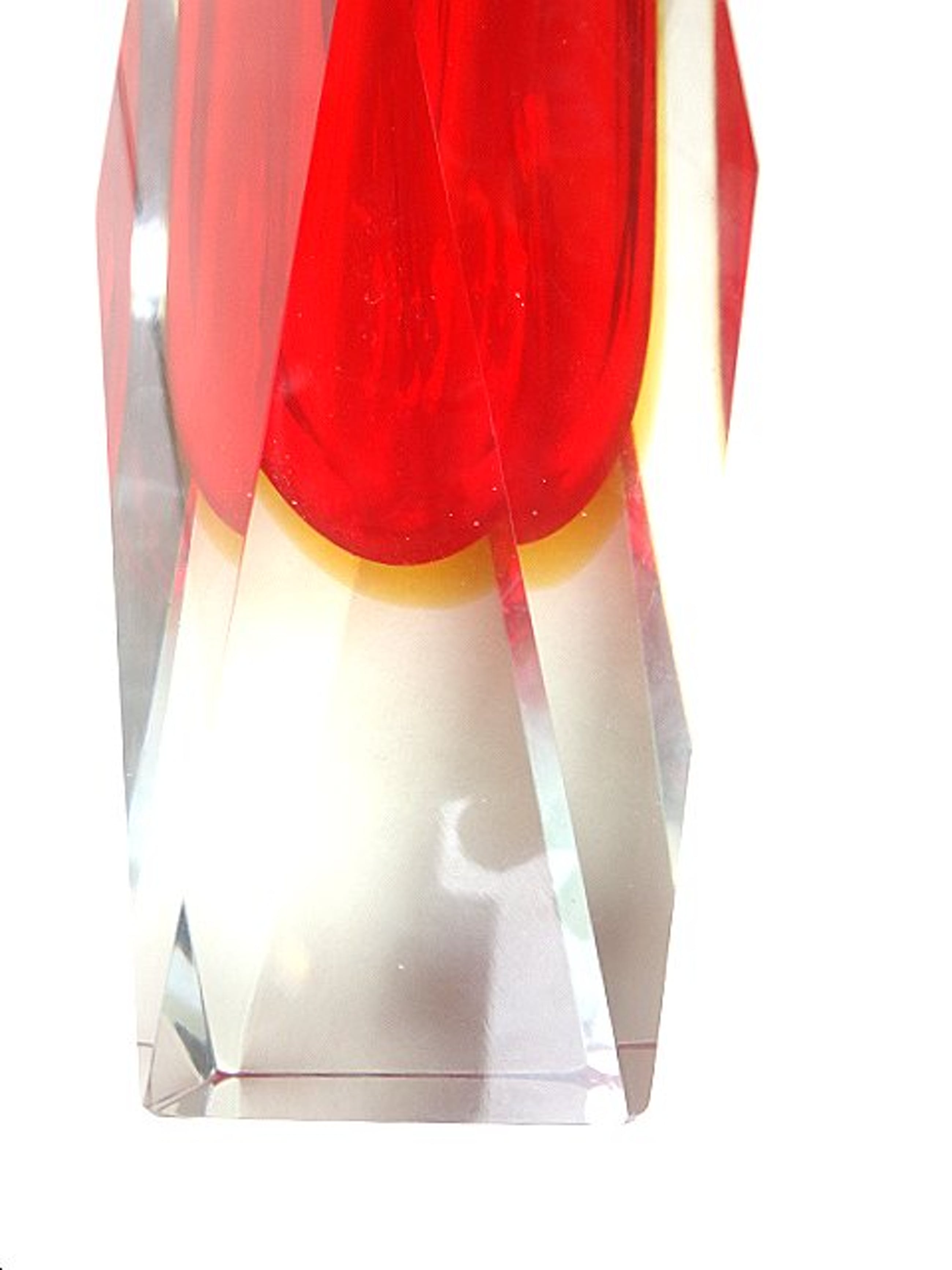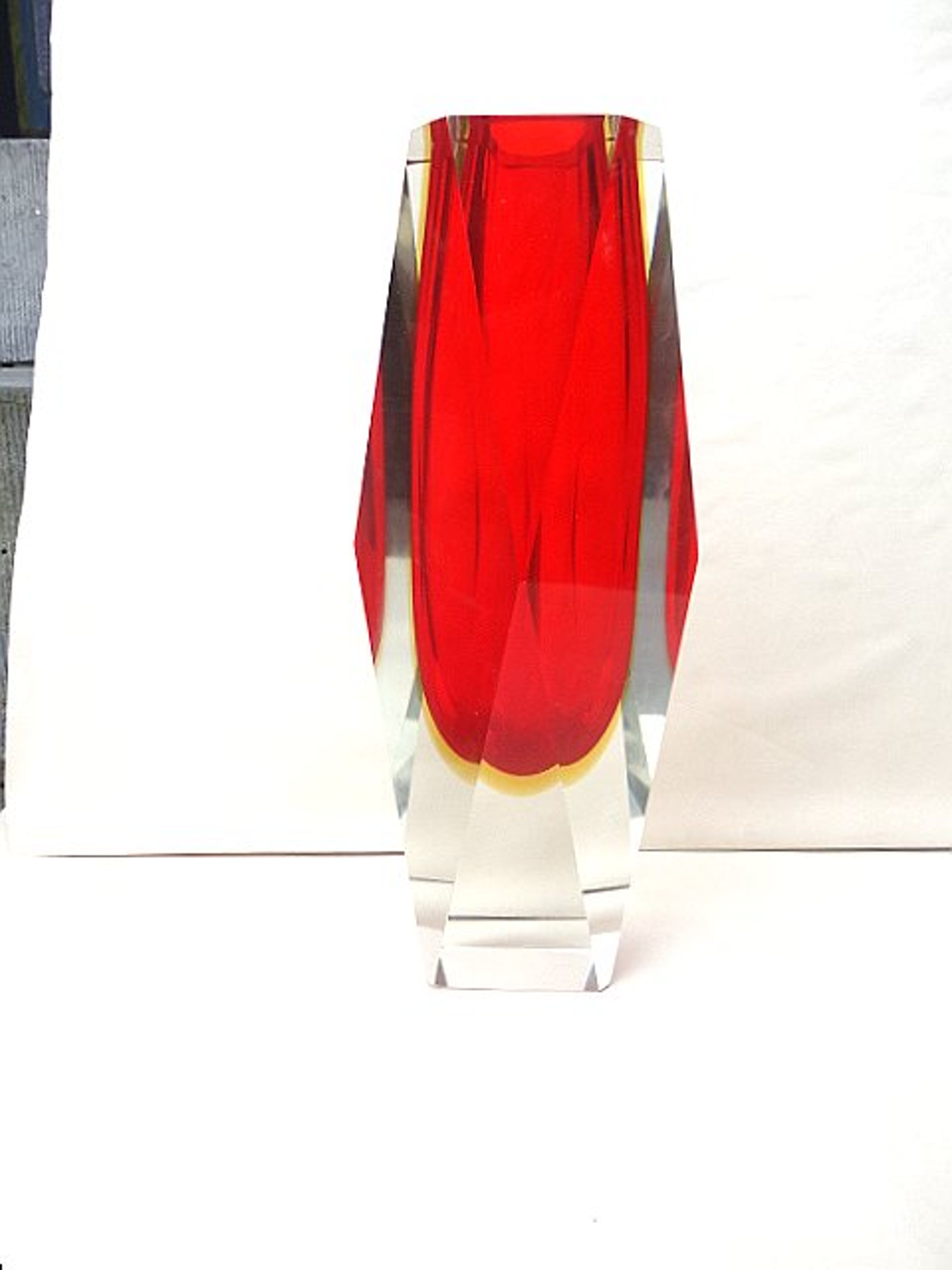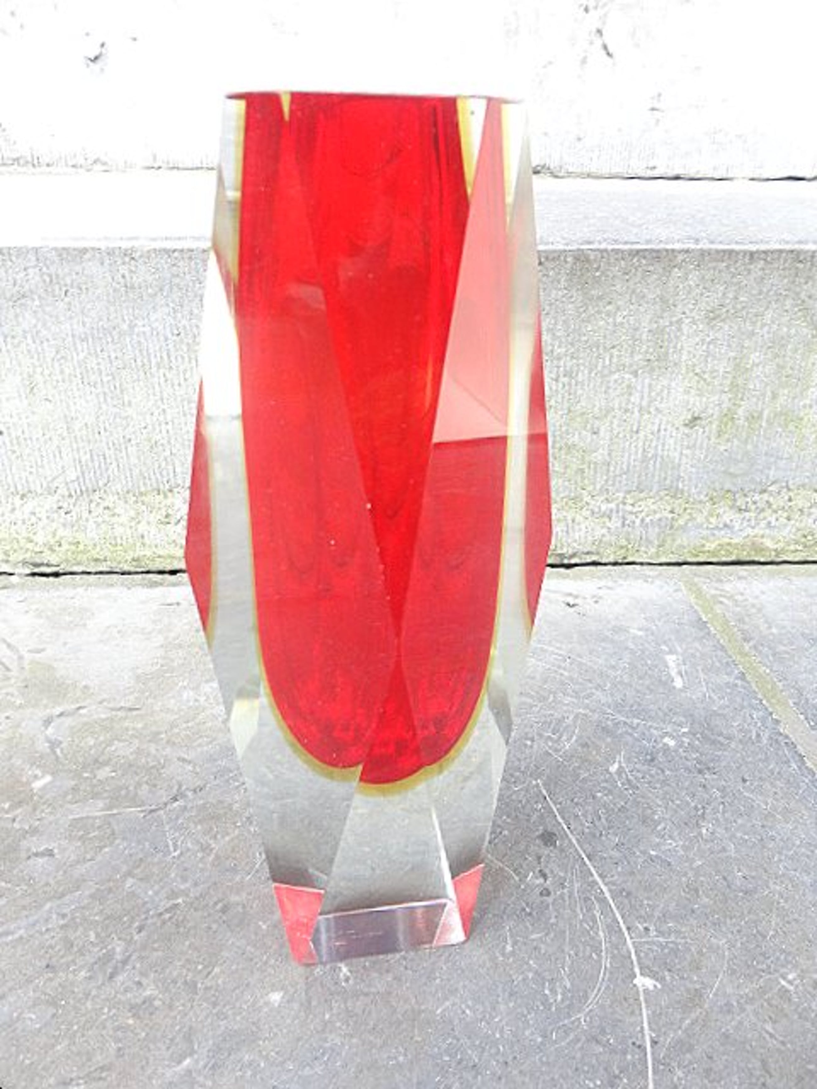Een zware, fecet geslepen sommerso vaas, geblazen op Murano. Hoogte is 27,5 cm, uitzonderlijk voor dit type vaas.